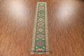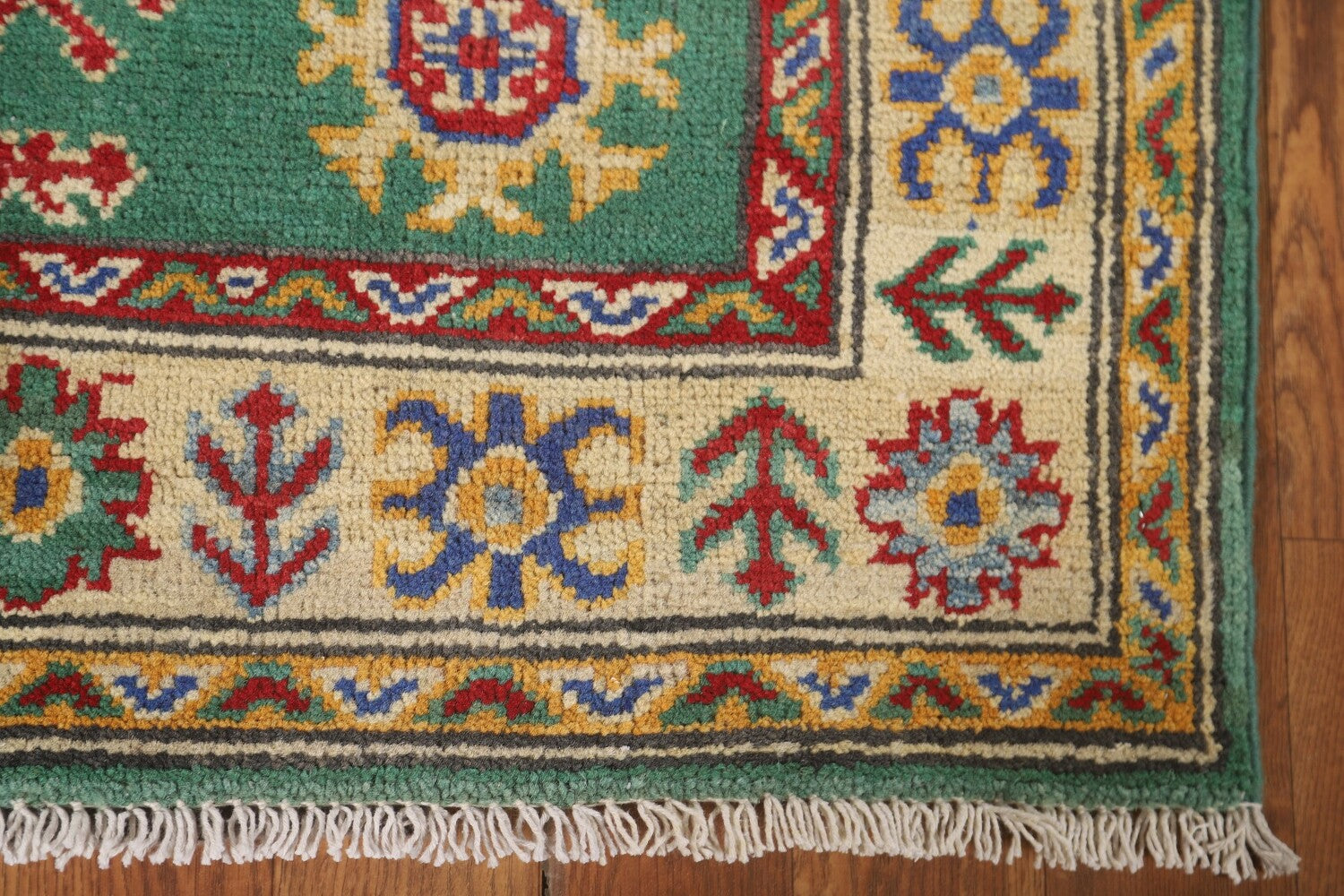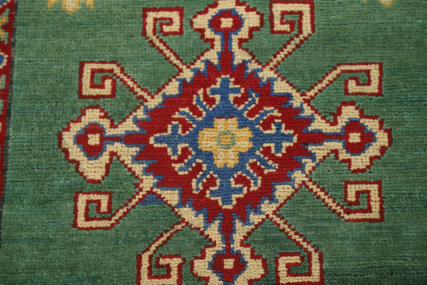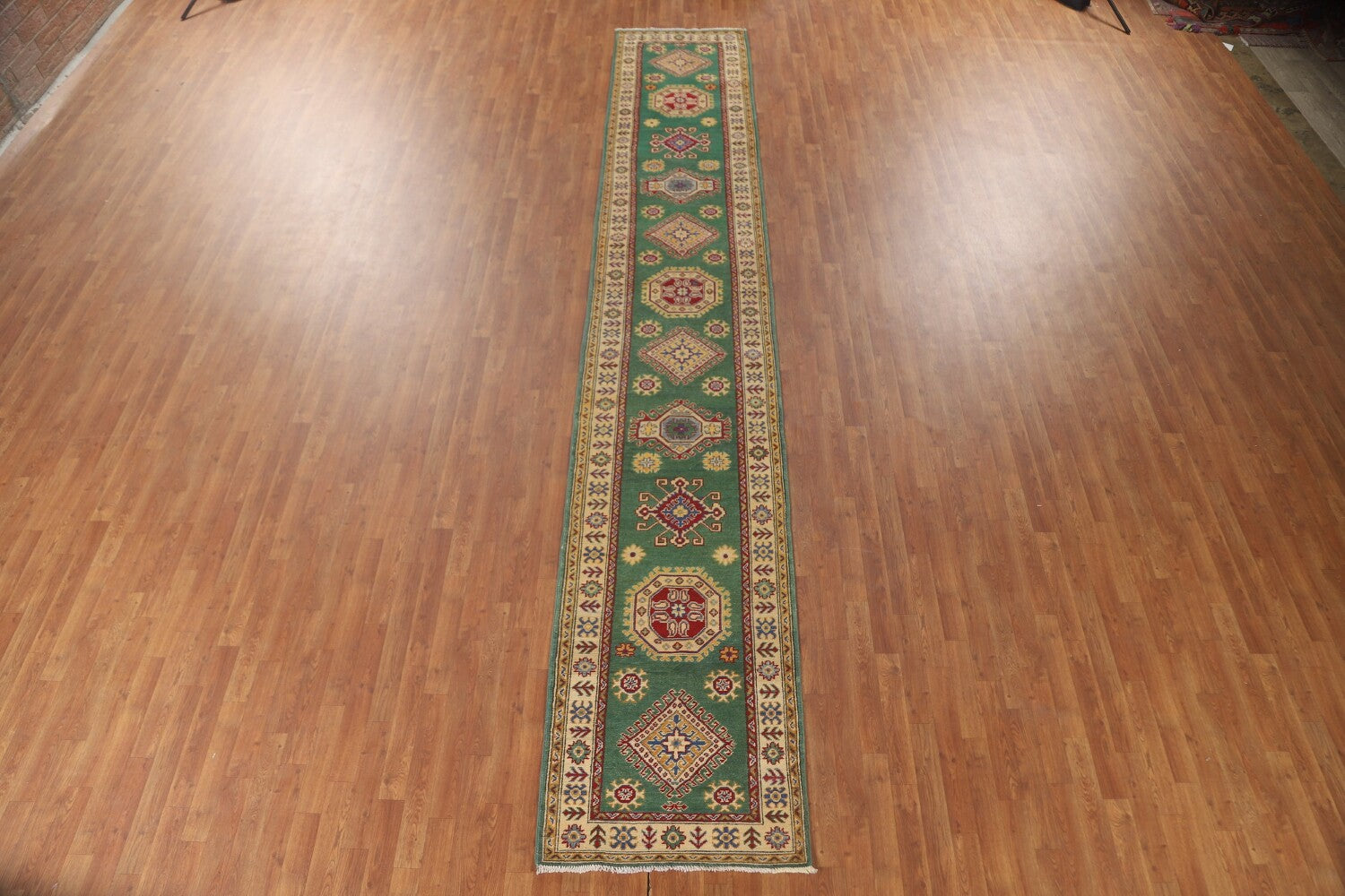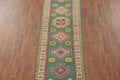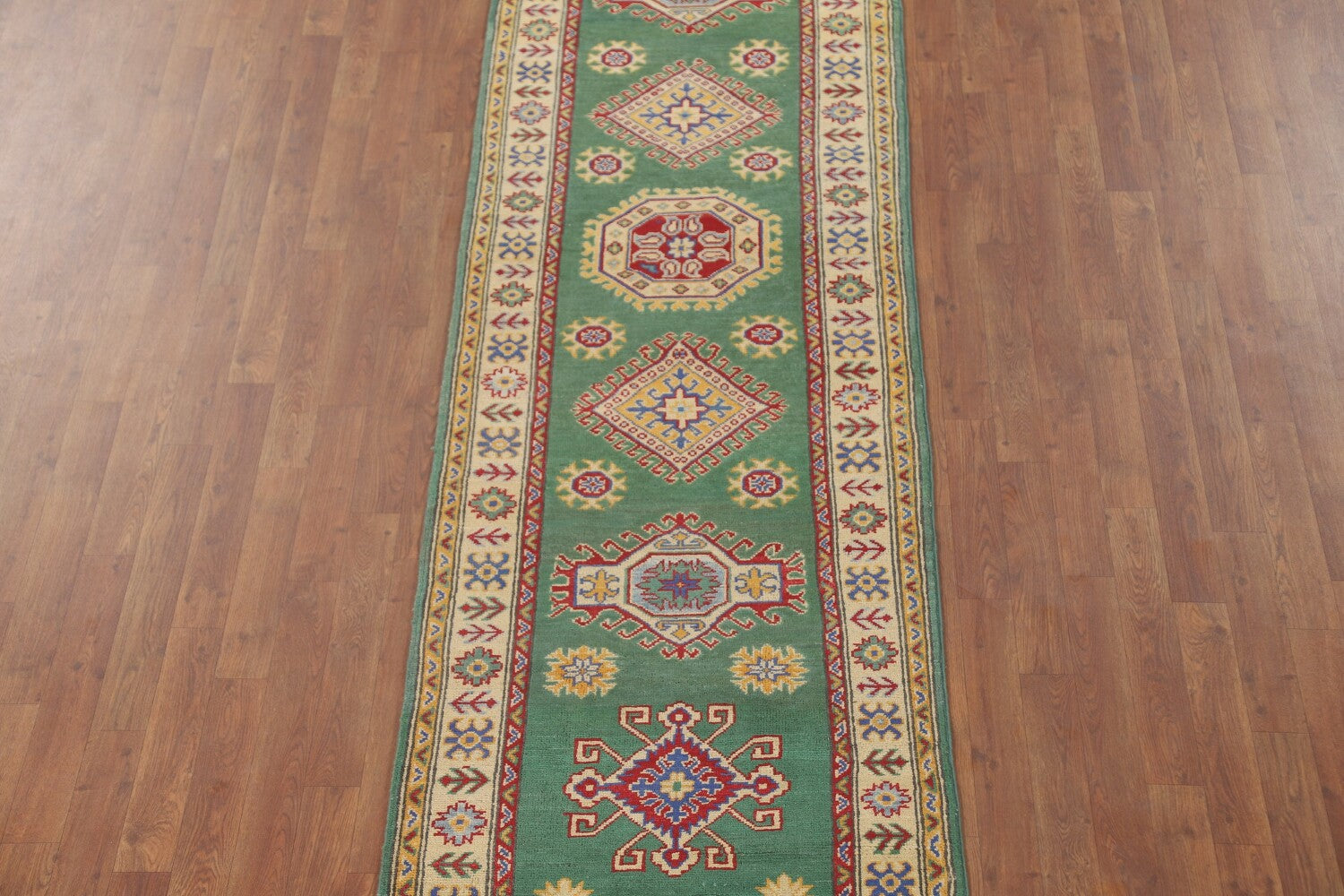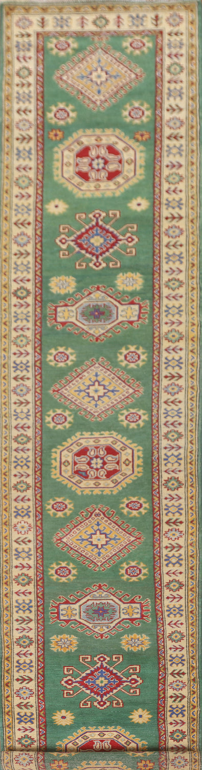 Green Geometric Kazak Oriental Runner Rug 3x16