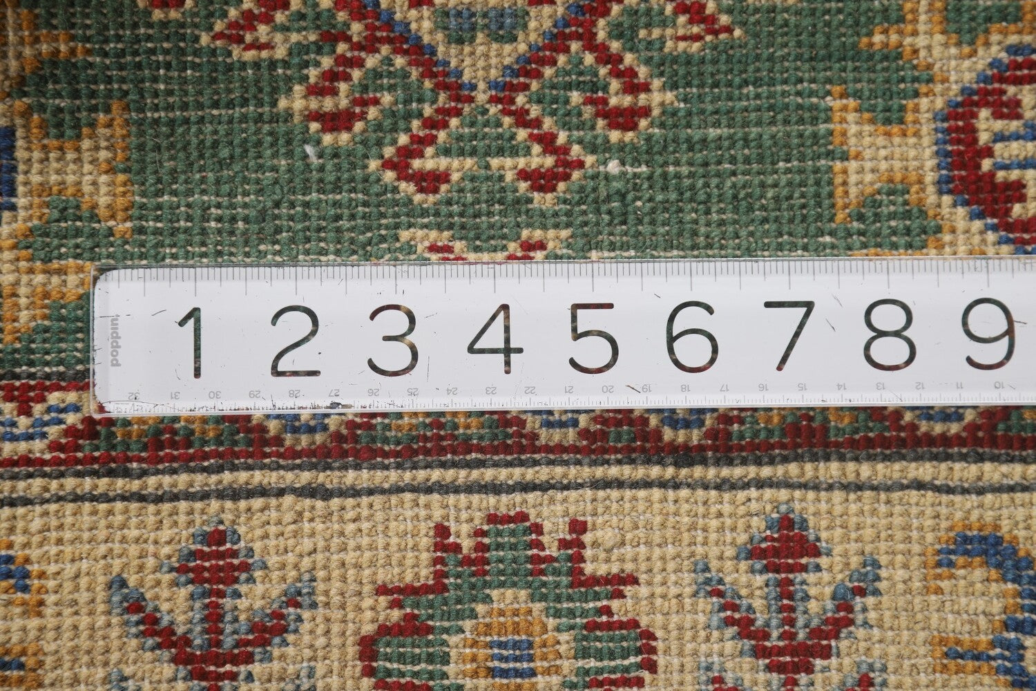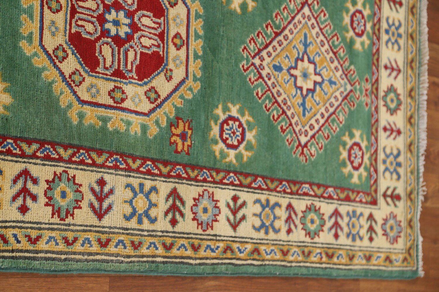 A Beautiful Genuine Pakistan Kazak rug is Hand Knotted by skillful weavers in Pakistan with 100% Wool Material. This rug is in New, First Quality condition. dimensions are 16' 2'' X 2' 8'' in foot and 493 X 81 in centimeter. the primary color is Green.