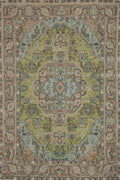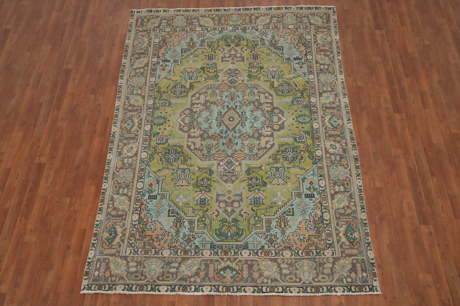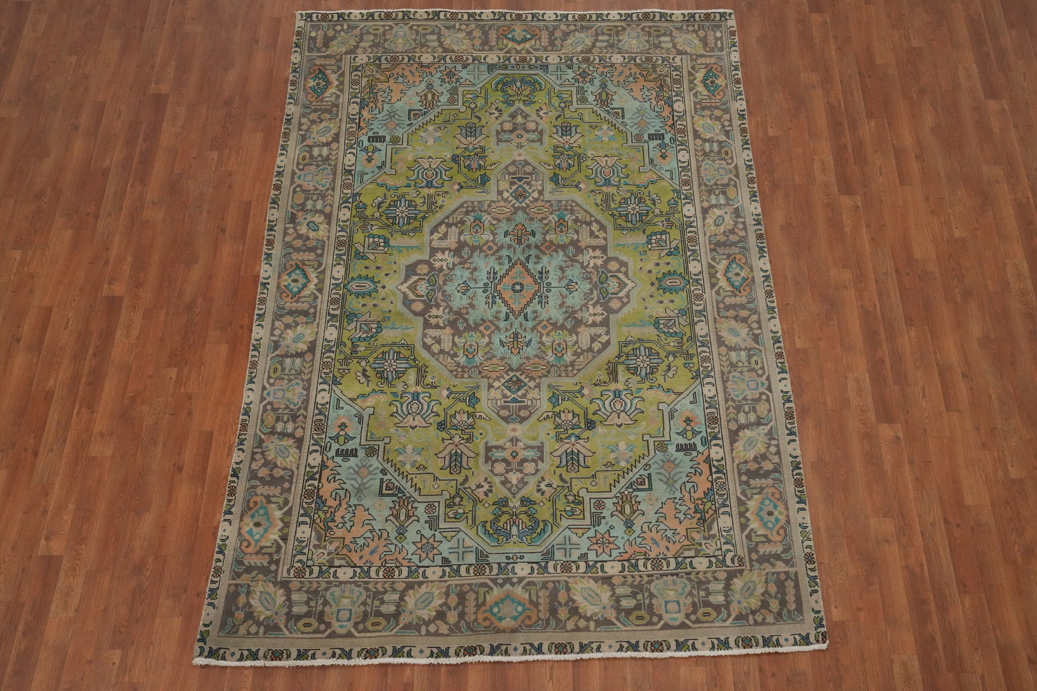 Green Geometric Wool Tabriz Persian Area Rug 6x9