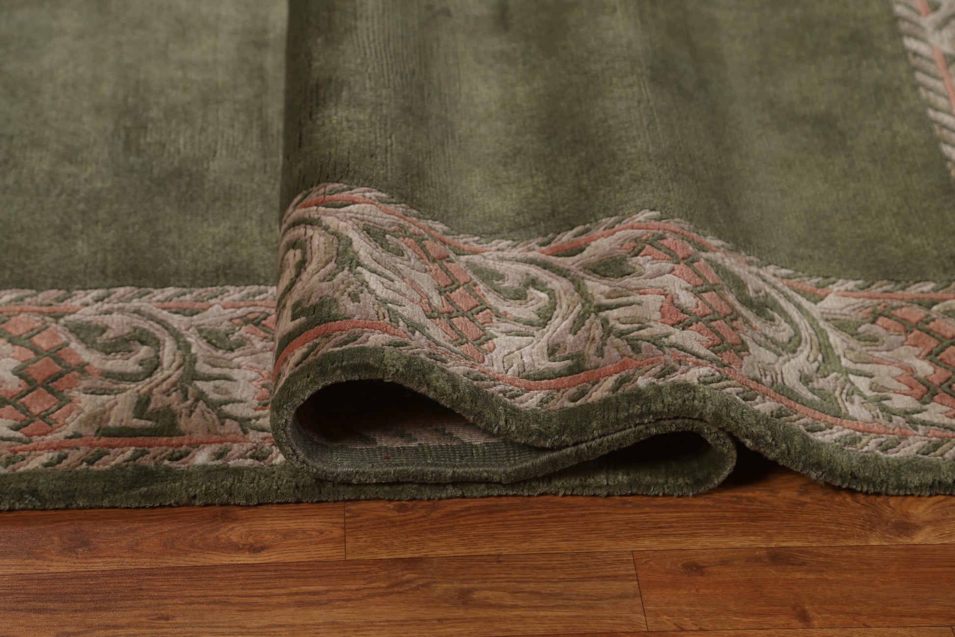 A Beautiful Genuine India Nepalese rug is Hand Knotted by skillful weavers in India with 100% Wool Material. This rug is in New, First Quality condition. dimensions are 7' 9'' X 5' 7'' in foot and 236 X 170 in centimeter. the primary color is Green.