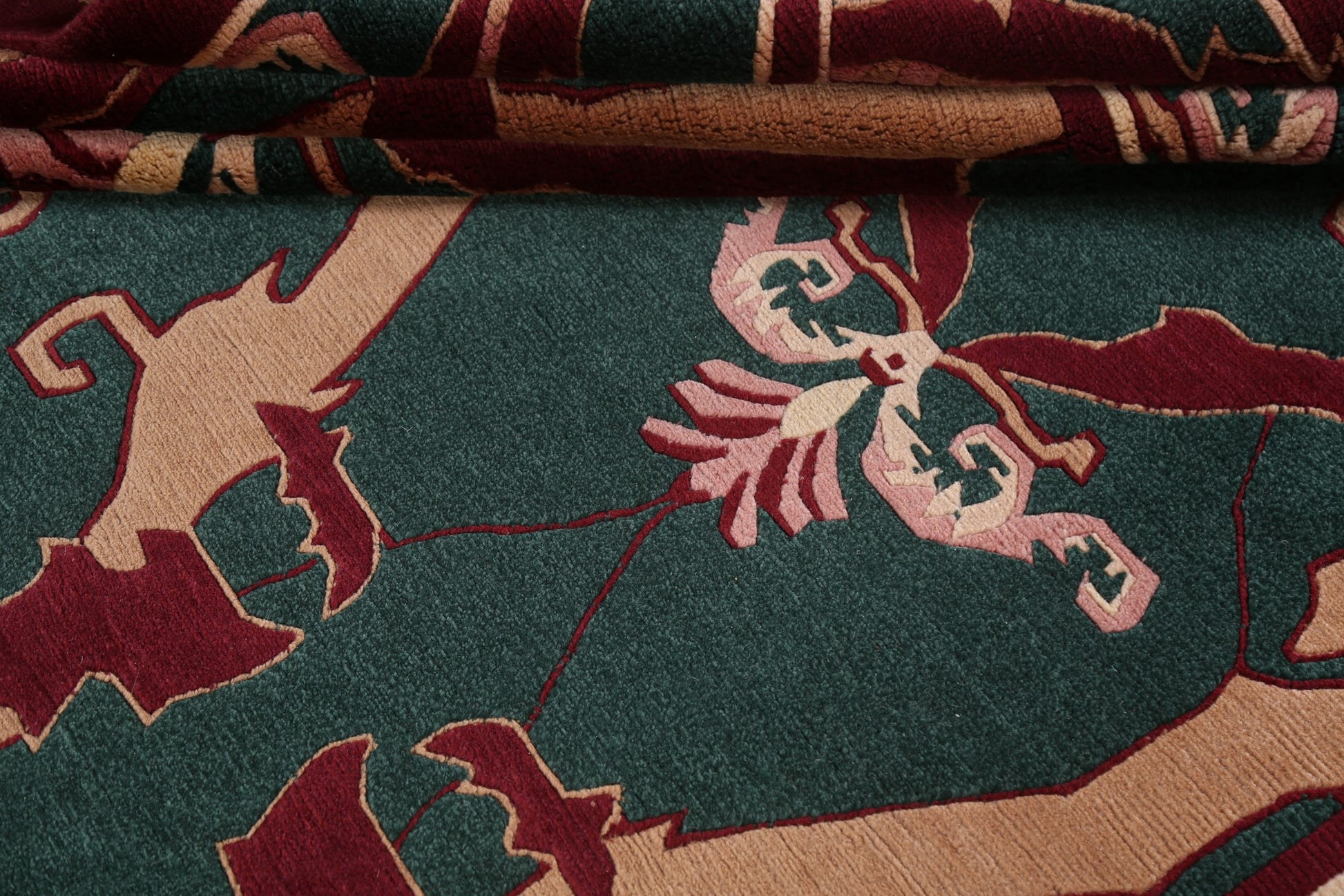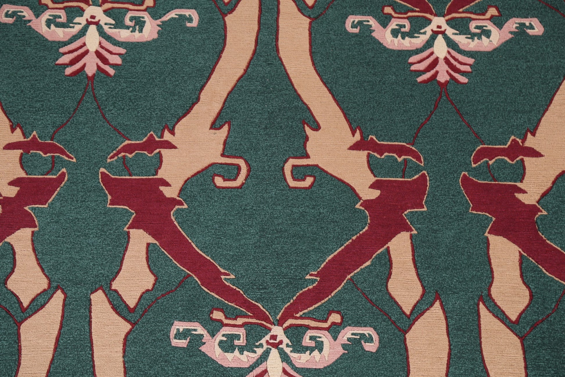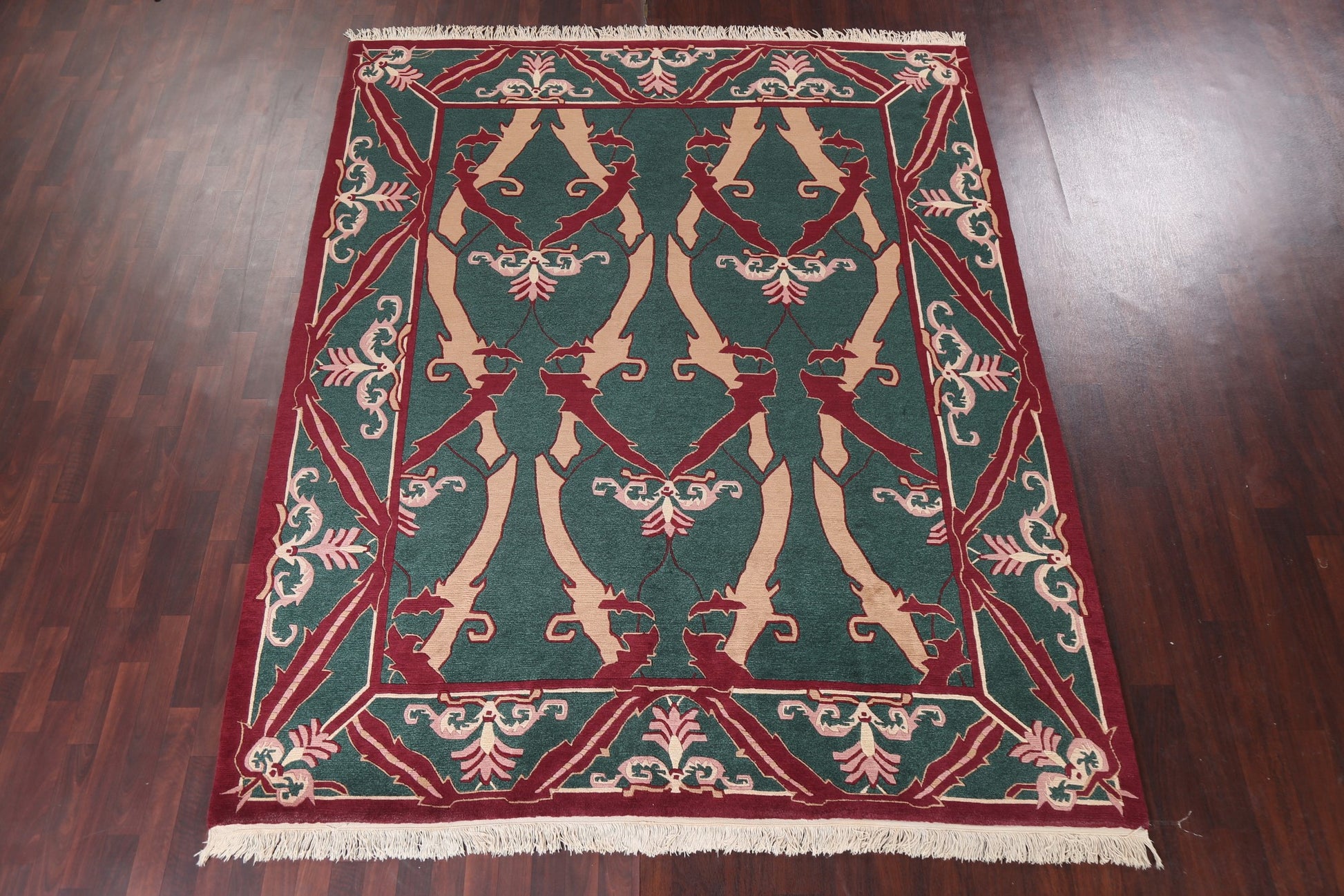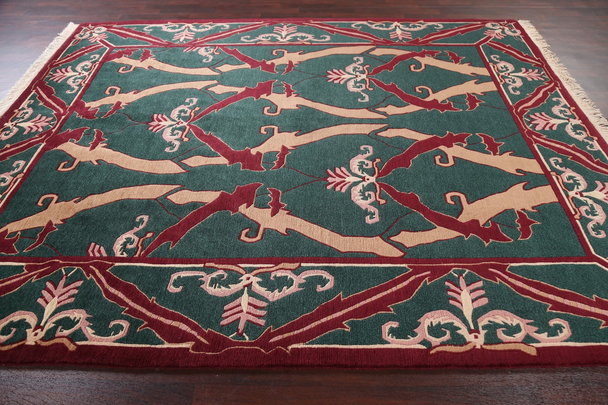 Green Handmade Savonnerie Wool Area Rug 8x10