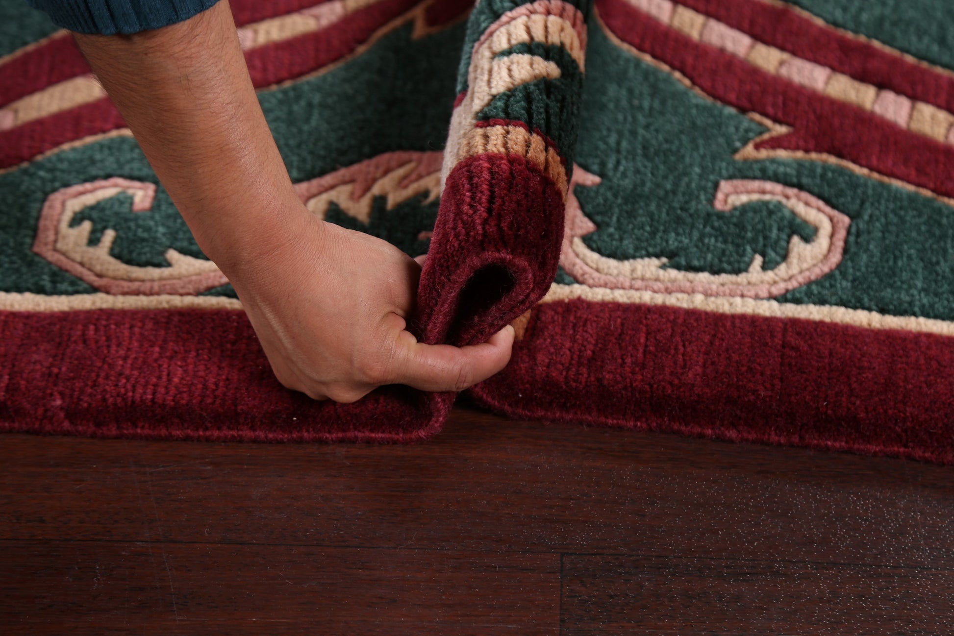 A Beautiful Genuine Nepal Savonnerie rug is Hand Knotted by skillful weavers in Nepal with 100% Wool Material. This rug is in New, First Quality condition. dimensions are 9' 10'' X 8' 0'' in foot and 300 X 244 in centimeter. the primary color is Green.