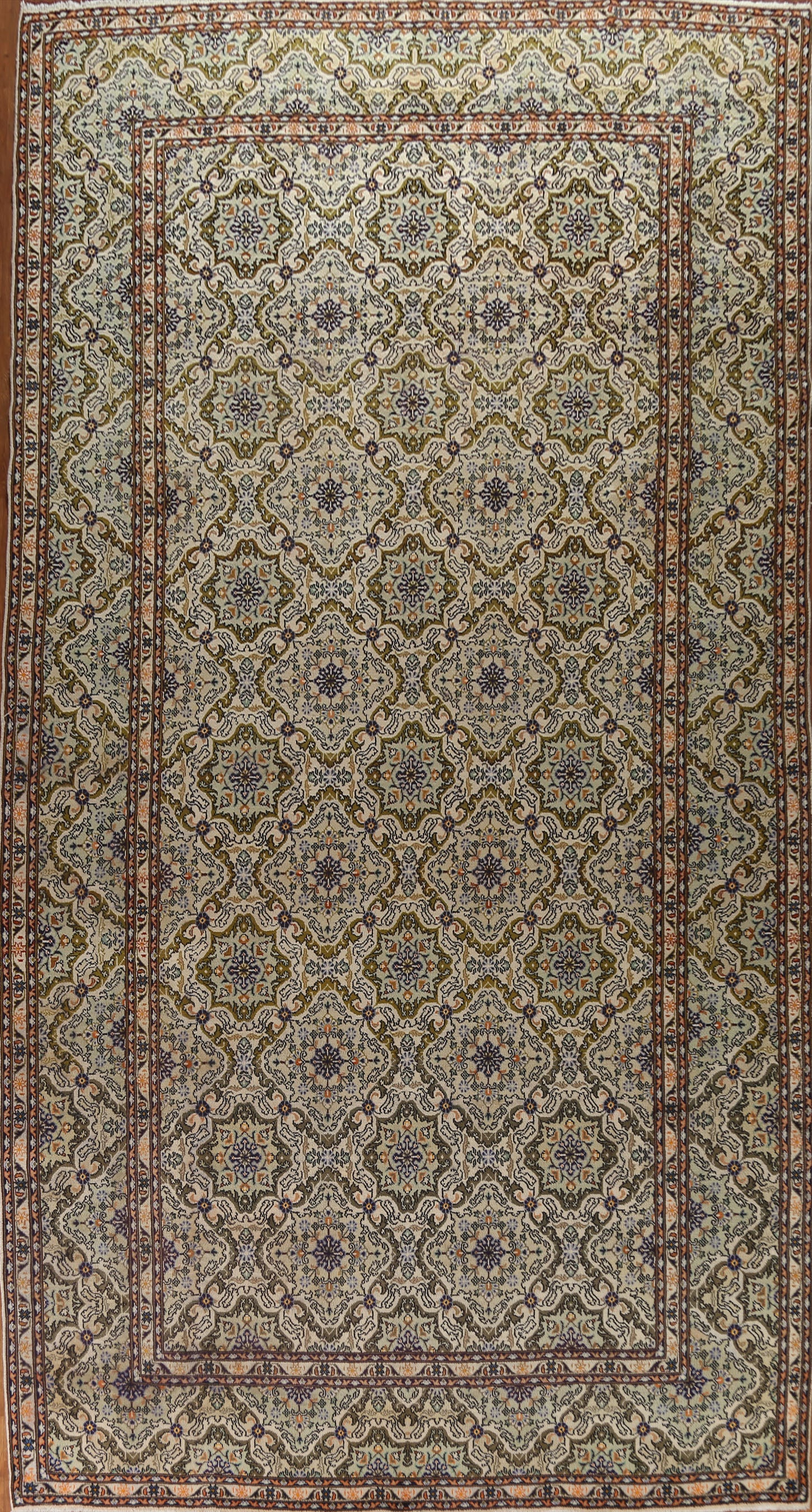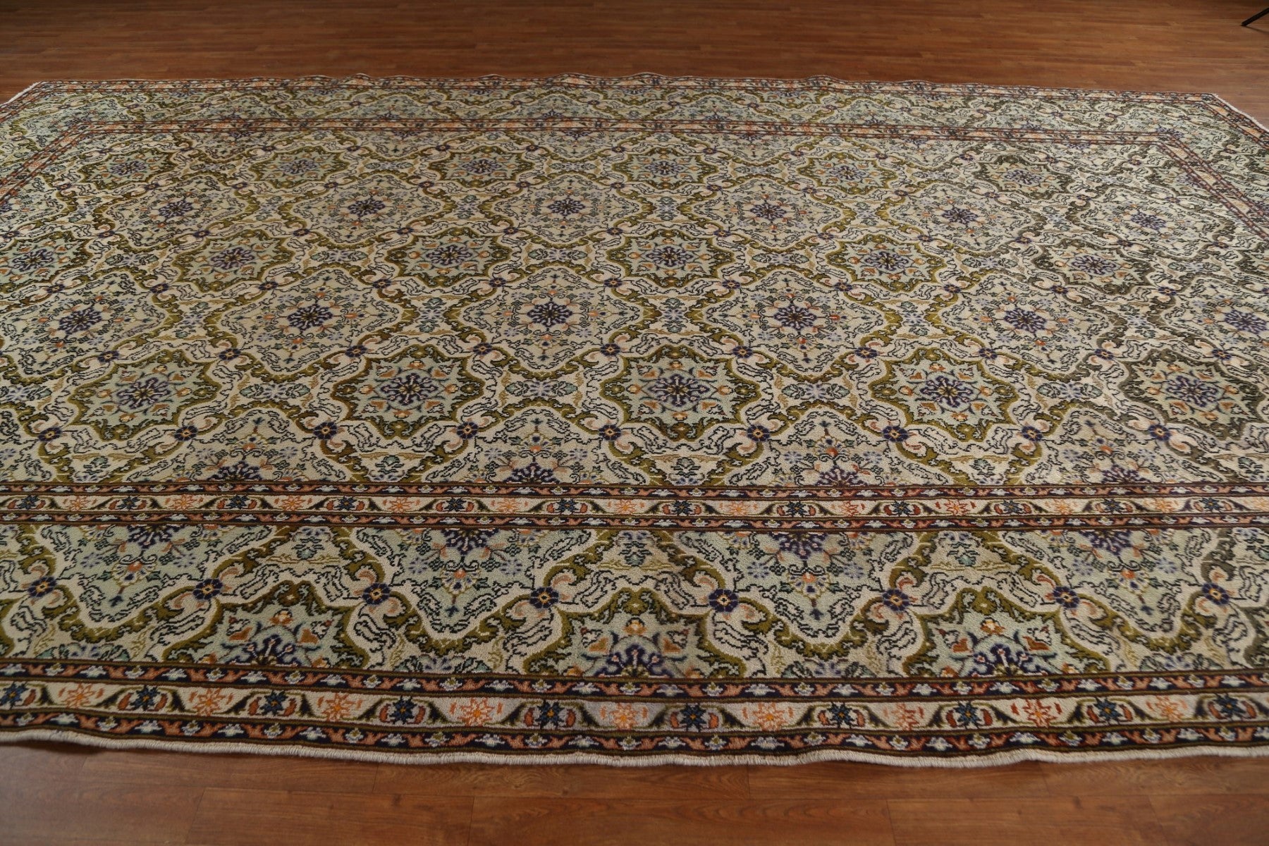 A Beautiful Genuine Persia ( Persia ) Kashan rug is Hand Knotted by skillful weavers in Persia ( Persia ) with 100% Wool Material. This rug is in Very Good condition. dimensions are 16' 3'' X 9' 6'' in foot and 495 X 290 in centimeter. the primary color is Green.