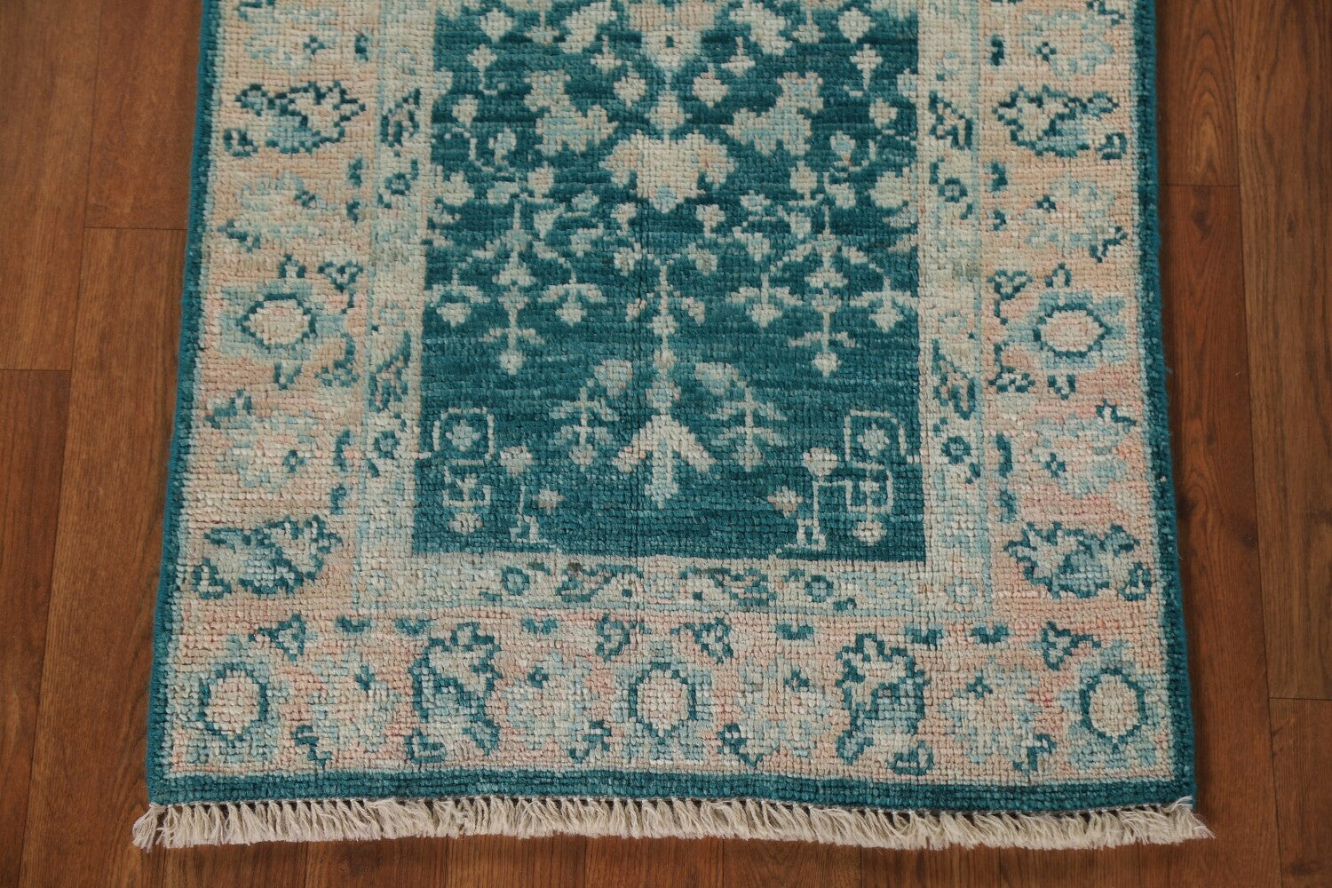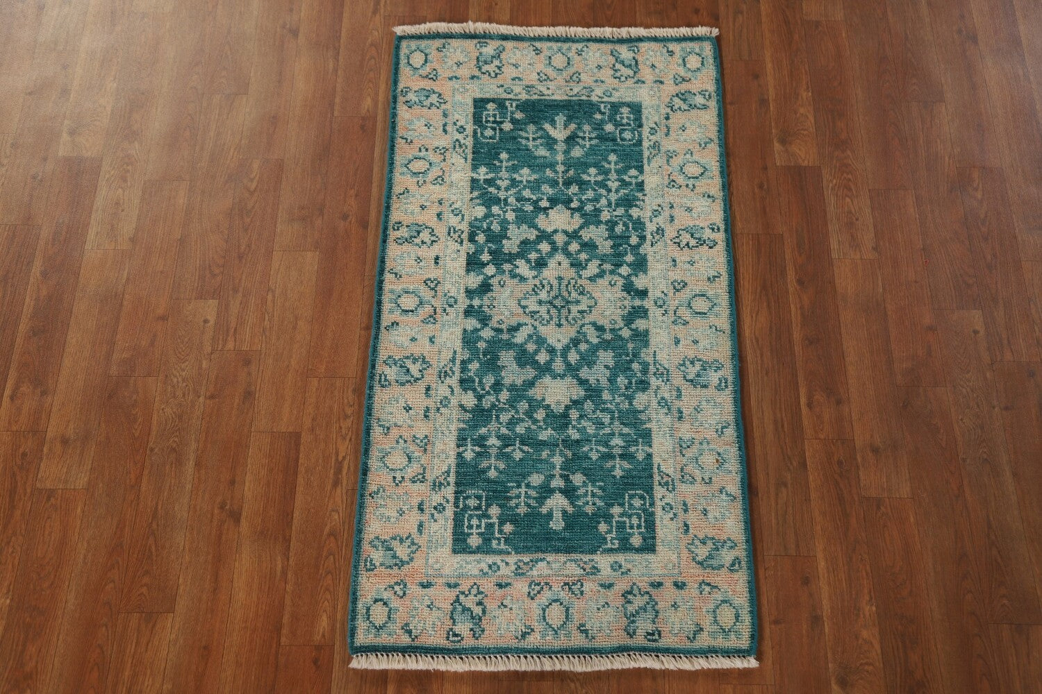 Green Oushak Vegetable Dye Turkish Accent Rug 2x4