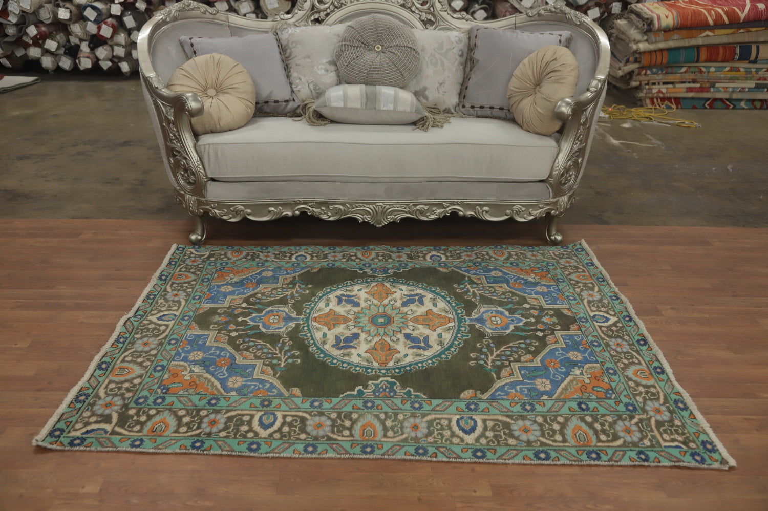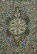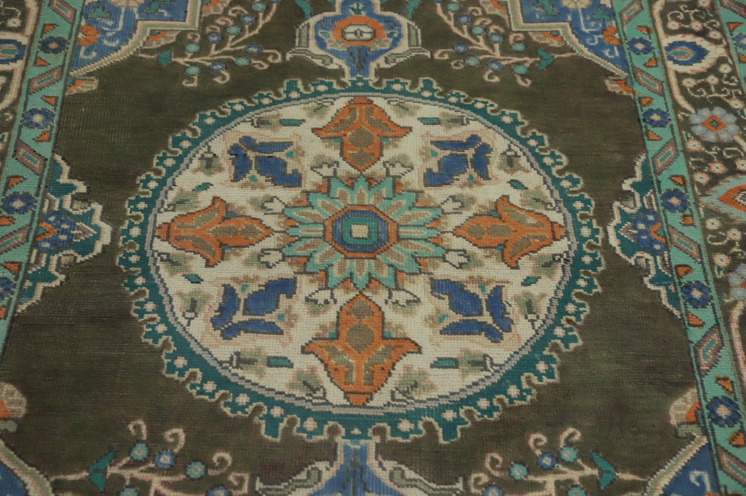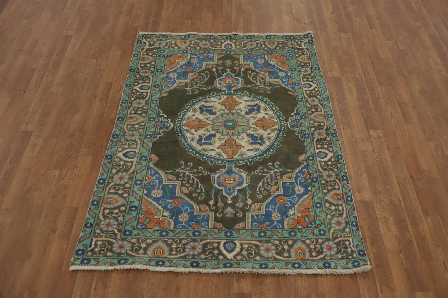 Green Wool Geometric Tabriz Persian Rug 5x6