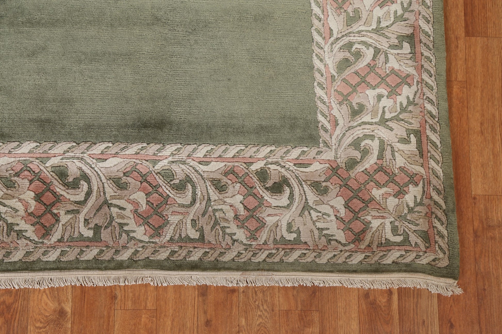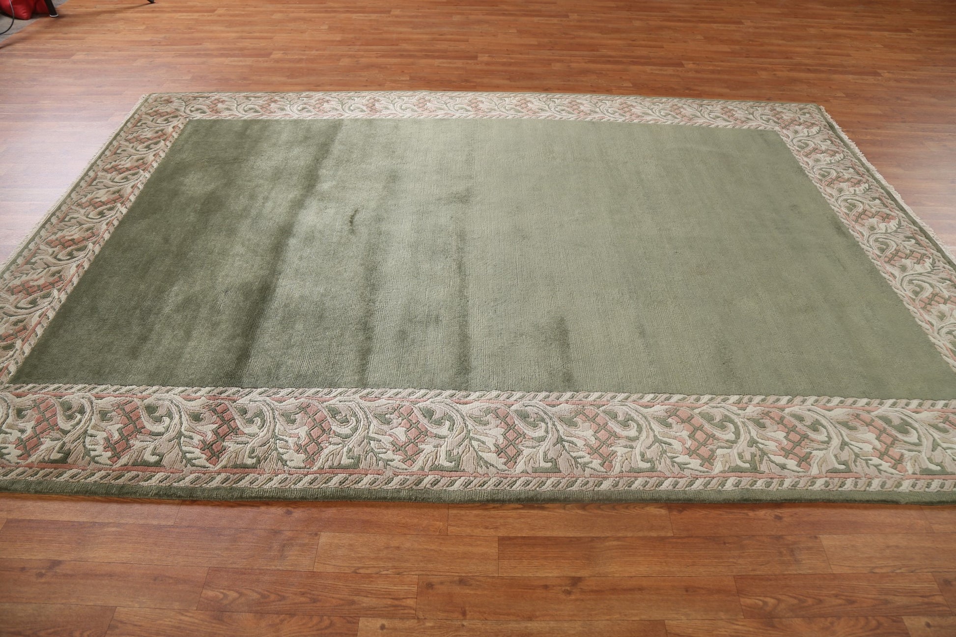 A Beautiful Genuine India Nepalese rug is Hand Knotted by skillful weavers in India with 100% Wool Material. This rug is in New, First Quality condition. dimensions are 9' 6'' X 6' 5'' in foot and 290 X 196 in centimeter. the primary color is Green.