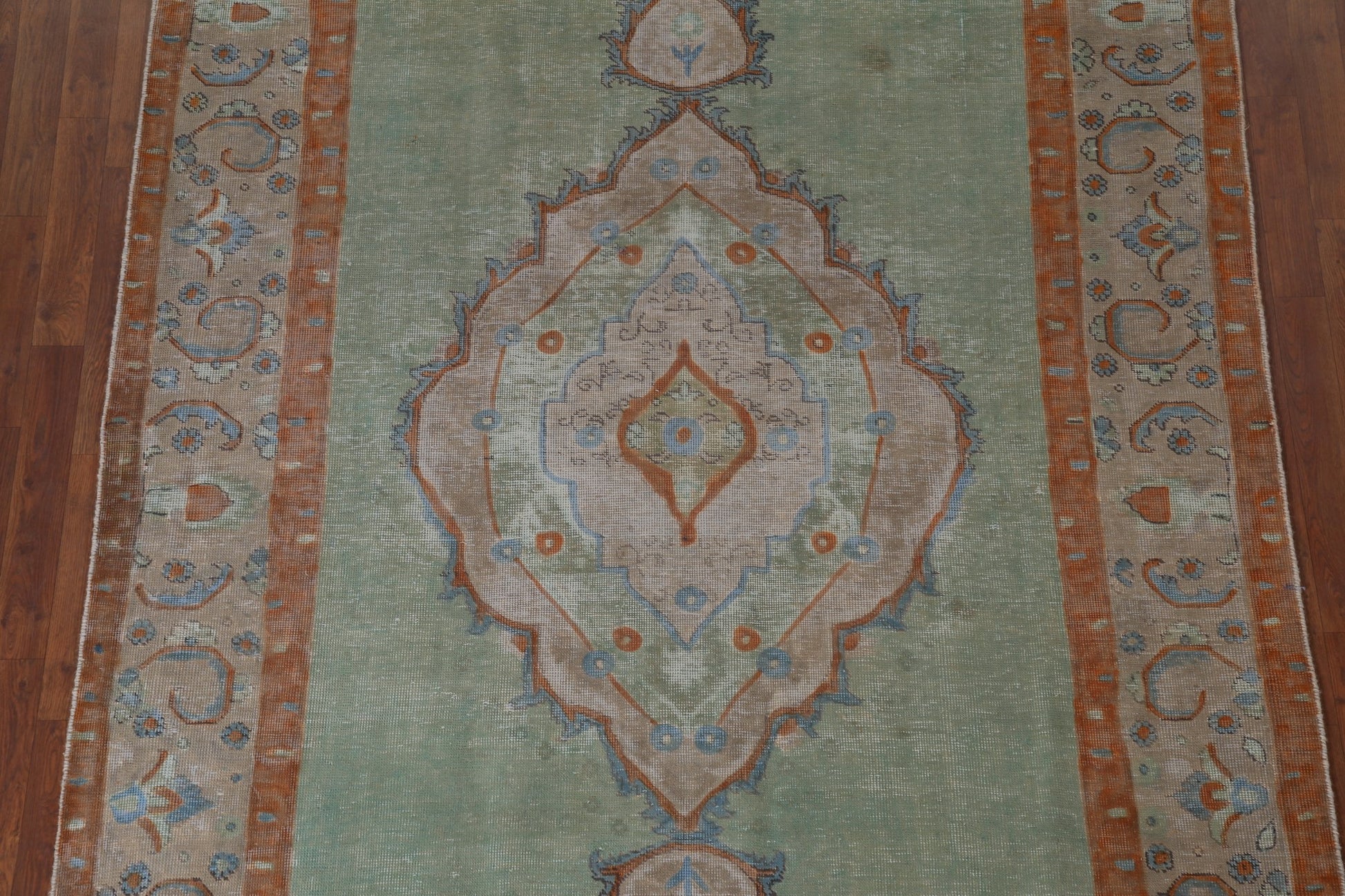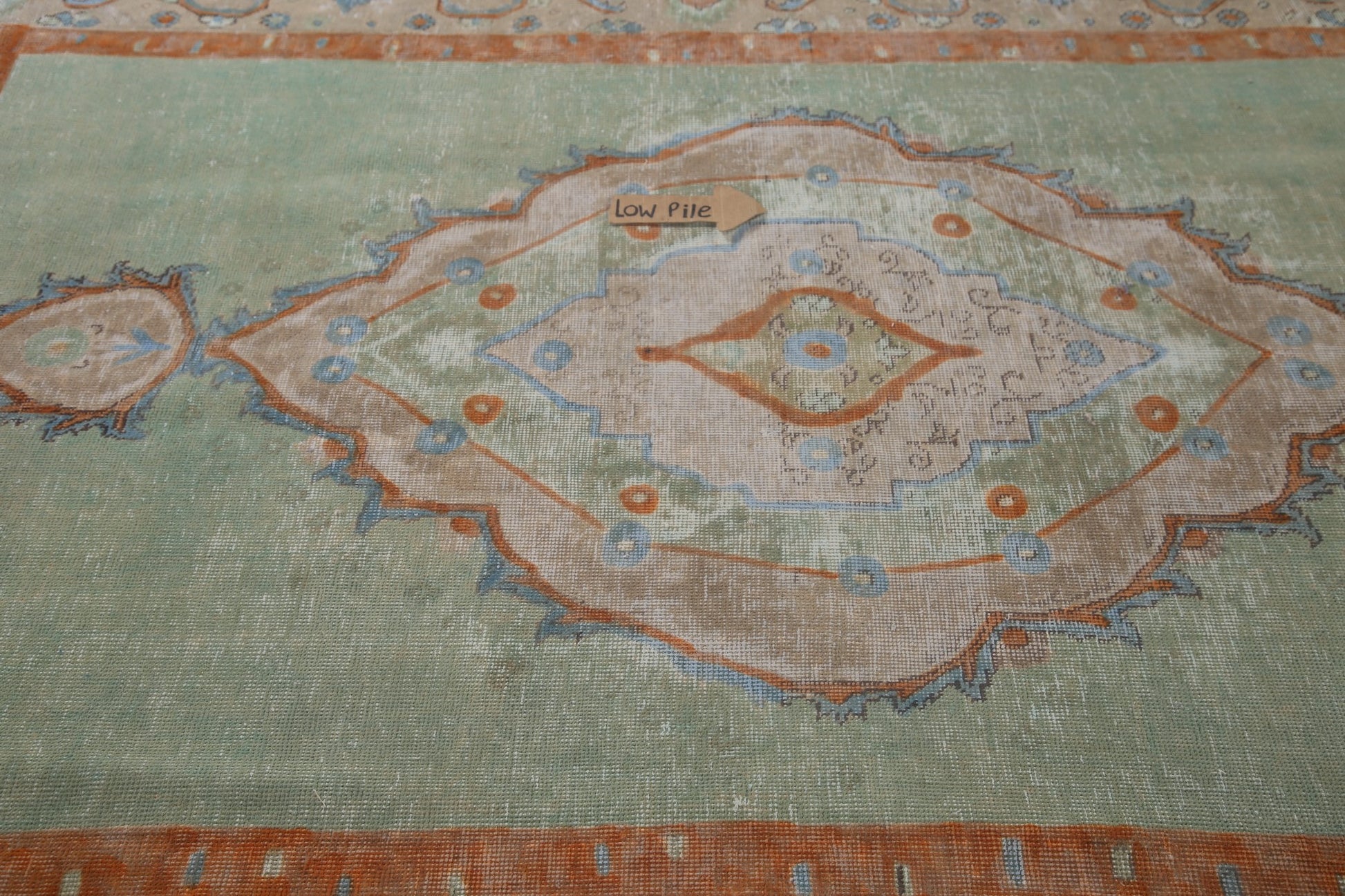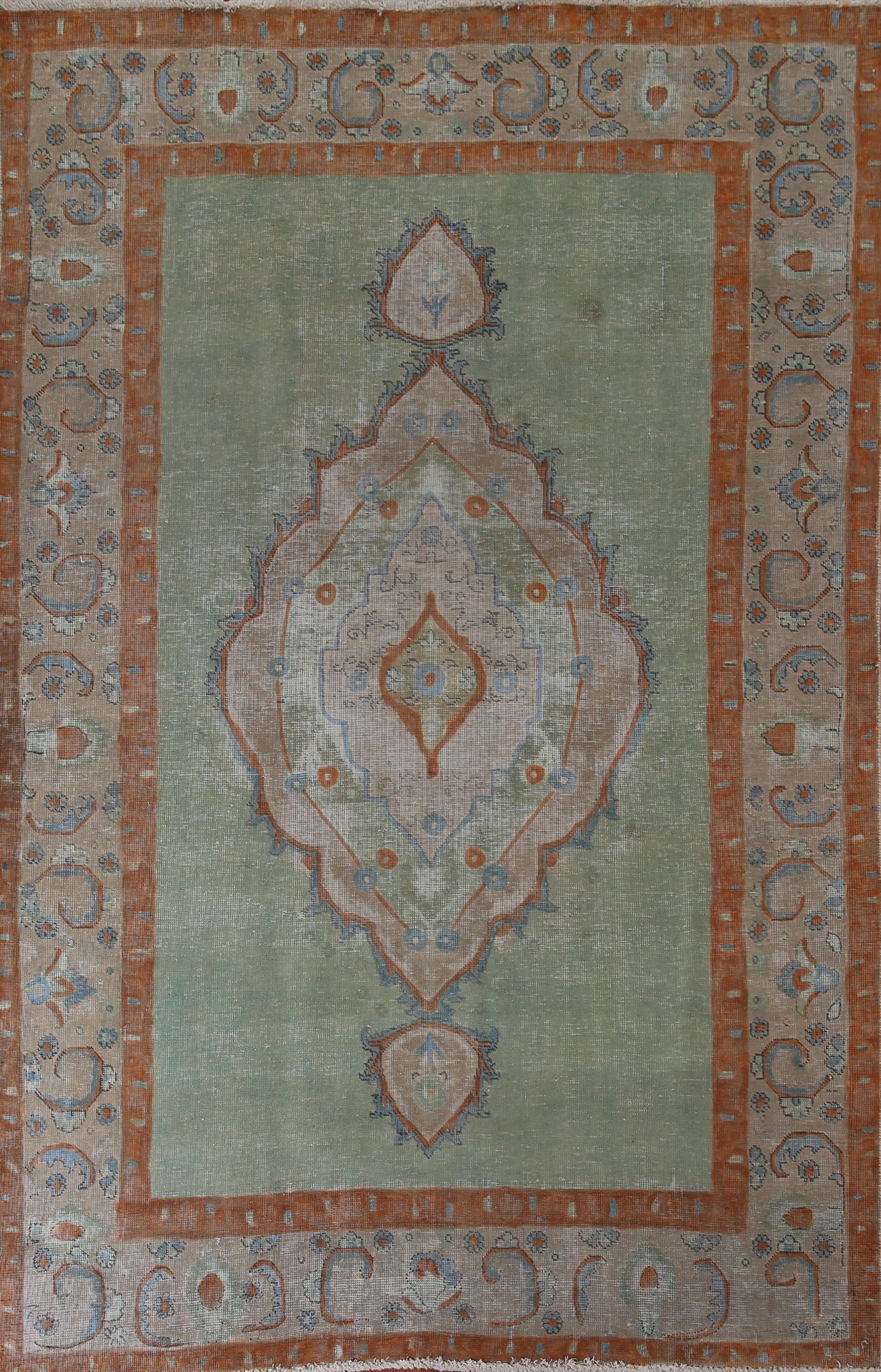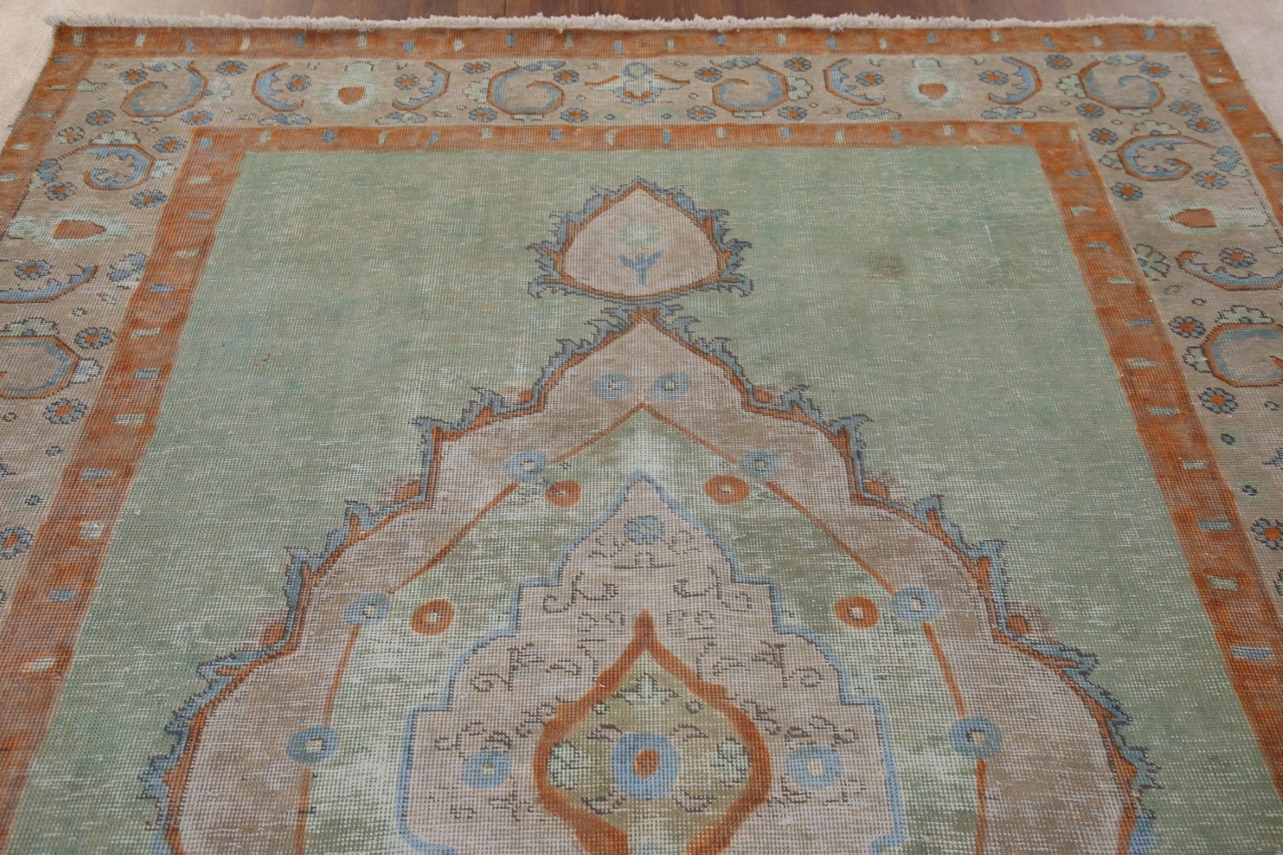 A Beautiful Genuine Persia ( Persia ) Tabriz rug is Hand Knotted by skillful weavers in Persia ( Persia ) with 100% Wool Material. This rug is in Very Good (Low Pile) condition. dimensions are 9' 0'' X 6' 4'' in foot and 274 X 193 in centimeter. the primary color is Green.