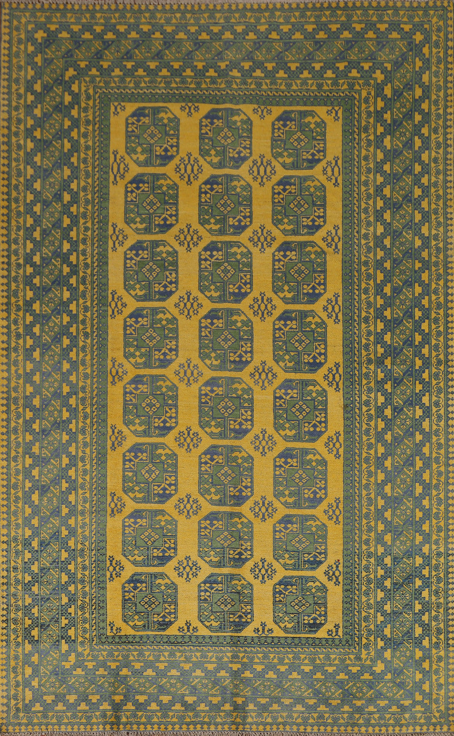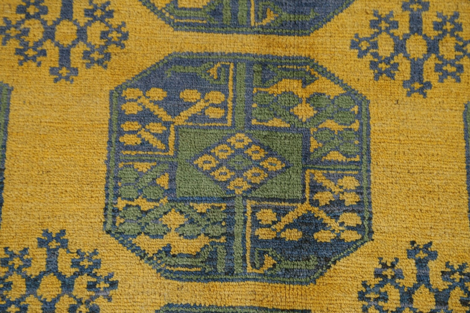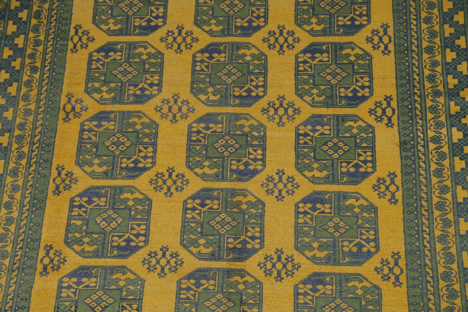 A Beautiful Genuine Pakistan Kazak rug is Hand Knotted by skillful weavers in Pakistan with 100% Wool Material. This rug is in condition. dimensions are 9' 5'' X 6' 8'' in foot and 287 X 203 in centimeter. the primary color is Yellow & Gold.