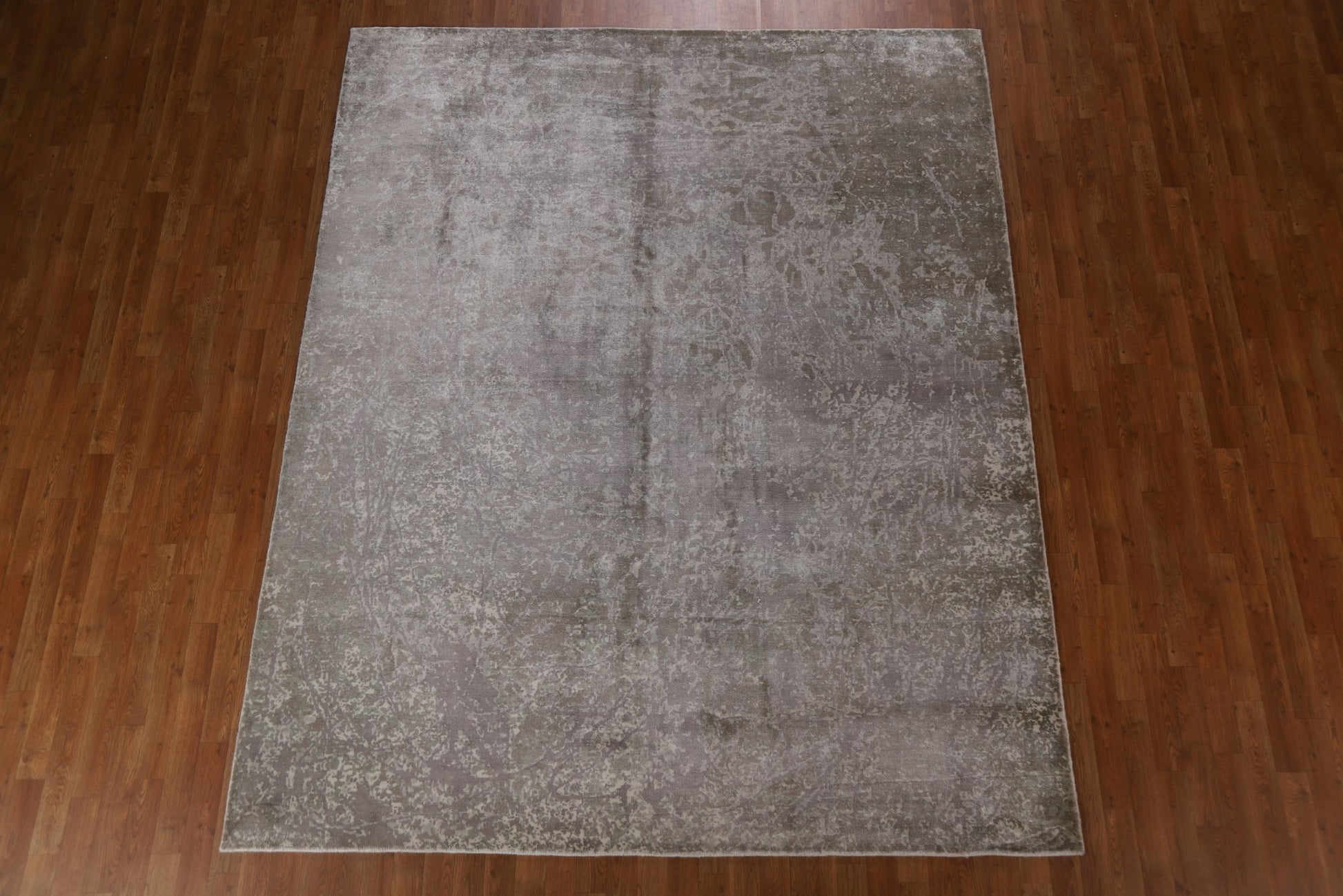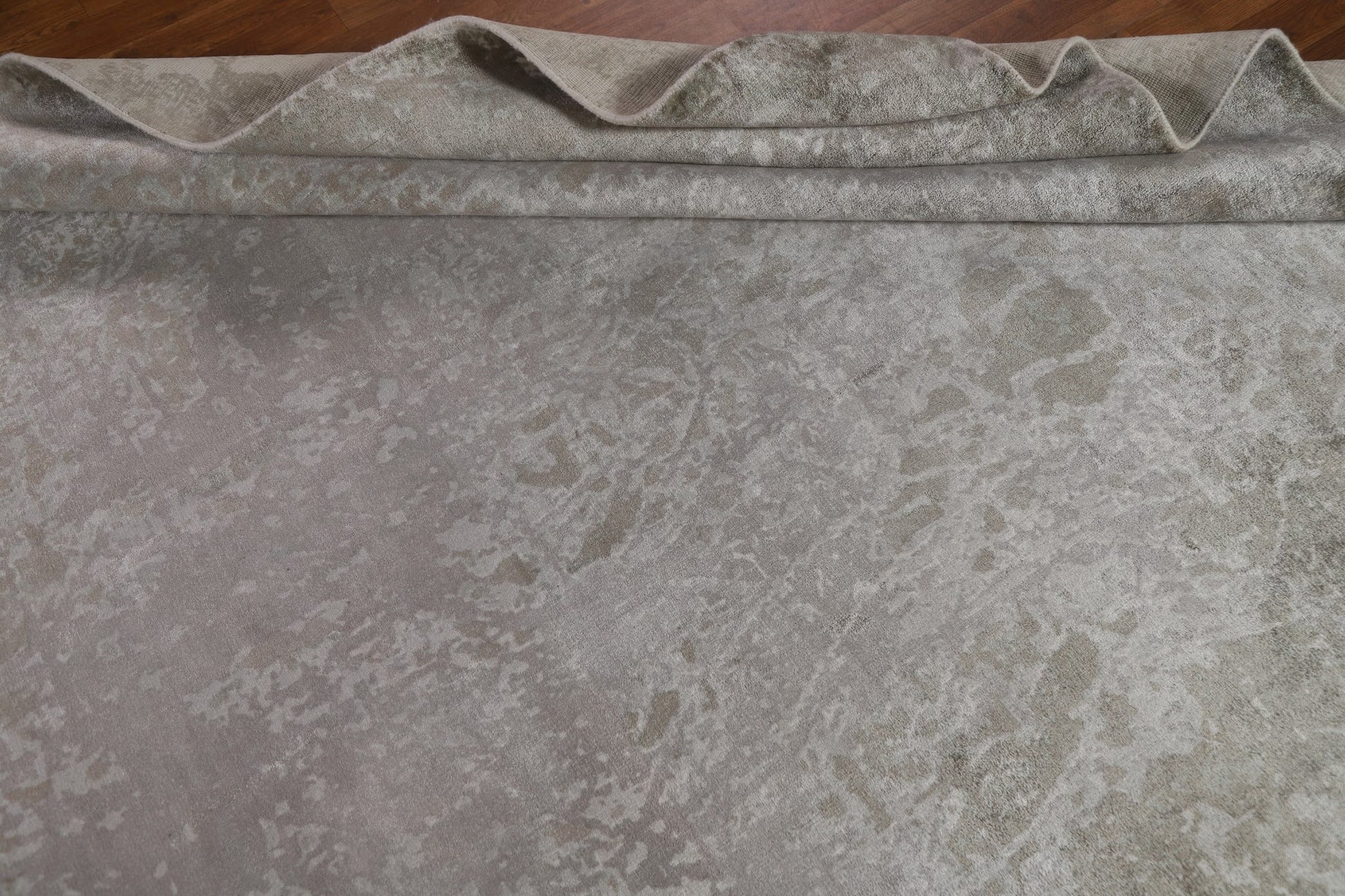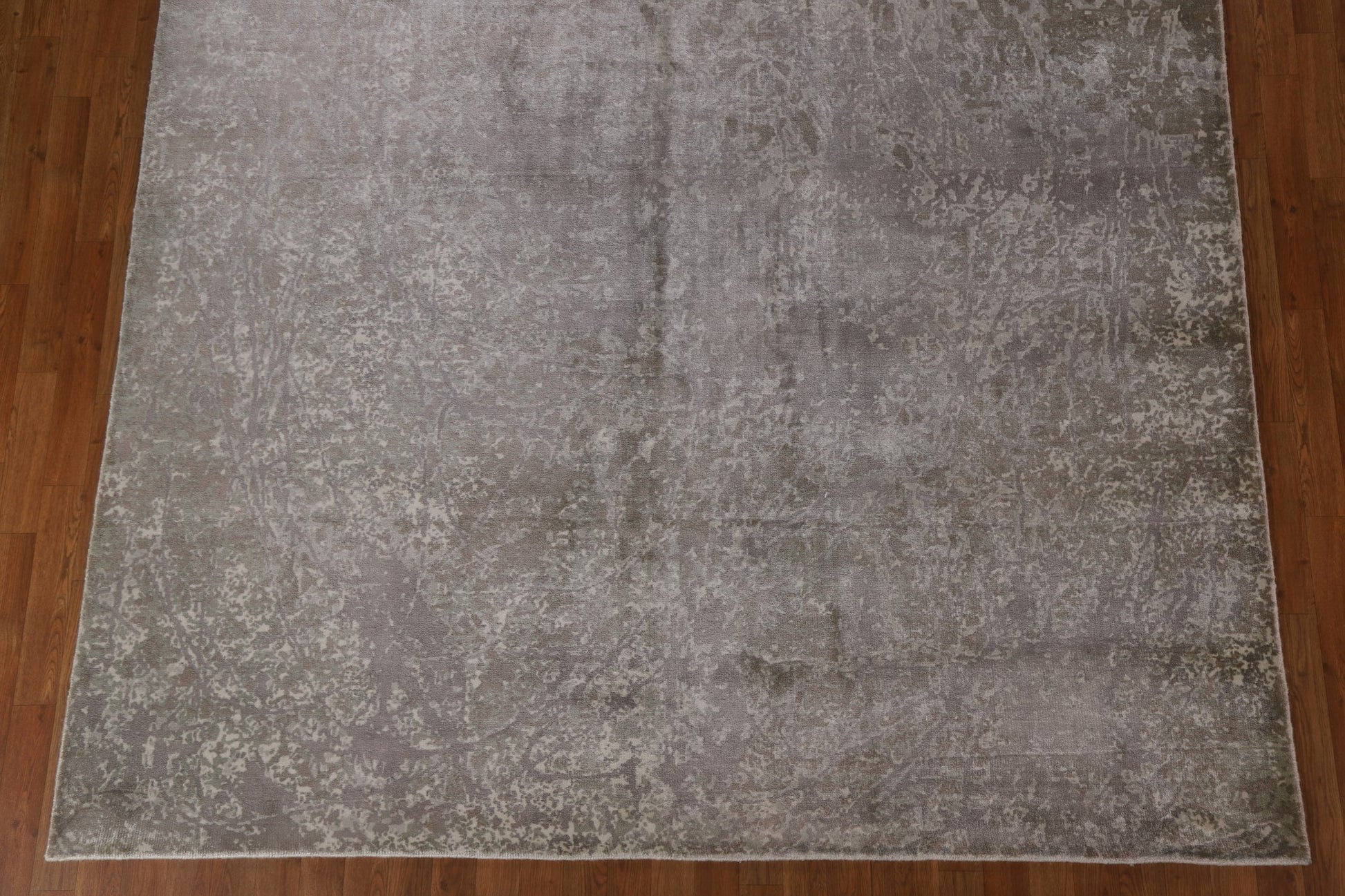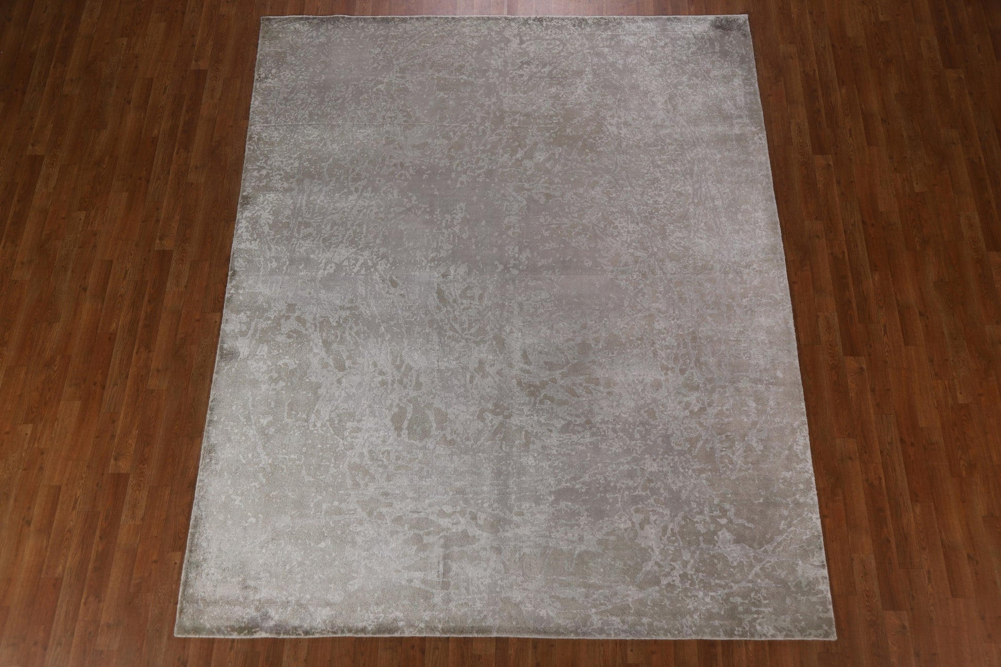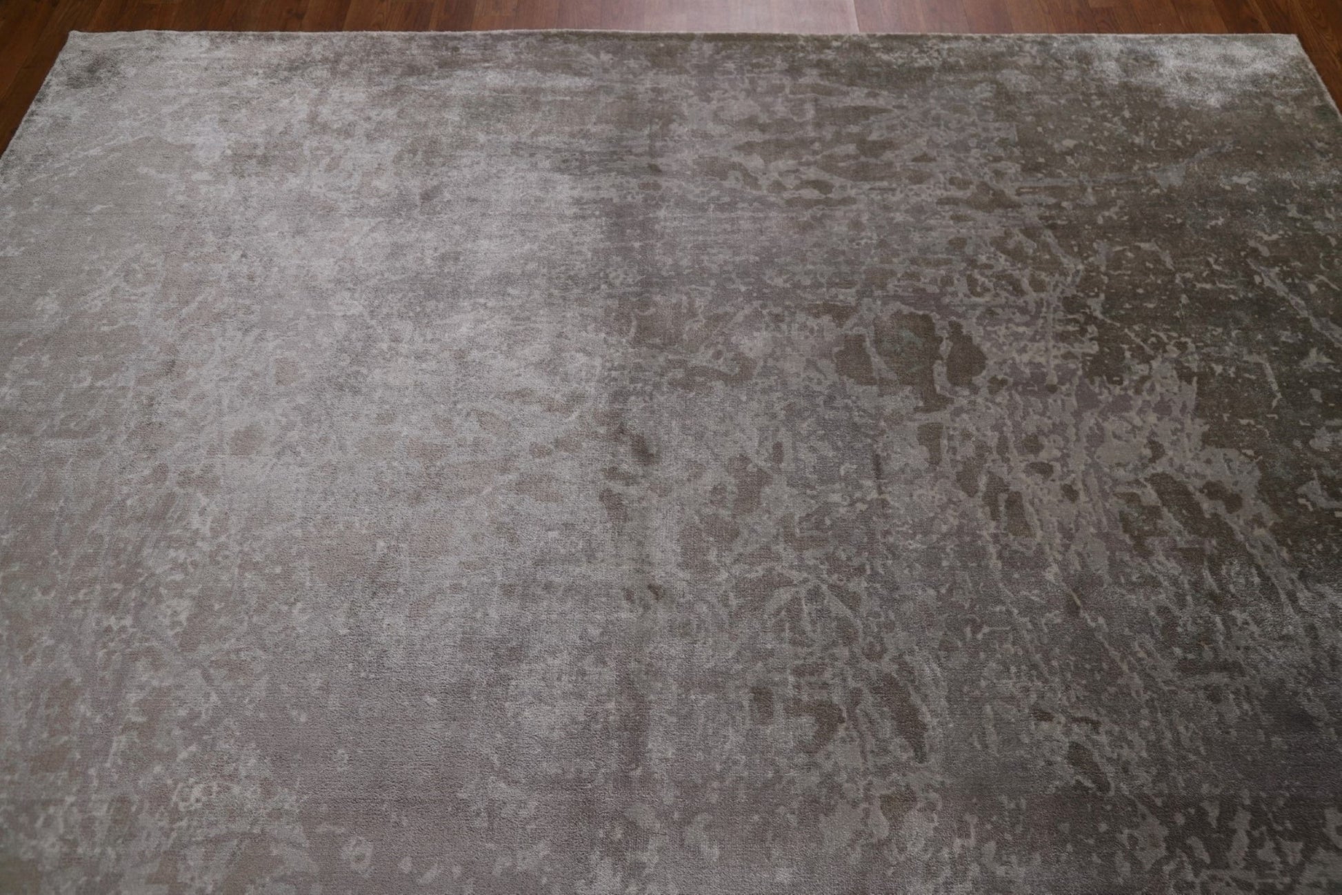 A Beautiful Genuine India Abstract rug is Hand Knotted by skillful weavers in India with Synthetic Silk Material. This rug is in New, First Quality condition. dimensions are 9' 7'' X 7' 9'' in foot and 292 X 236 in centimeter. the primary color is Greys & Charcoal.