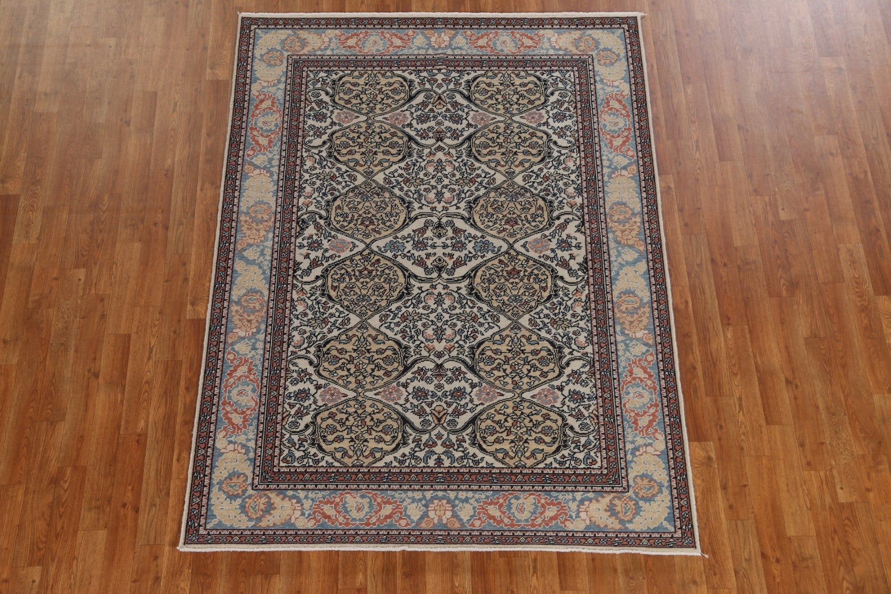 A Beautiful Genuine Turkey Bakhtiari rug is Hand Knotted by skillful weavers in Turkey with 100% Wool Material. This rug is in New, First Quality condition. dimensions are 6' 10'' X 5' 0'' in foot and 208 X 152 in centimeter. the primary color is Beige & Ivories.