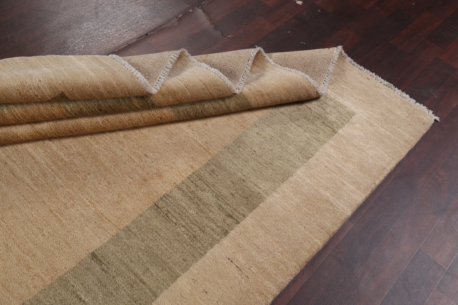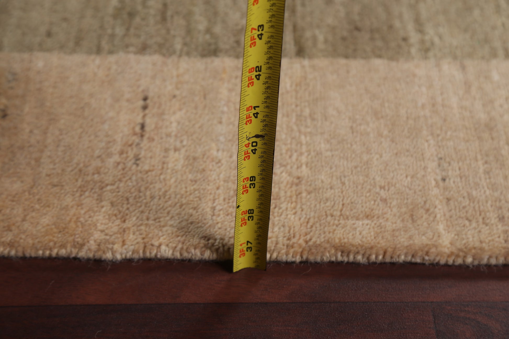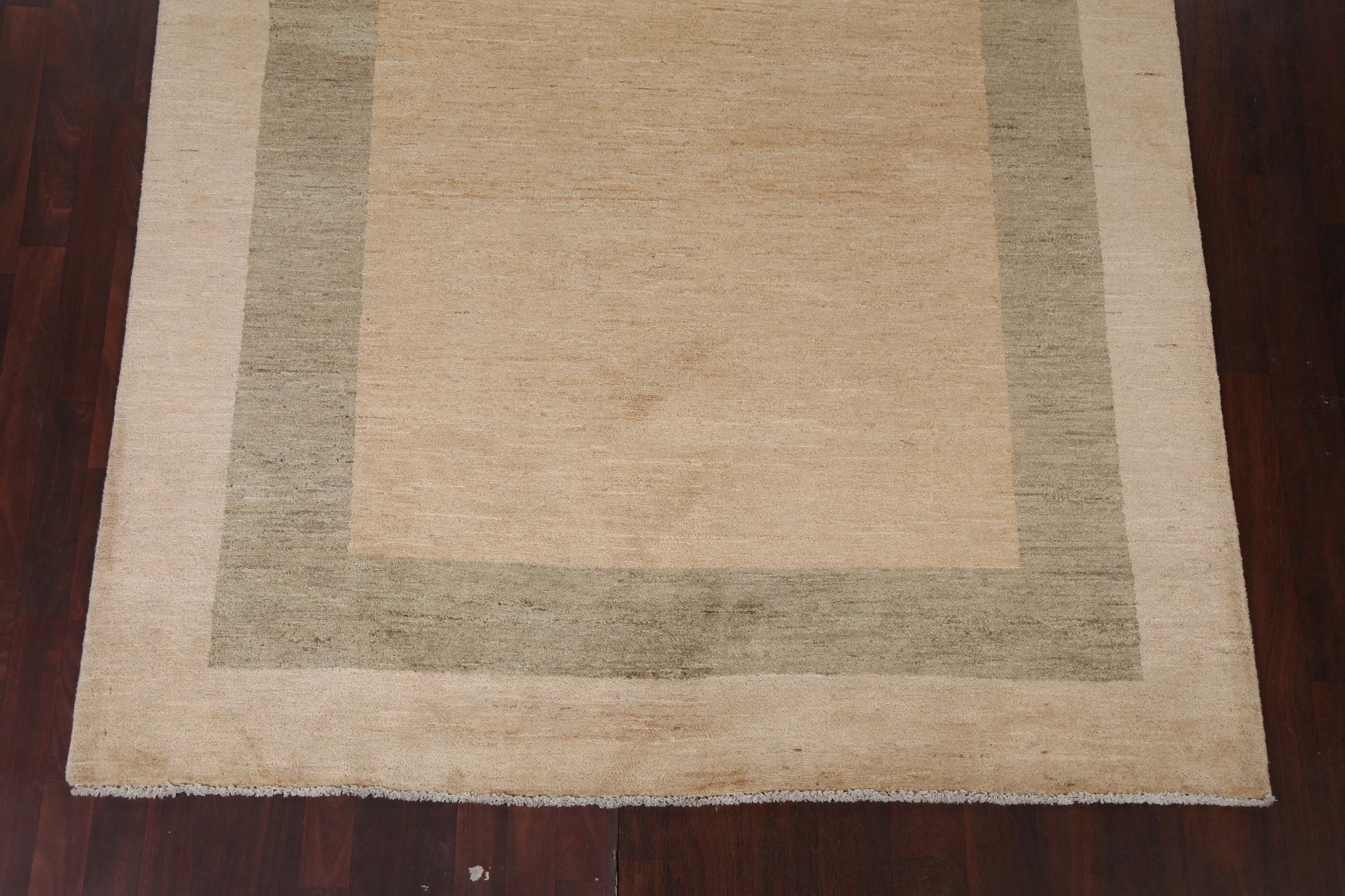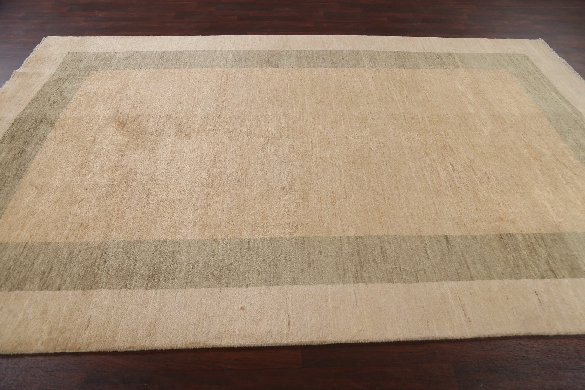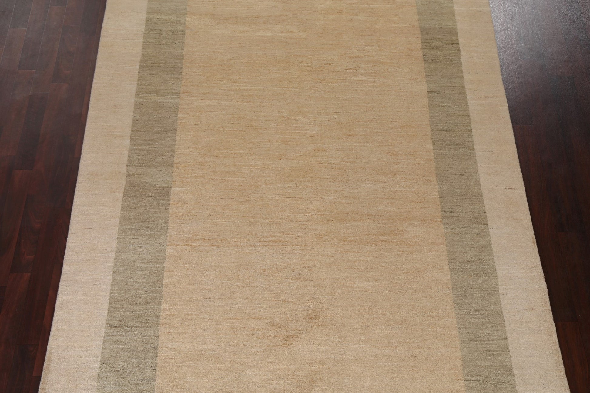A Beautiful Genuine Pakistan Gabbeh (kashkoli) rug is Hand Knotted by skillful weavers in Pakistan with 100% Wool Material. This rug is in New, First Quality condition. dimensions are 10' 1'' X 6' 8'' in foot and 307 X 203 in centimeter. the primary color is Beige & Ivories.