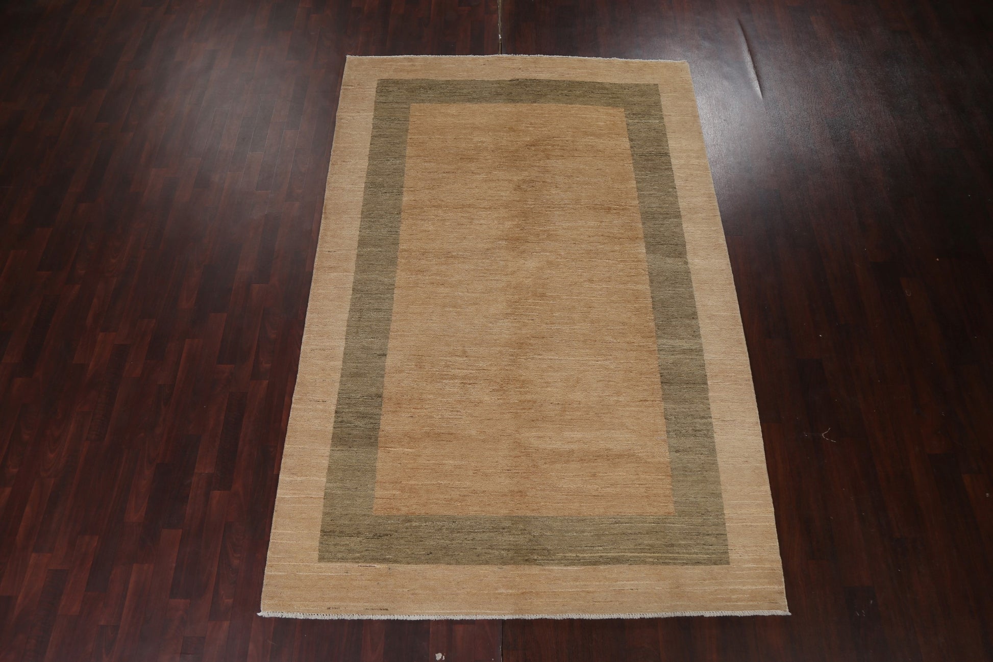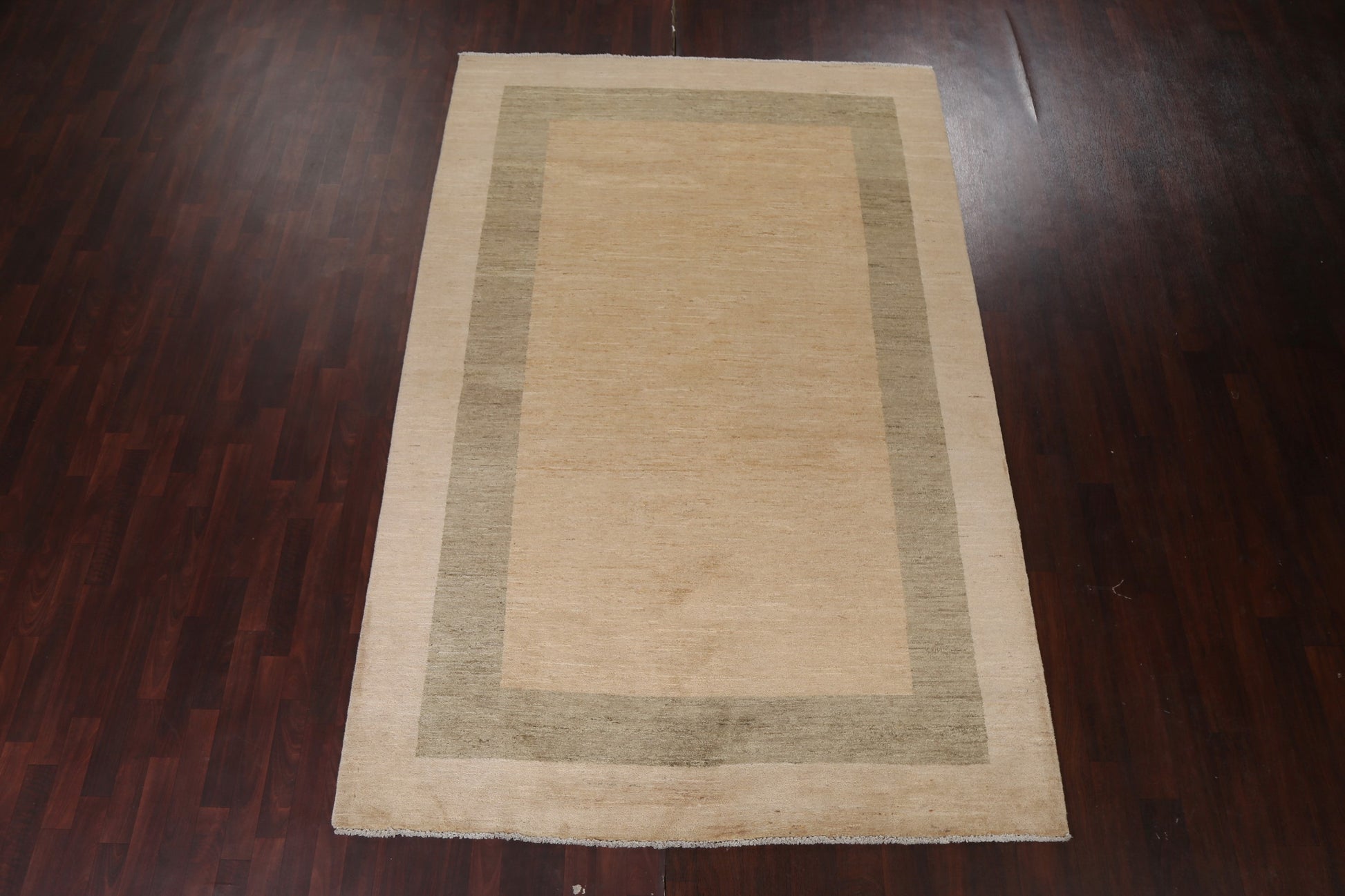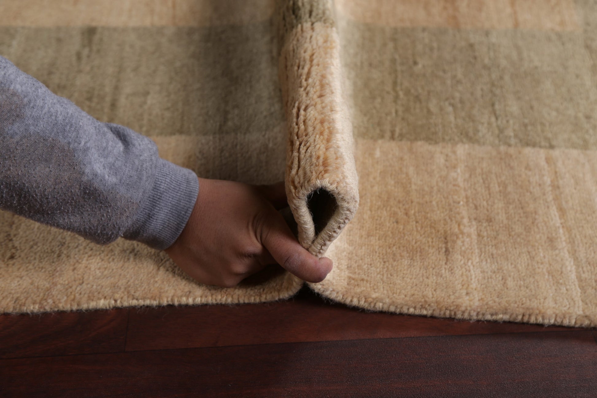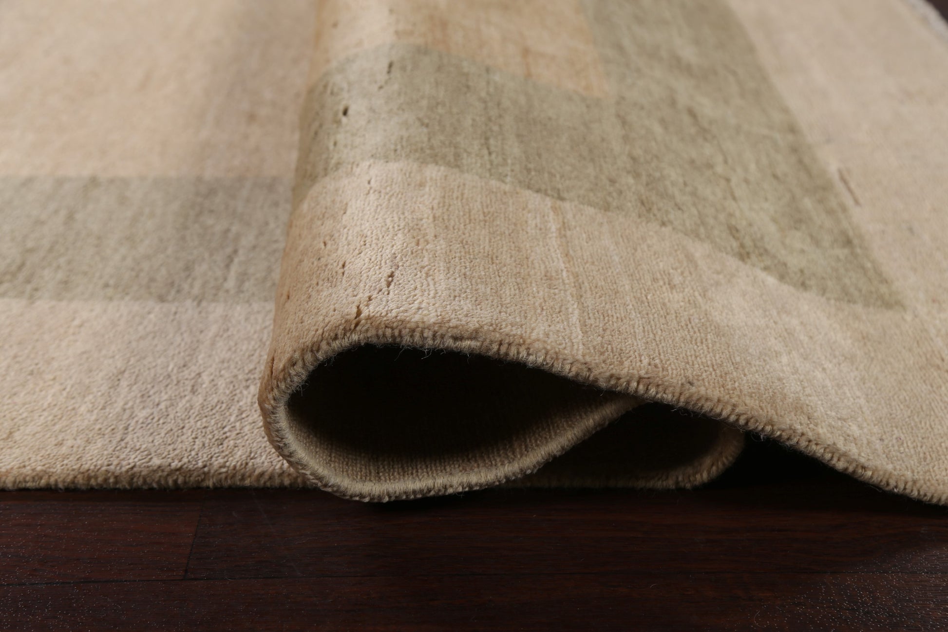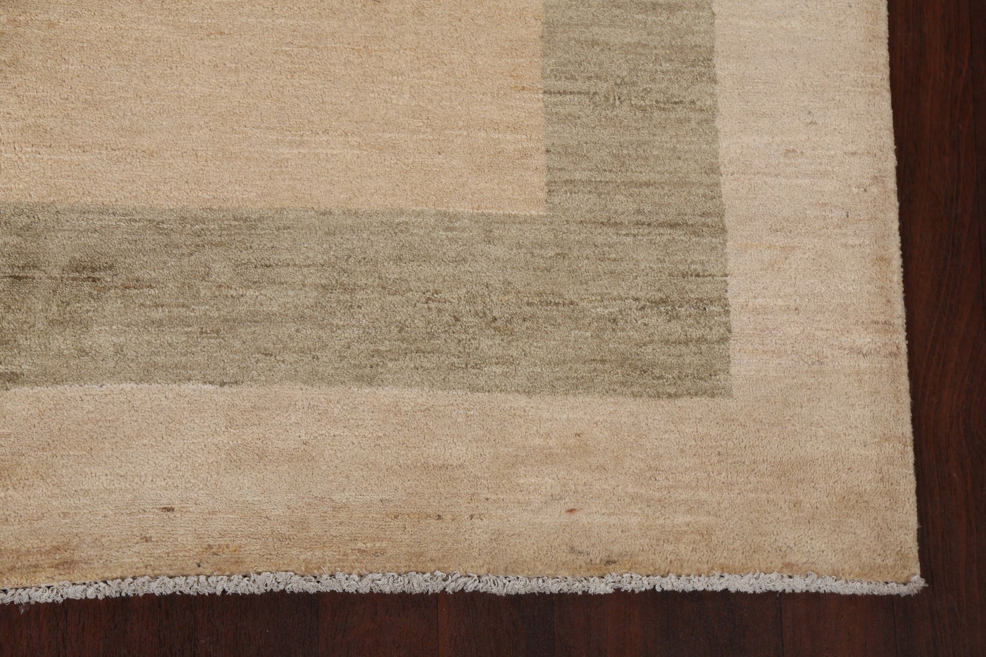 A Beautiful Genuine Pakistan Gabbeh (kashkoli) rug is Hand Knotted by skillful weavers in Pakistan with 100% Wool Material. This rug is in New, First Quality condition. dimensions are 10' 1'' X 6' 8'' in foot and 307 X 203 in centimeter. the primary color is Beige & Ivories.