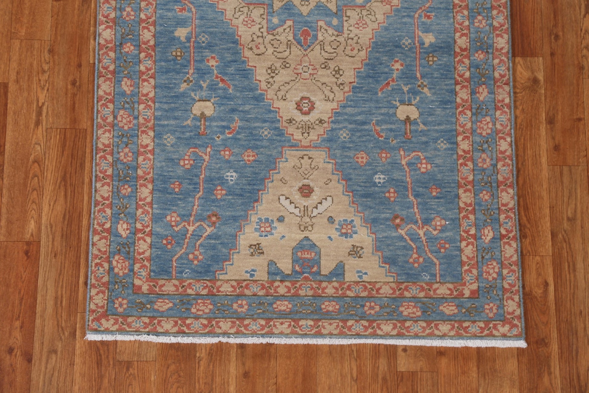 A Beautiful Genuine Turkey Heriz (serapi) rug is Hand Knotted by skillful weavers in Turkey with 100% Wool Material. This rug is in New, First Quality condition. dimensions are 9' 9'' X 2' 11'' in foot and 297 X 89 in centimeter. the primary color is Navy Blue & Blues.