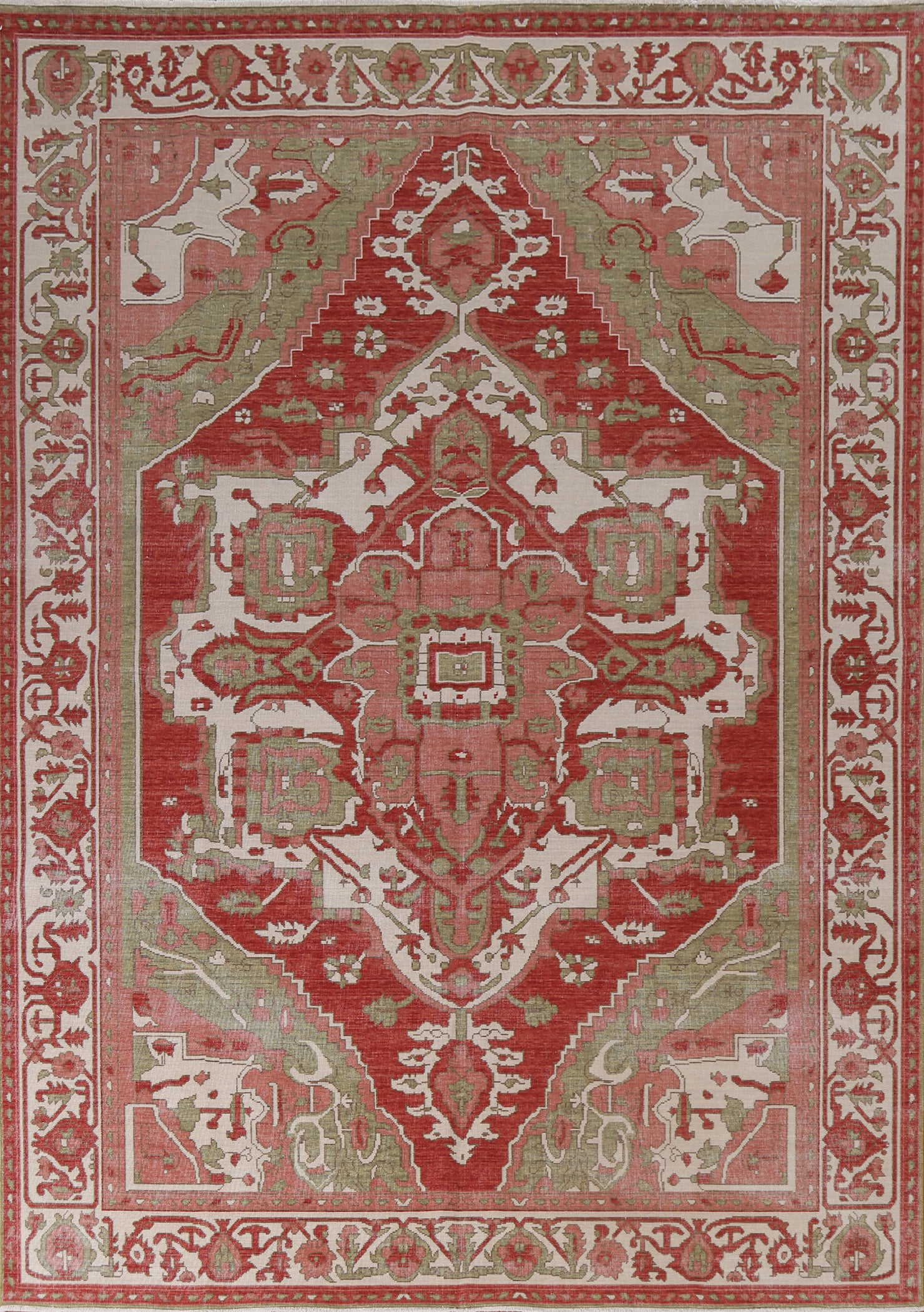 A Beautiful Genuine Turkey Heriz (serapi) rug is Hand Knotted by skillful weavers in Turkey with 100% Wool Material. This rug is in New, First Quality condition. dimensions are 9' 9'' X 7' 10'' in foot and 297 X 239 in centimeter. the primary color is Red.