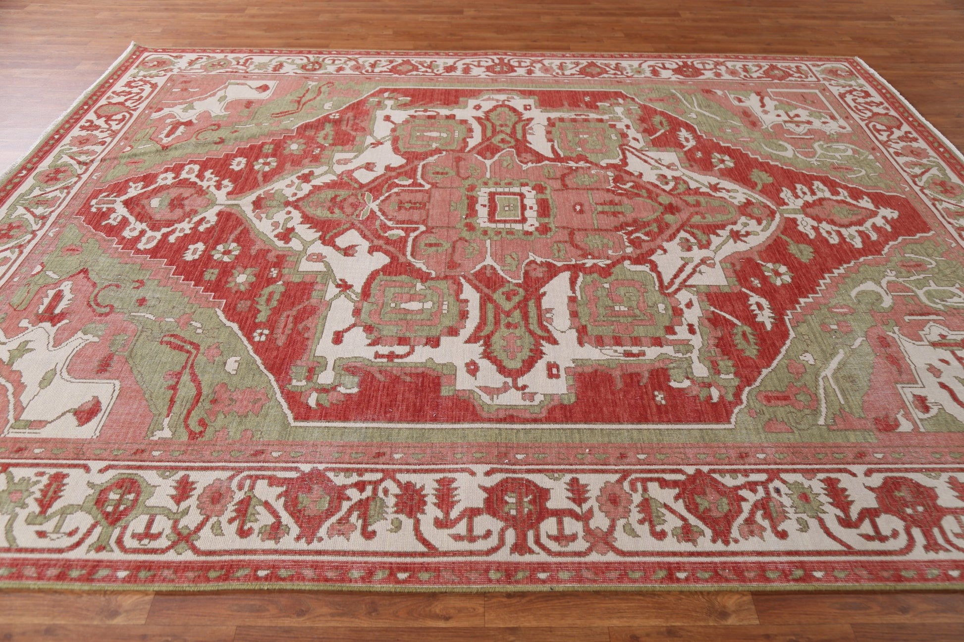 A Beautiful Genuine Turkey Heriz (serapi) rug is Hand Knotted by skillful weavers in Turkey with 100% Wool Material. This rug is in New, First Quality condition. dimensions are 9' 9'' X 8' 0'' in foot and 297 X 244 in centimeter. the primary color is Red.