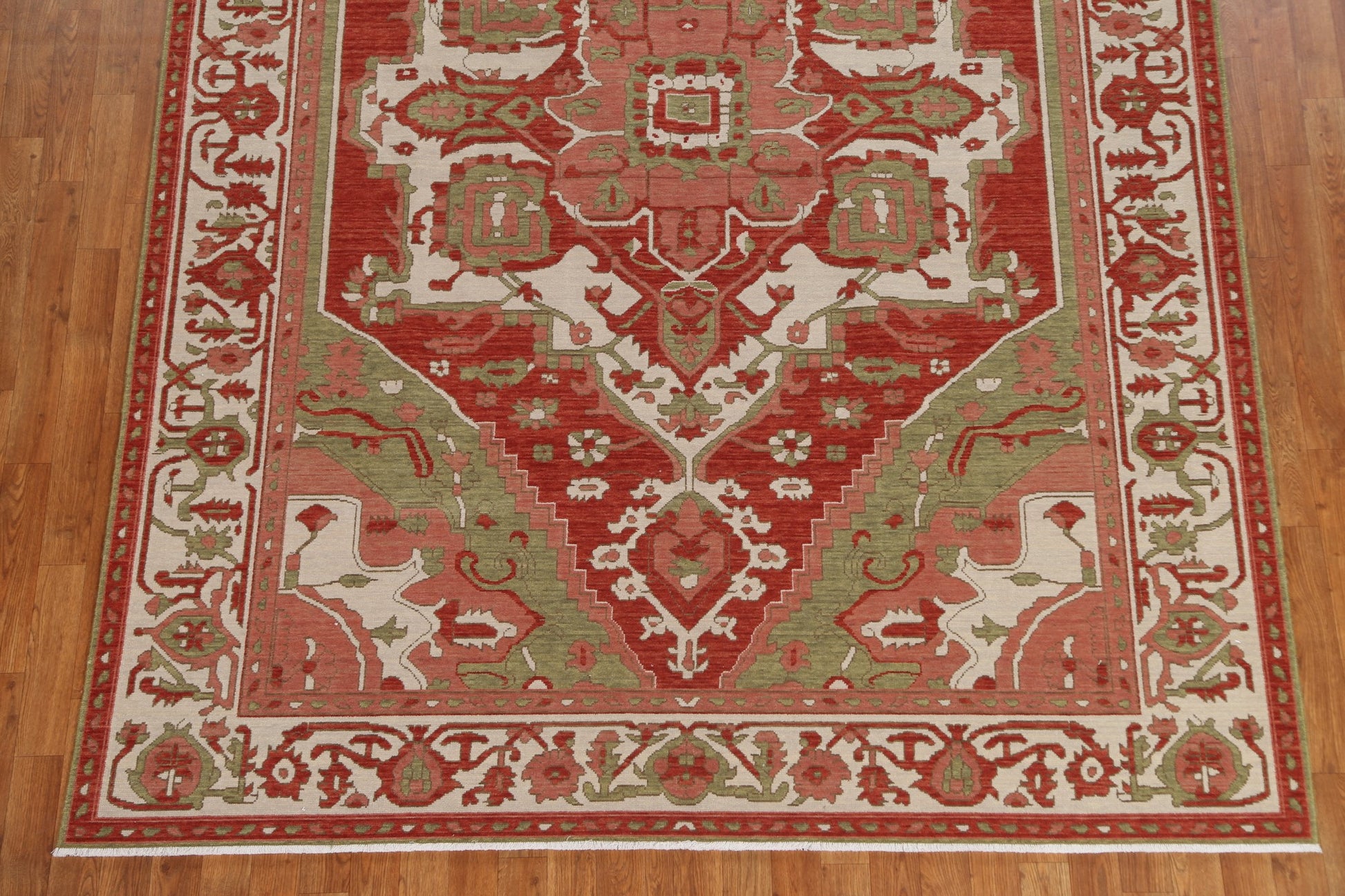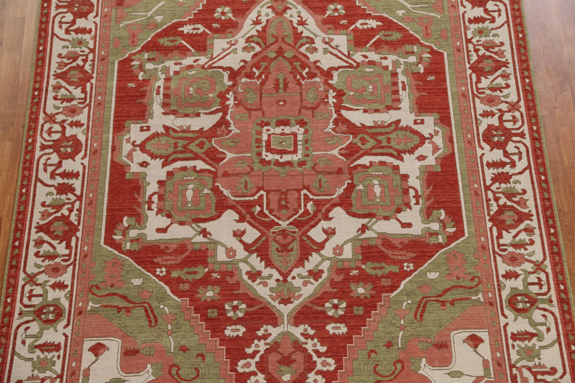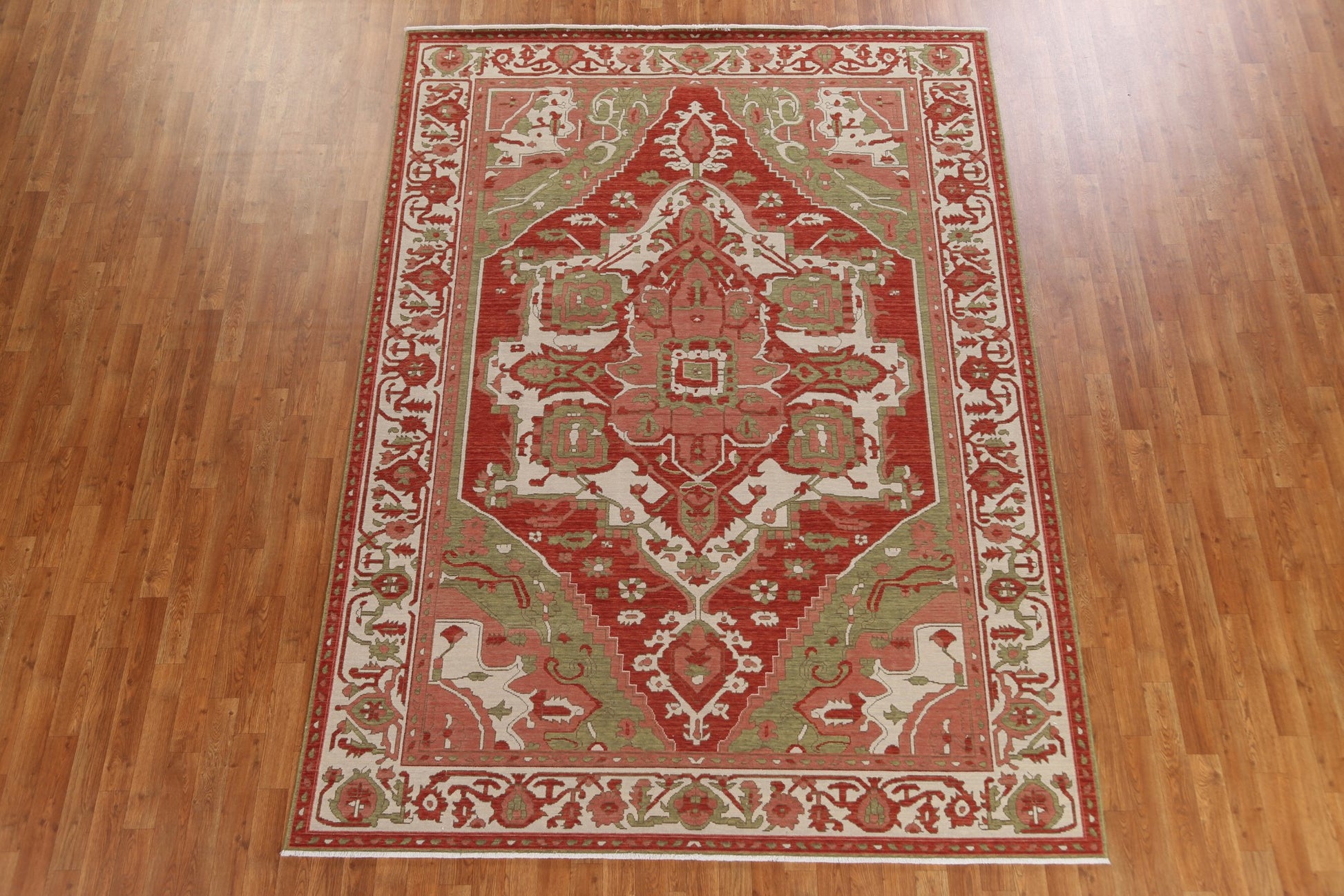 A Beautiful Genuine Turkey Heriz (serapi) rug is Hand Knotted by skillful weavers in Turkey with 100% Wool Material. This rug is in New, First Quality condition. dimensions are 9' 9'' X 7' 0'' in foot and 297 X 213 in centimeter. the primary color is Red.