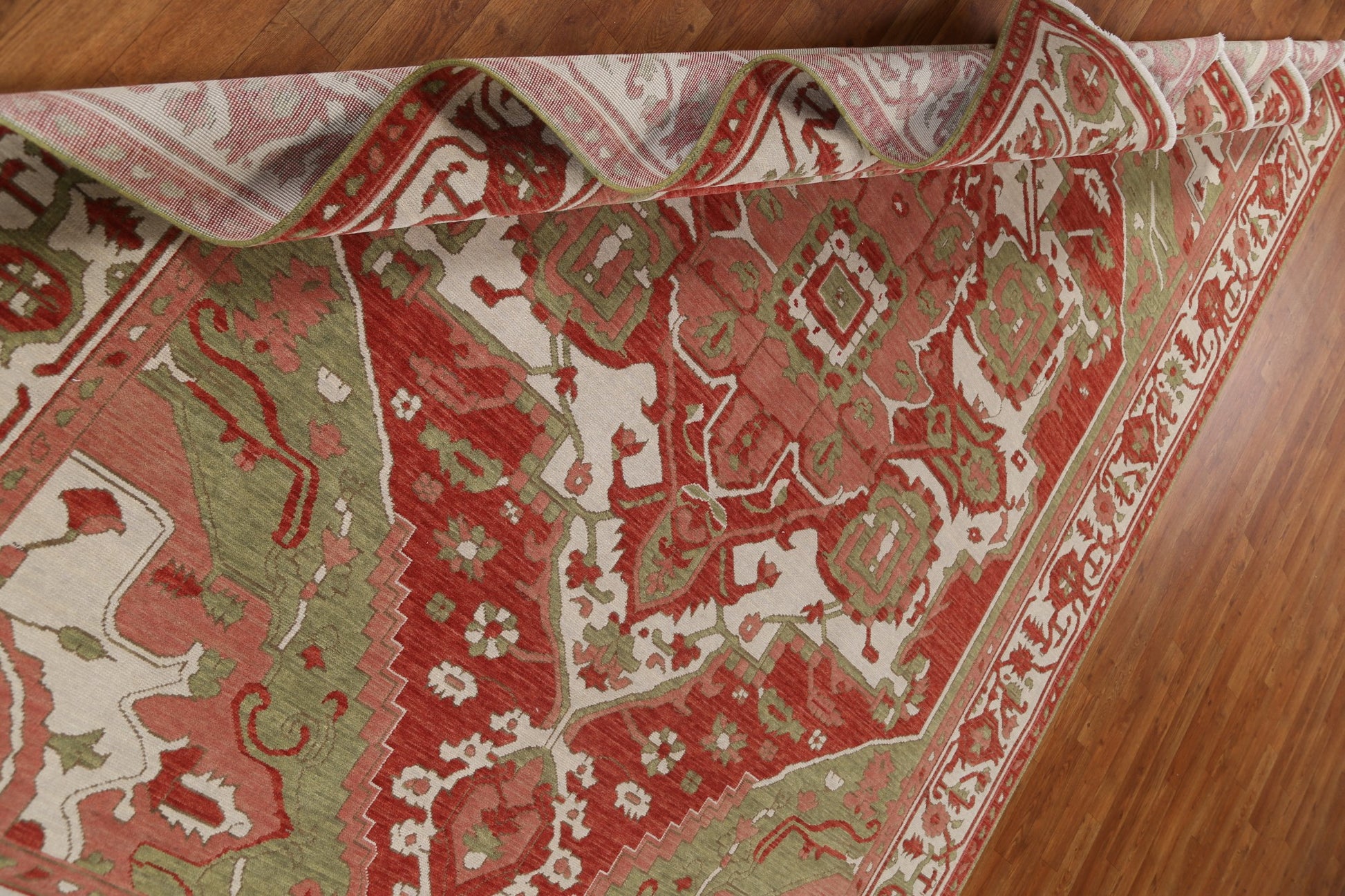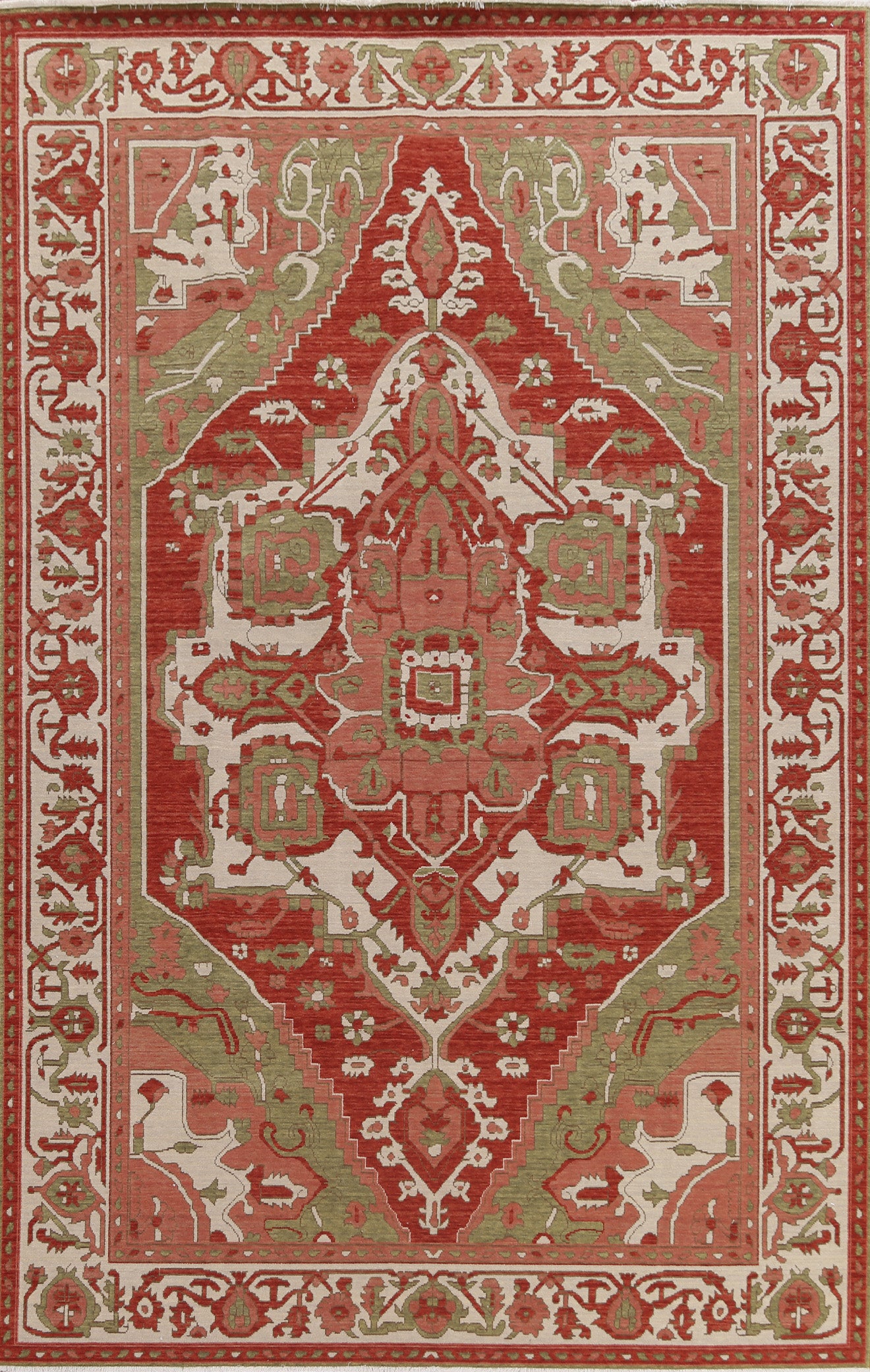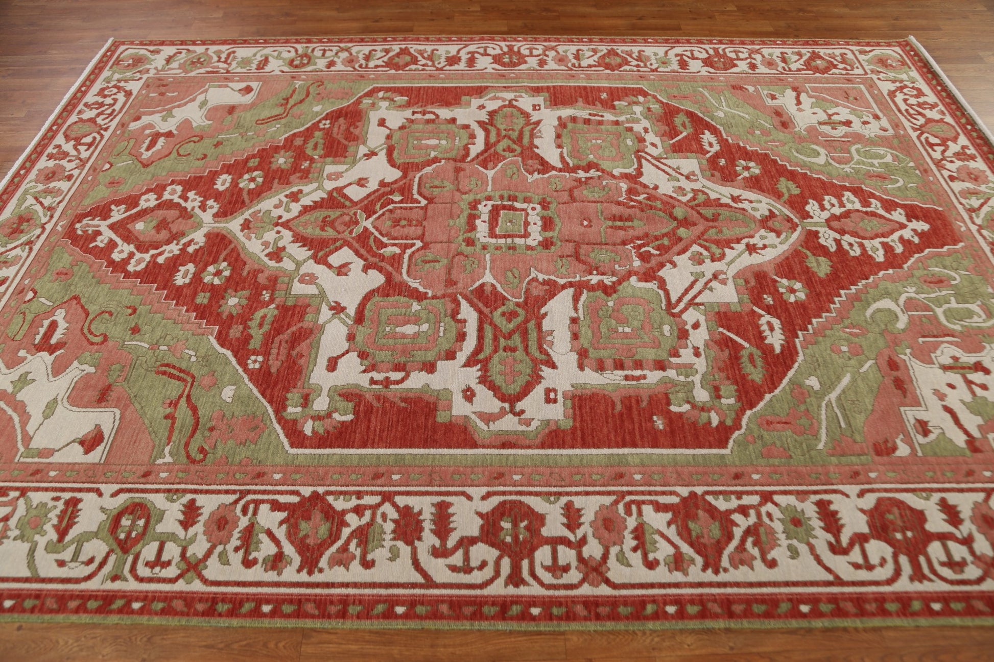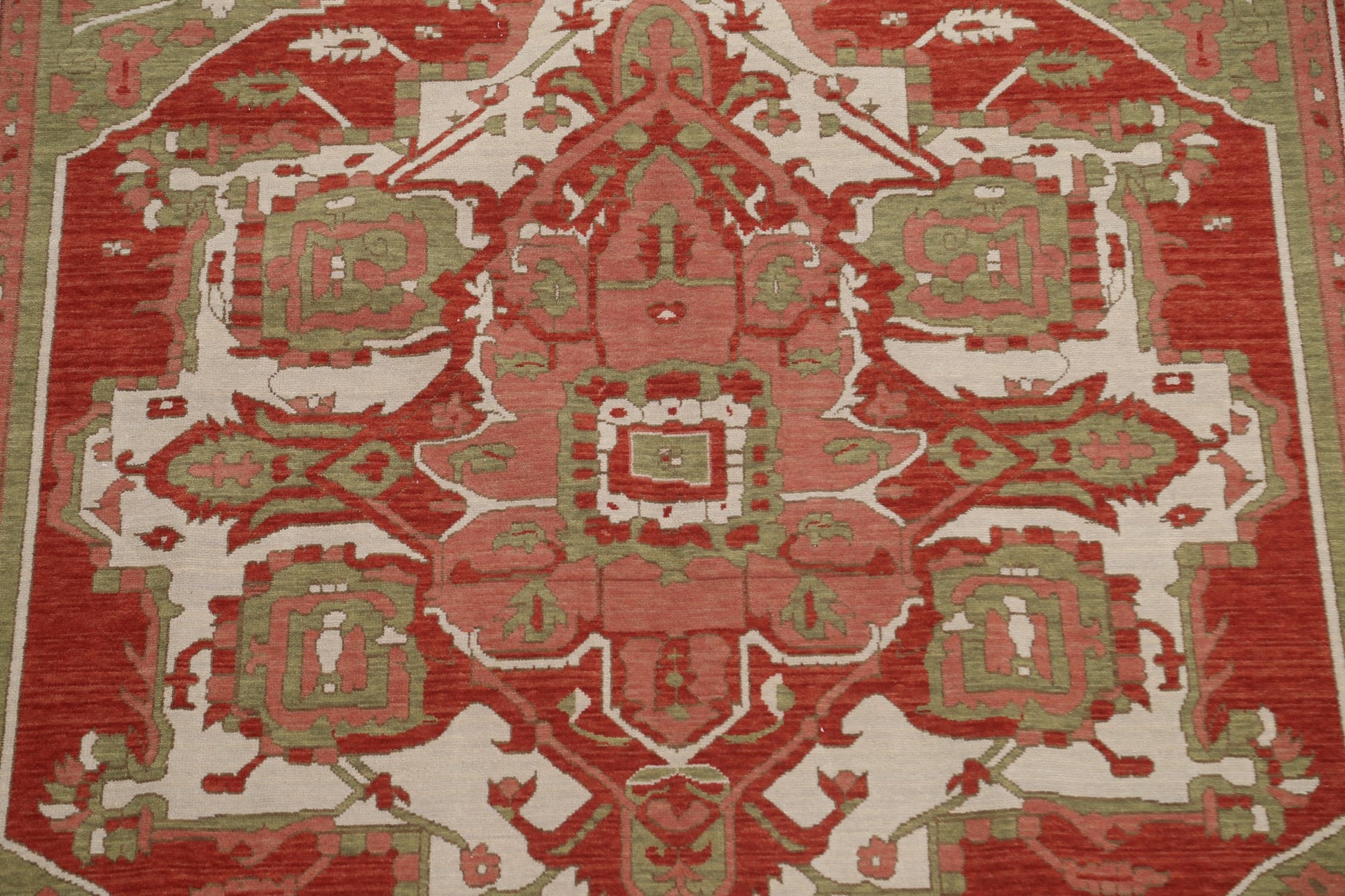 A Beautiful Genuine Turkey Heriz (serapi) rug is Hand Knotted by skillful weavers in Turkey with 100% Wool Material. This rug is in New, First Quality condition. dimensions are 9' 9'' X 7' 0'' in foot and 297 X 213 in centimeter. the primary color is Red.
