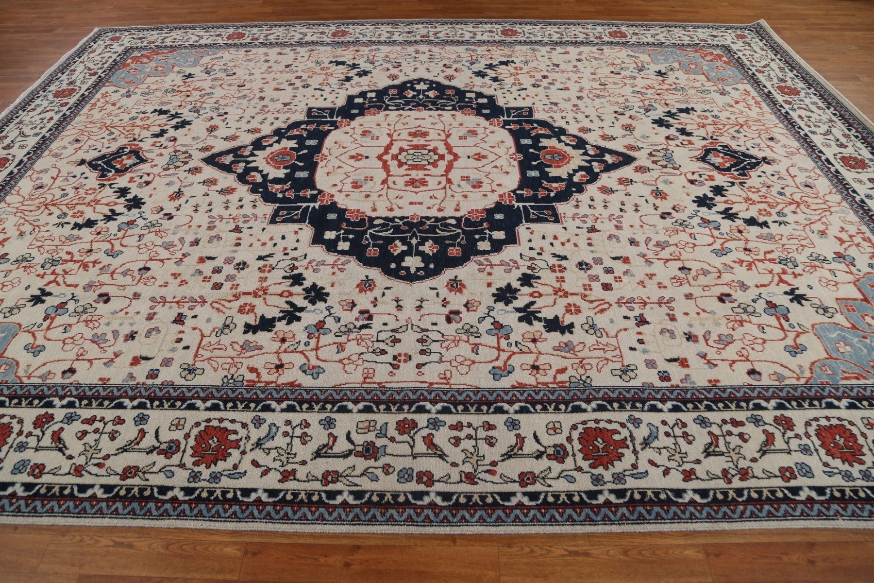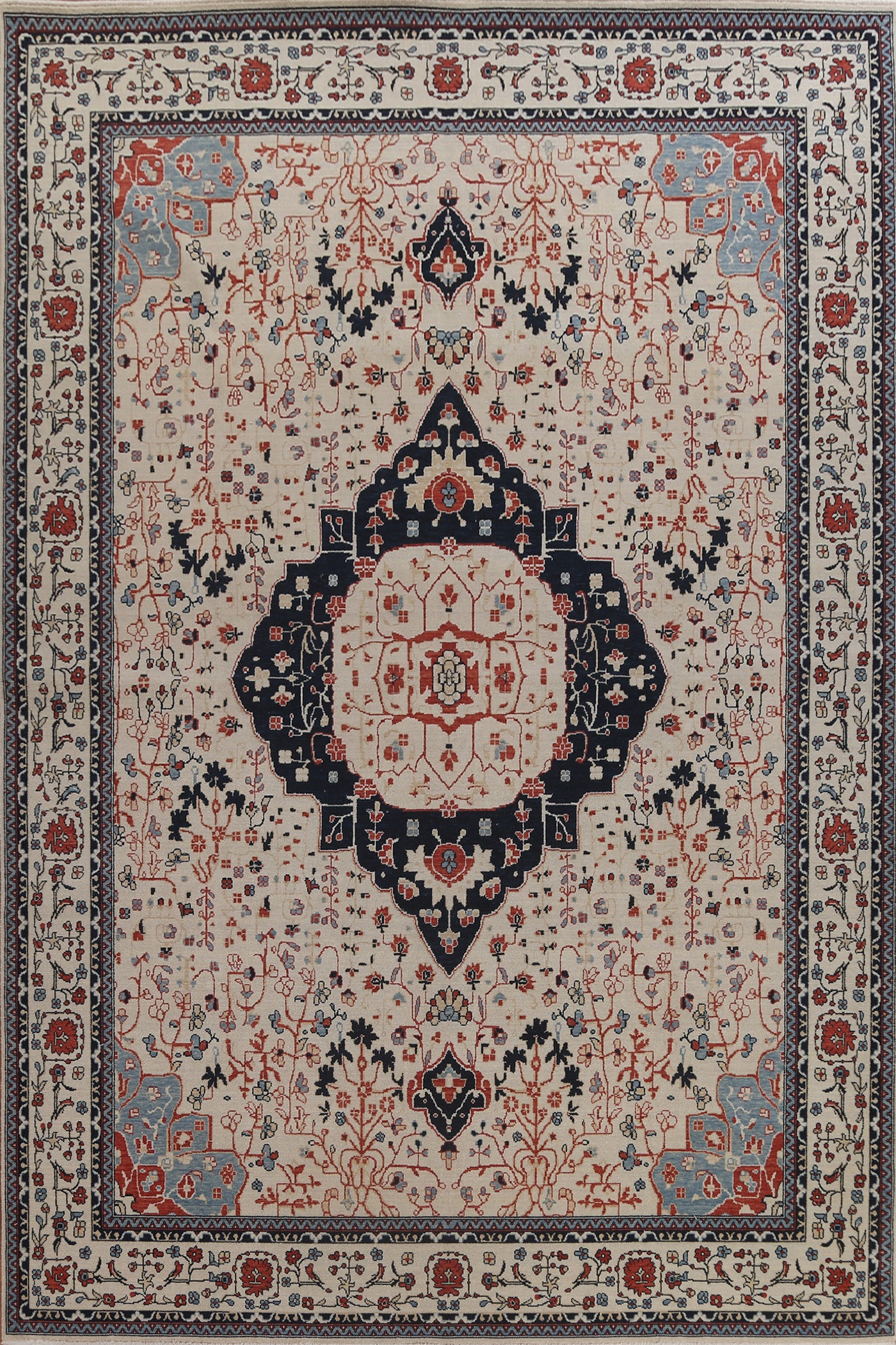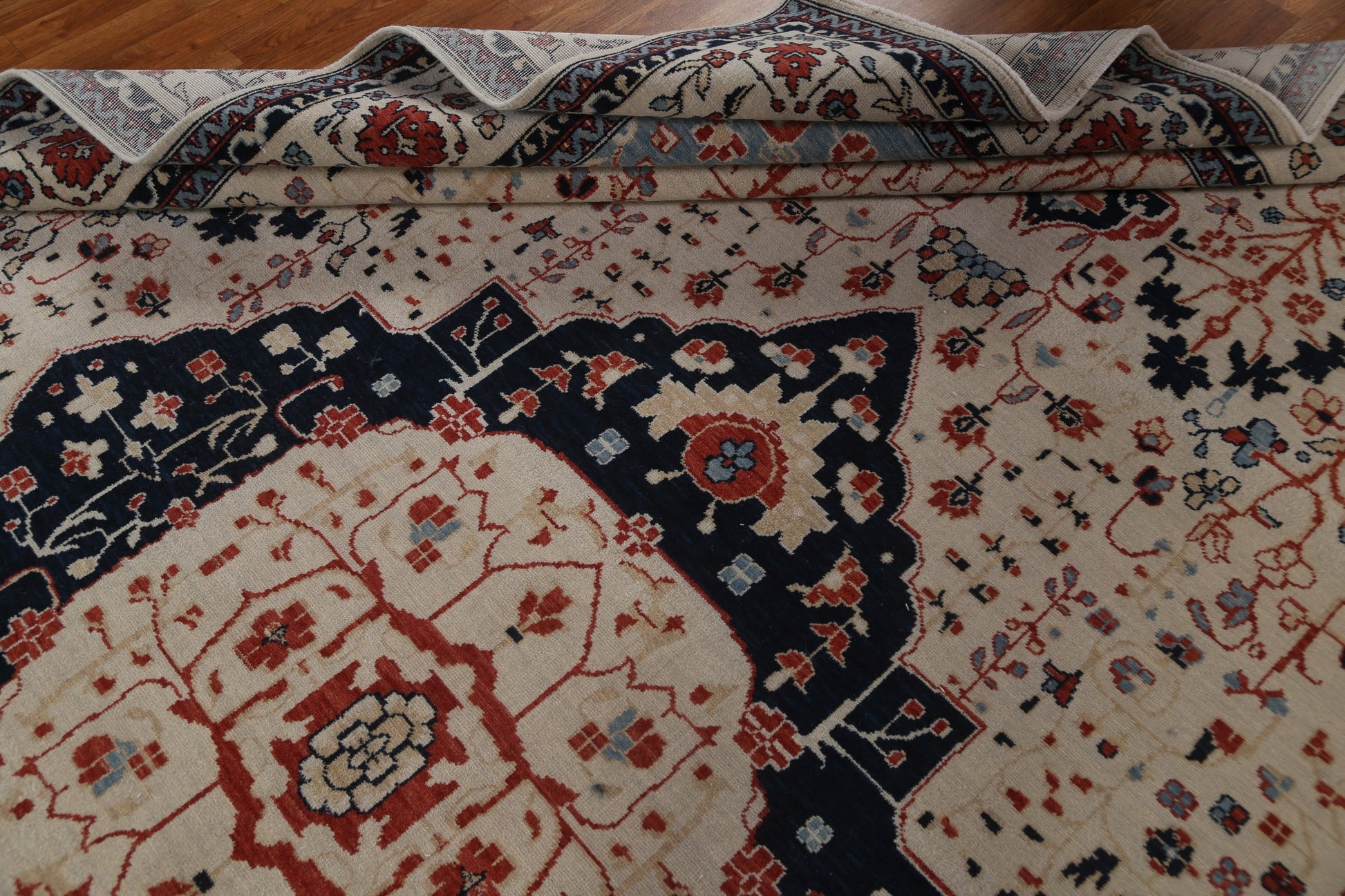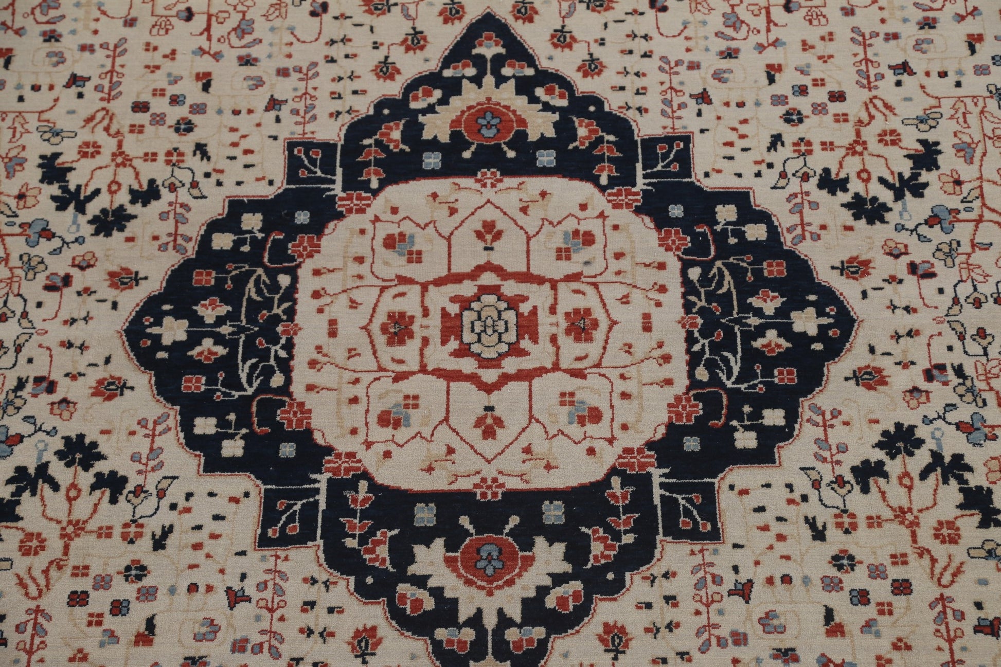 A Beautiful Genuine Turkey Kashan (Mohtasham) rug is Hand Knotted by skillful weavers in Turkey with 100% Wool Material. This rug is in New, First Quality condition. dimensions are 12' 9'' X 9' 10'' in foot and 389 X 300 in centimeter. the primary color is Beige & Ivories.
