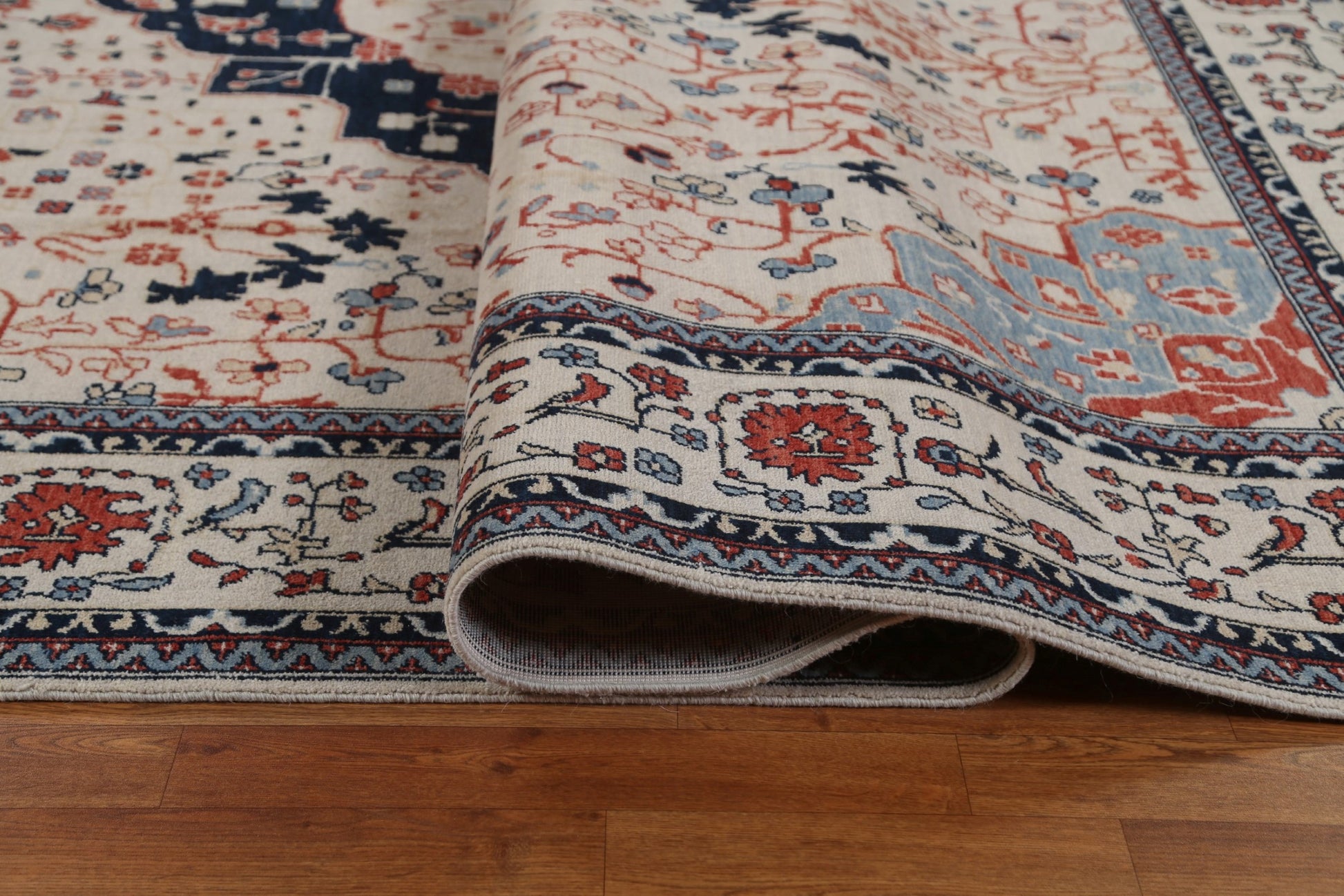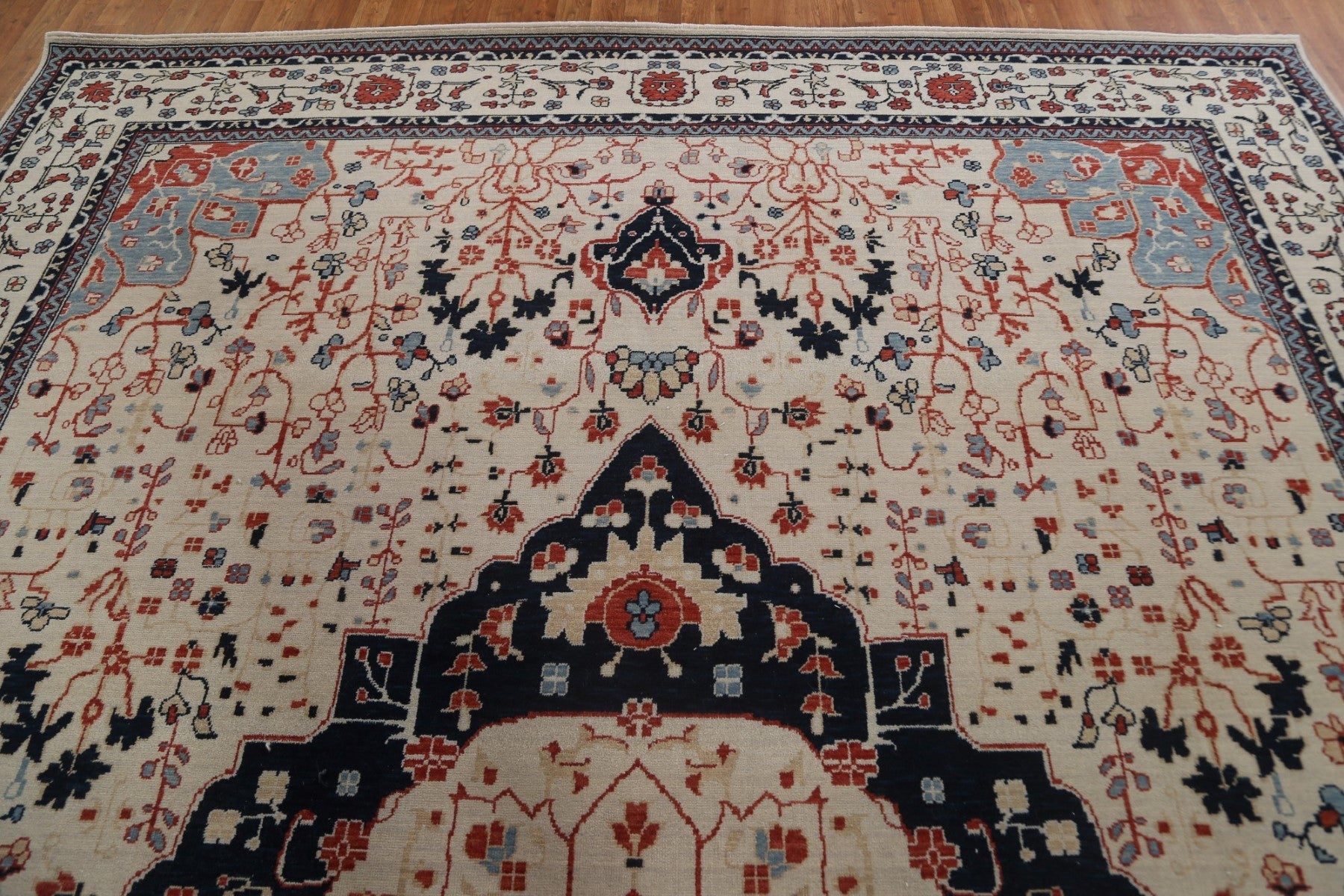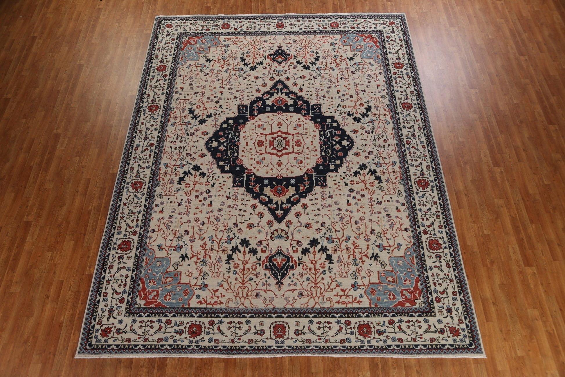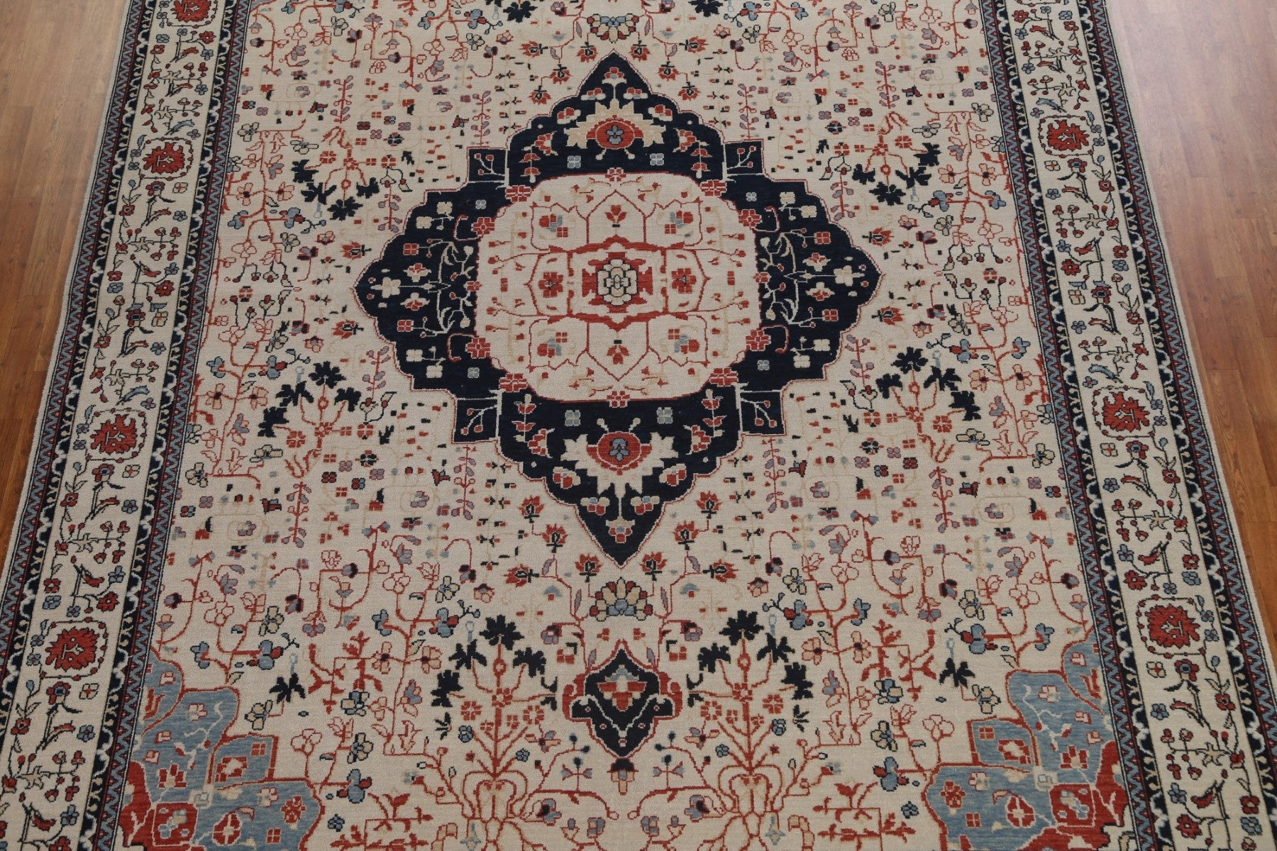 A Beautiful Genuine Turkey Kashan (Mohtasham) rug is Hand Knotted by skillful weavers in Turkey with 100% Wool Material. This rug is in New, First Quality condition. dimensions are 12' 9'' X 9' 10'' in foot and 389 X 300 in centimeter. the primary color is Beige & Ivories.