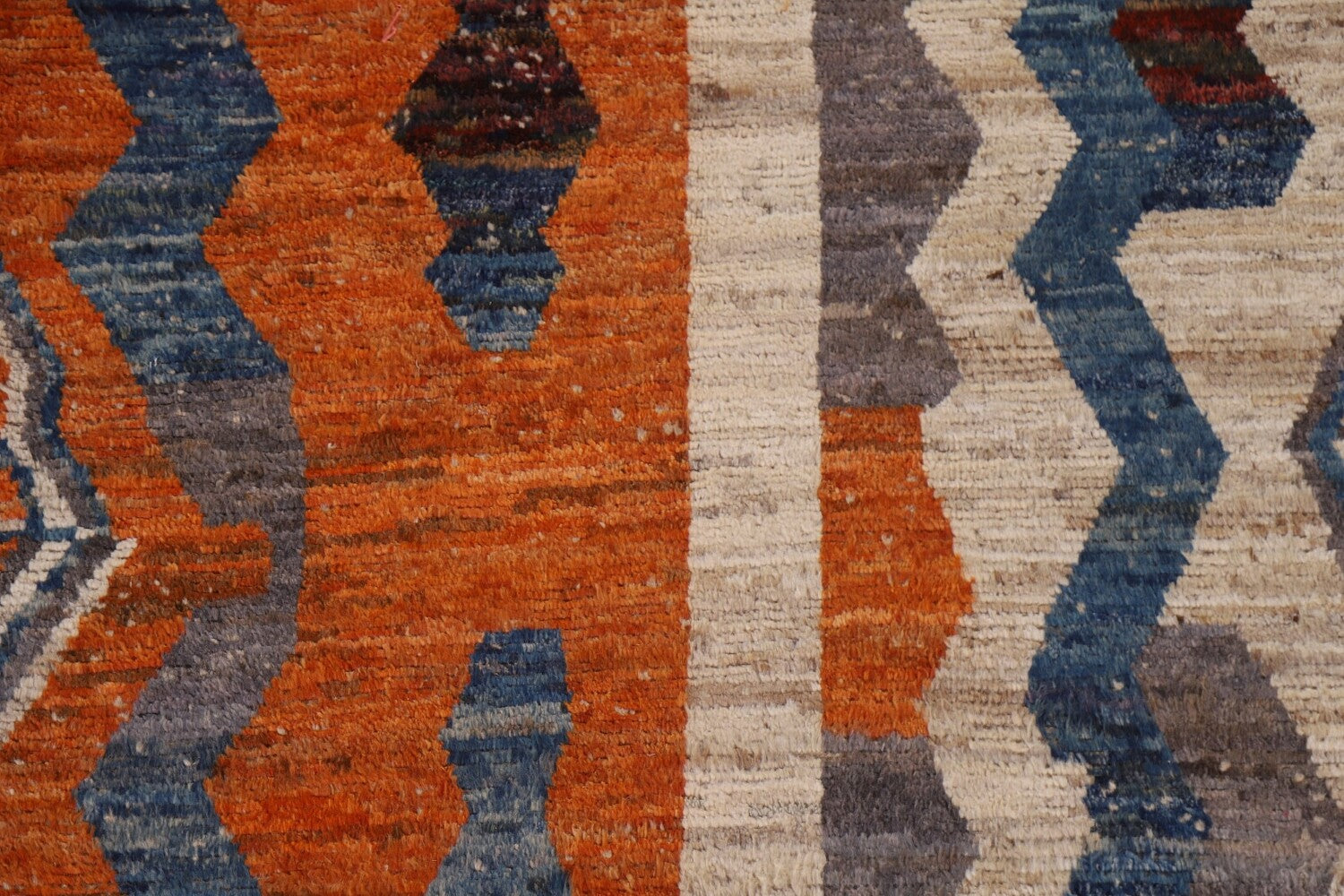 A Beautiful Genuine Pakistan Moroccan rug is Hand Knotted by skillful weavers in Pakistan with 100% Wool Material. This rug is in condition. dimensions are 8' 1'' X 5' 5'' in foot and 246 X 165 in centimeter. the primary color is Multi-Colored.