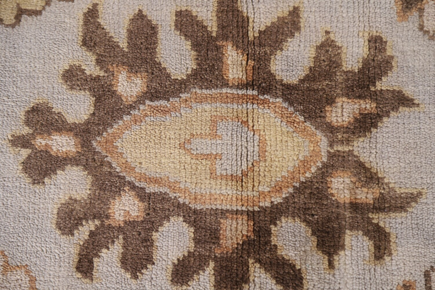 A Beautiful Genuine India Oushak rug is Hand Knotted by skillful weavers in India with 100% Wool Material. This rug is in New, First Quality condition. dimensions are 11' 10'' X 9' 0'' in foot and 361 X 274 in centimeter. the primary color is Greys & Charcoal.