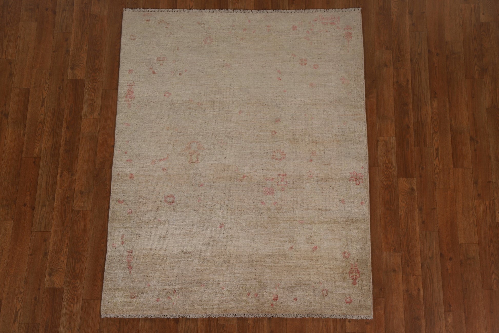 Hand-Knotted Oushak Turkish Area Rug 4x5
