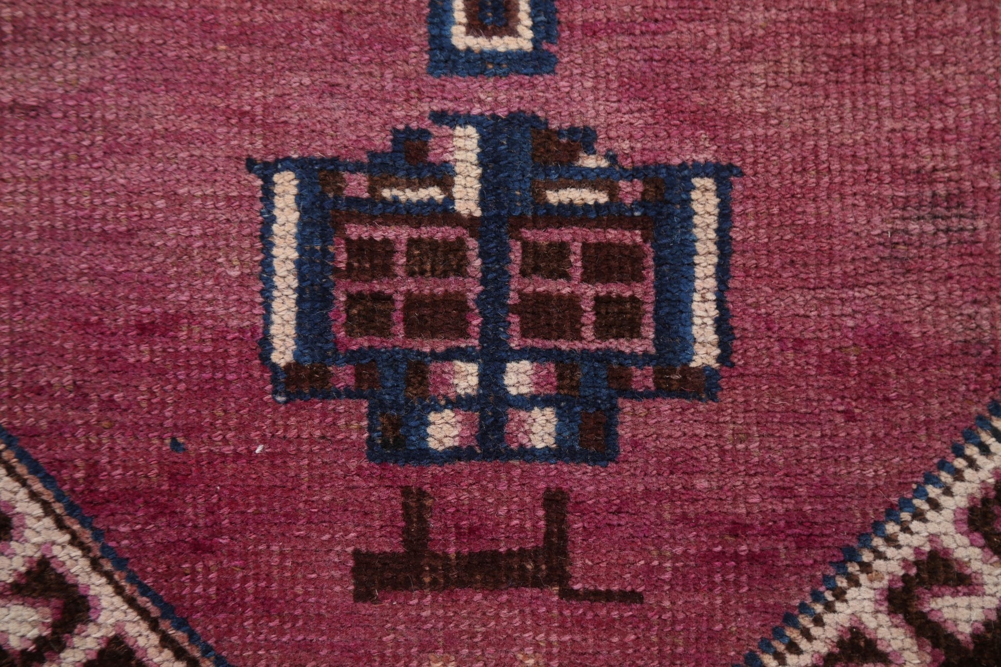 A Beautiful Genuine Persia ( Persia ) Qashqai rug is Hand Knotted by skillful weavers in Persia ( Persia ) with 100% Wool Material. This rug is in Very Good (Evenly Low Pile) condition. dimensions are 9' 1'' X 4' 4'' in foot and 277 X 132 in centimeter. the primary color is Purples.