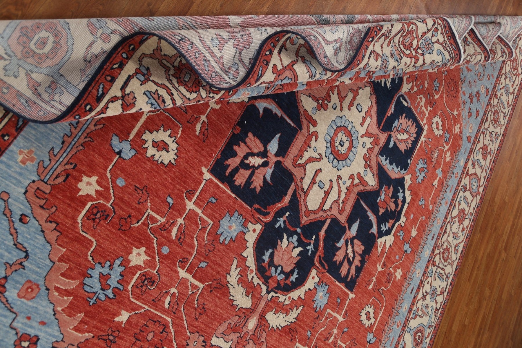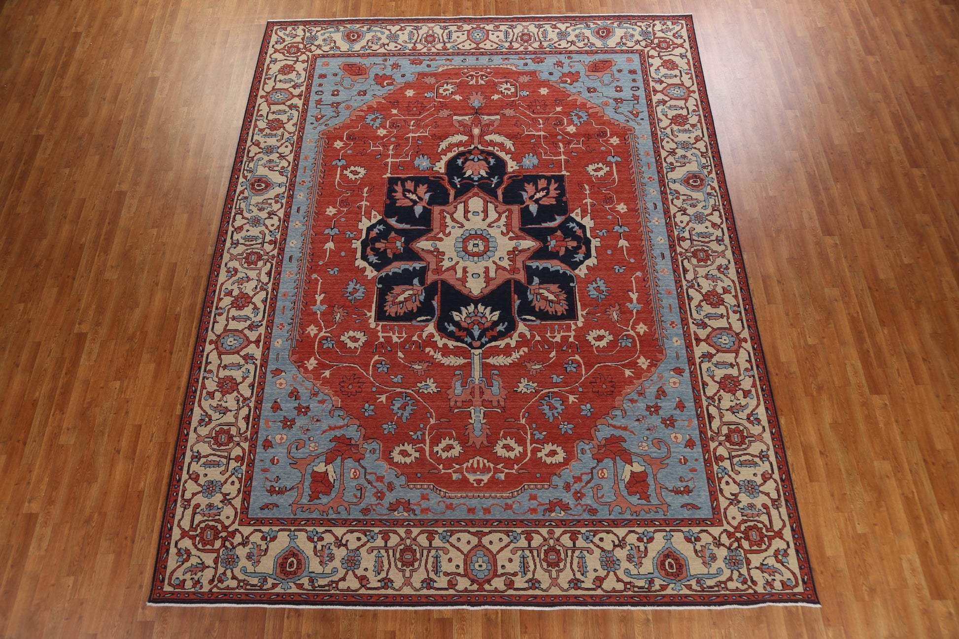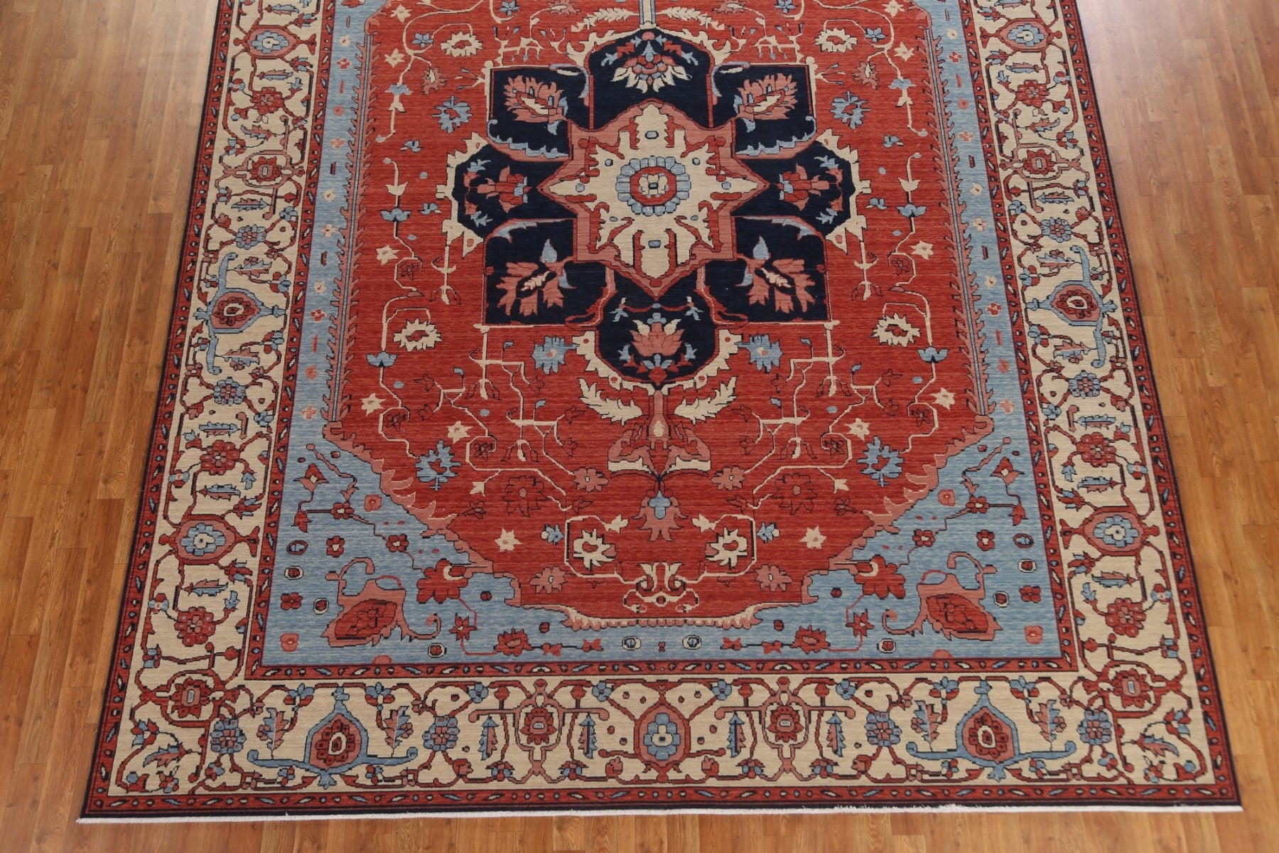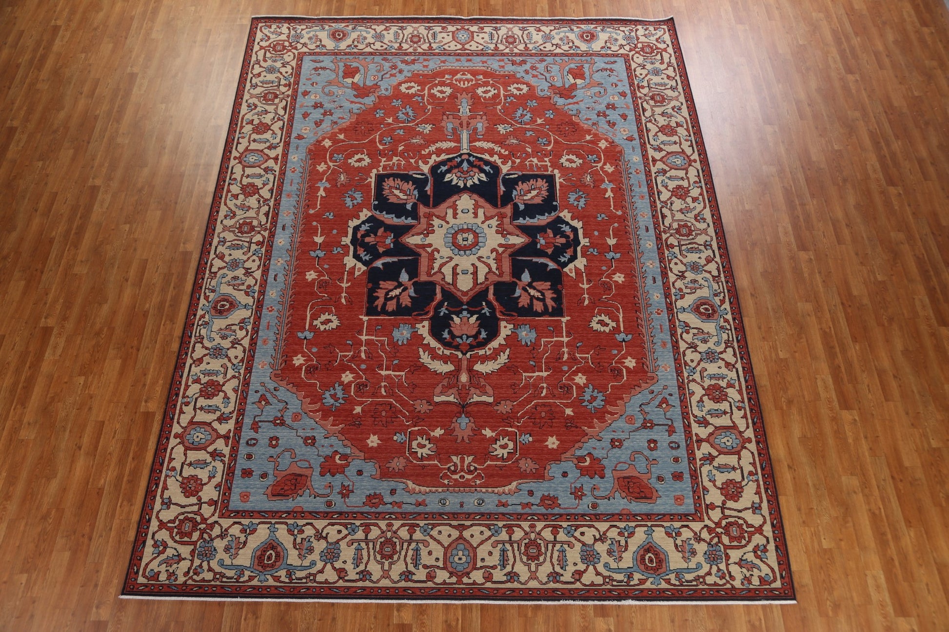 Hand-Knotted Red Heriz Serapi Oriental Wool Rug 10x13