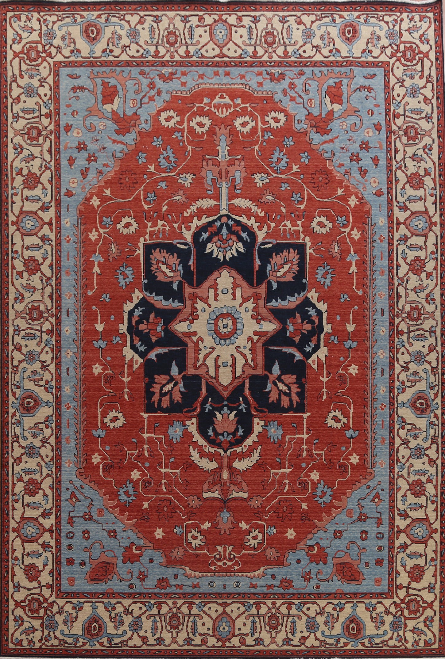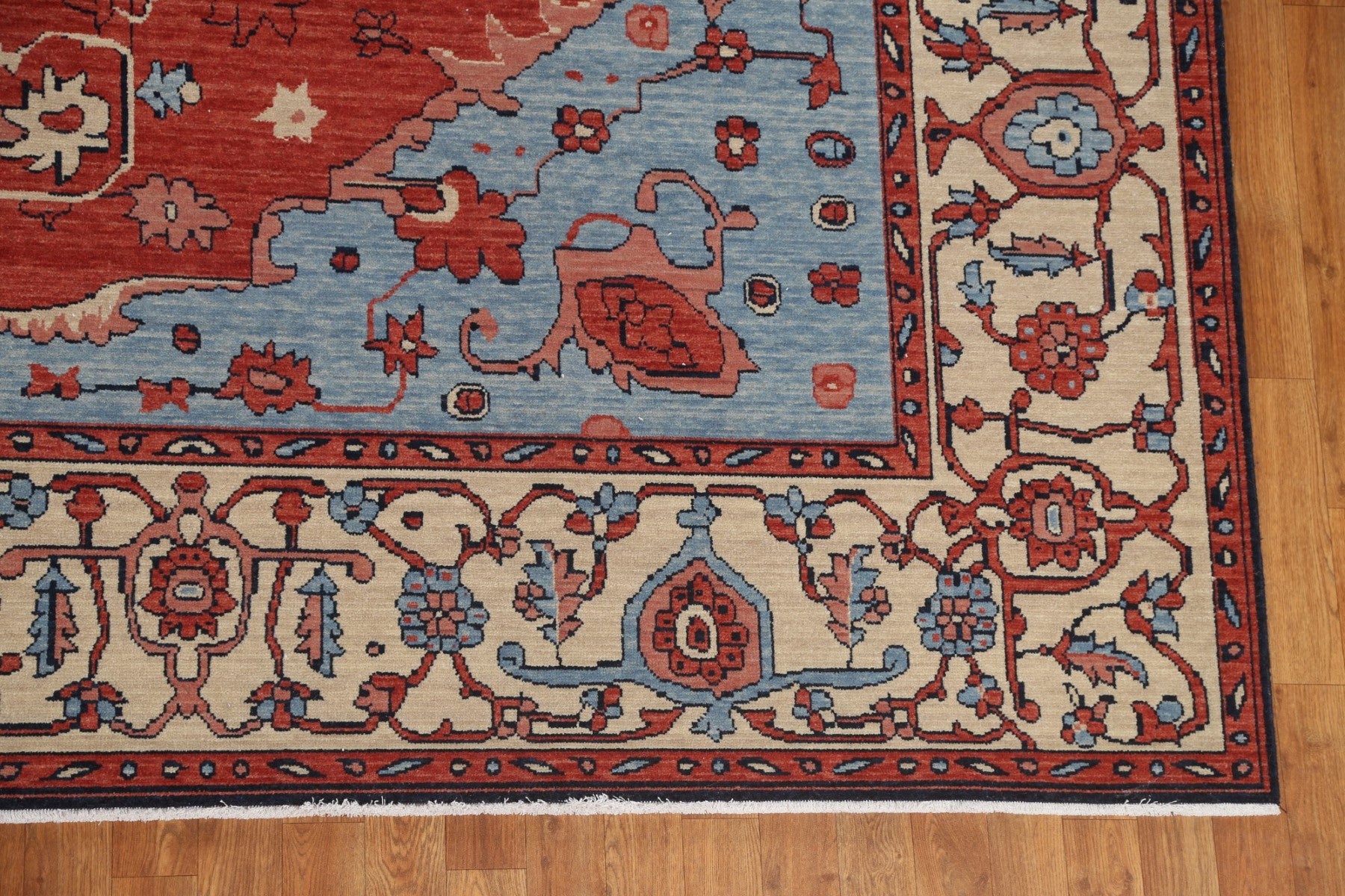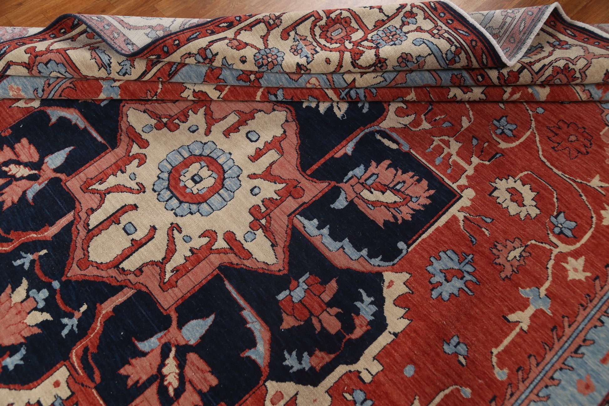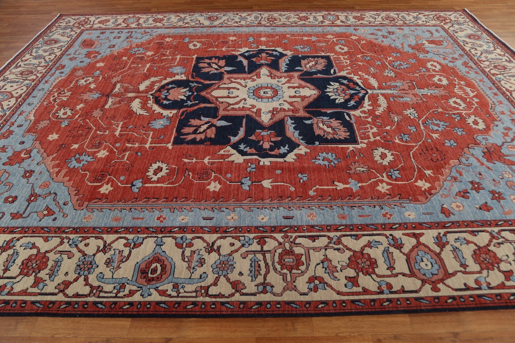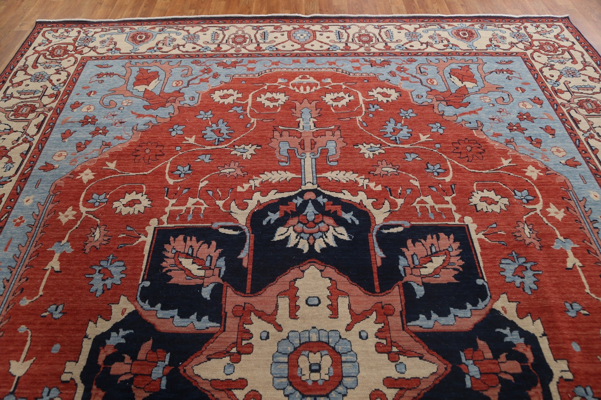 Hand-Knotted Red Heriz Serapi Oriental Wool Rug 10x13