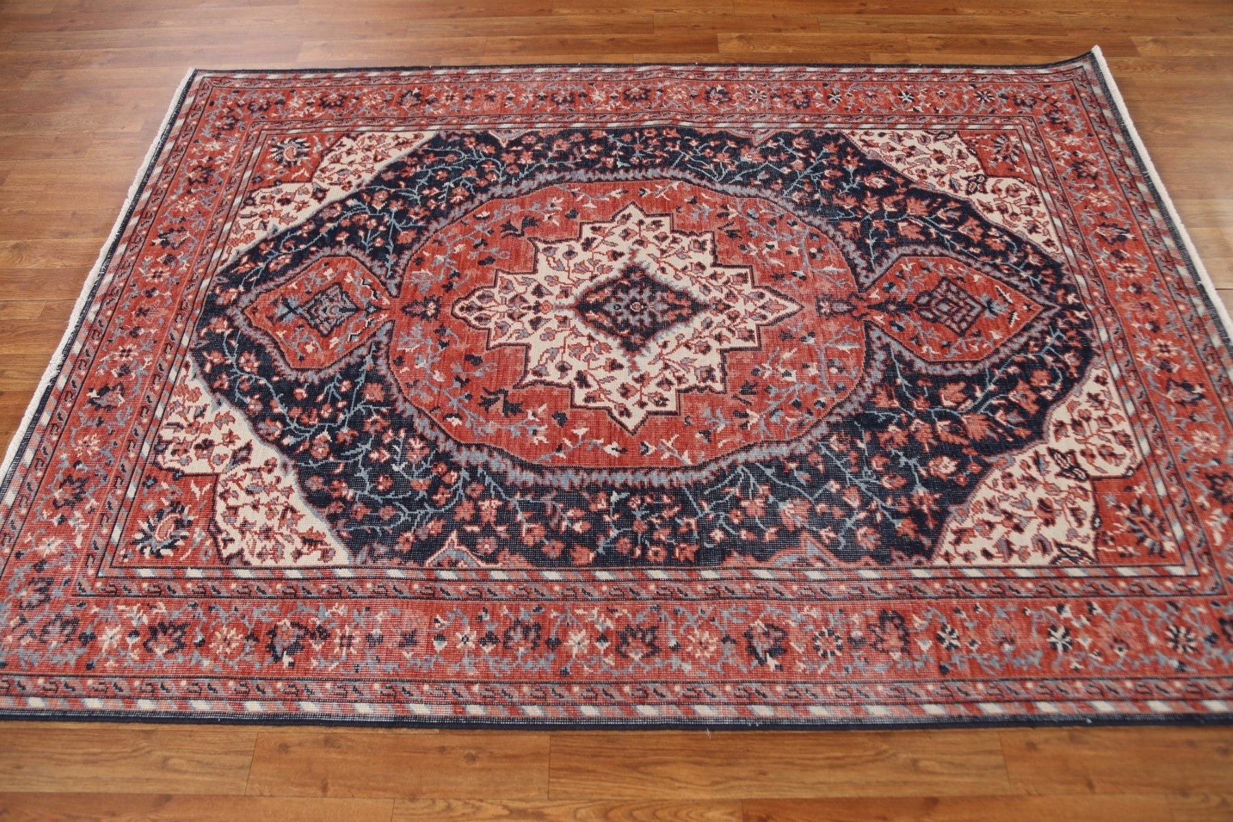 A Beautiful Genuine Turkey Sarouk (Farahan) rug is Hand Knotted by skillful weavers in Turkey with 100% Wool Material. This rug is in New, First Quality condition. dimensions are 6' 10'' X 5' 0'' in foot and 208 X 152 in centimeter. the primary color is Navy Blue & Blues.