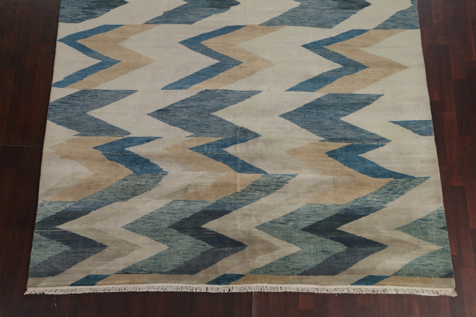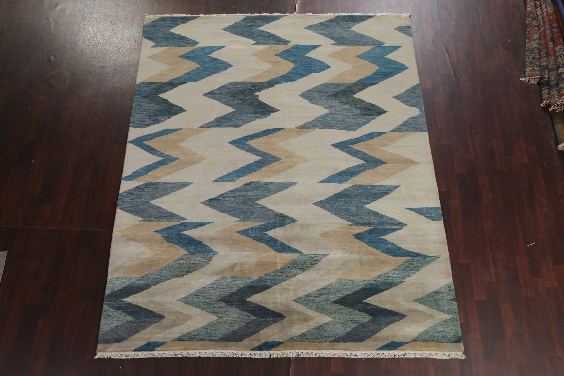 A Beautiful Genuine India Abstract rug is Hand Knotted by skillful weavers in India with 100% Wool Material. This rug is in New, First Quality condition. dimensions are 9' 11'' X 8' 0'' in foot and 302 X 244 in centimeter. the primary color is Multi-Colored.