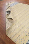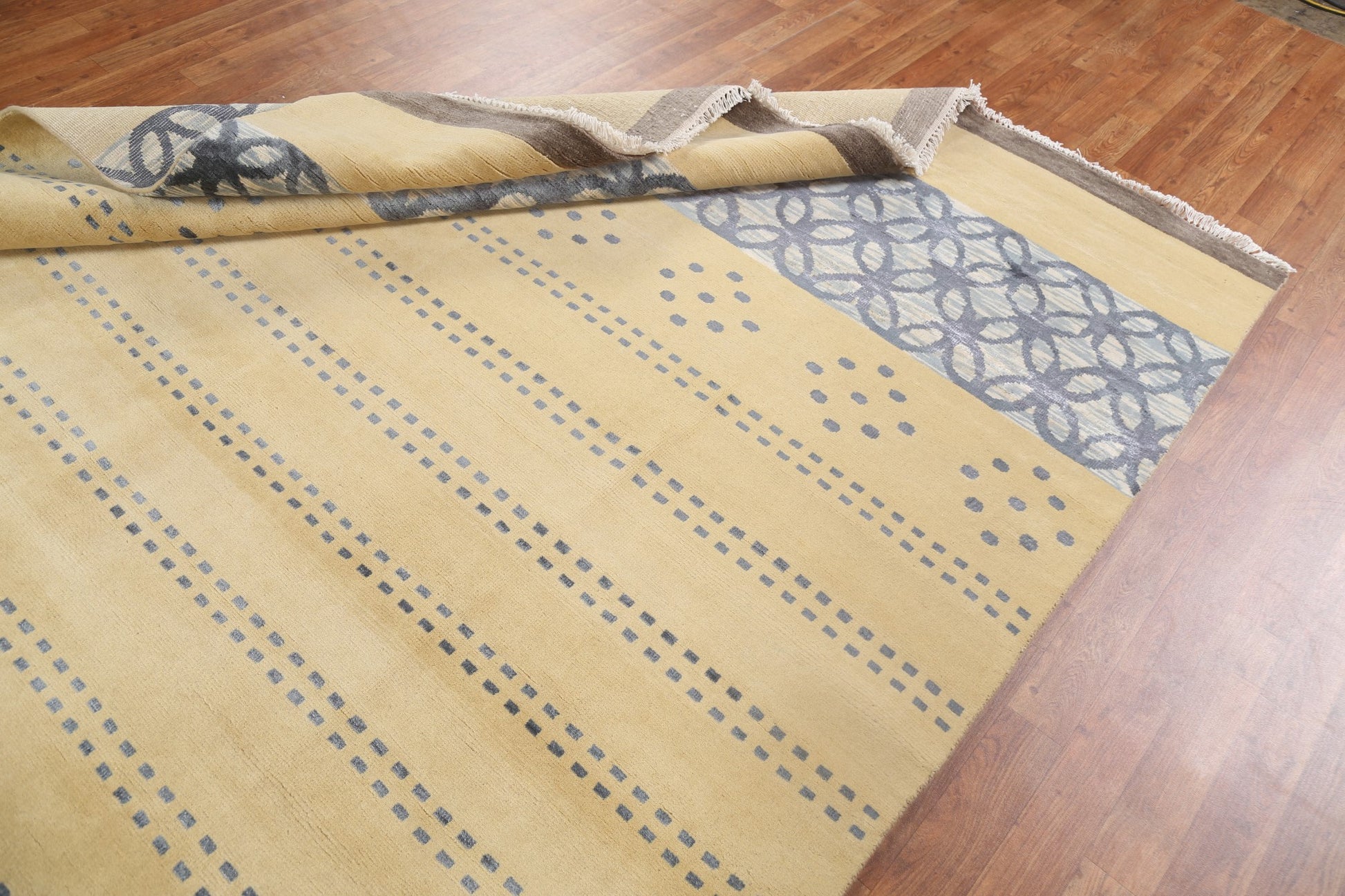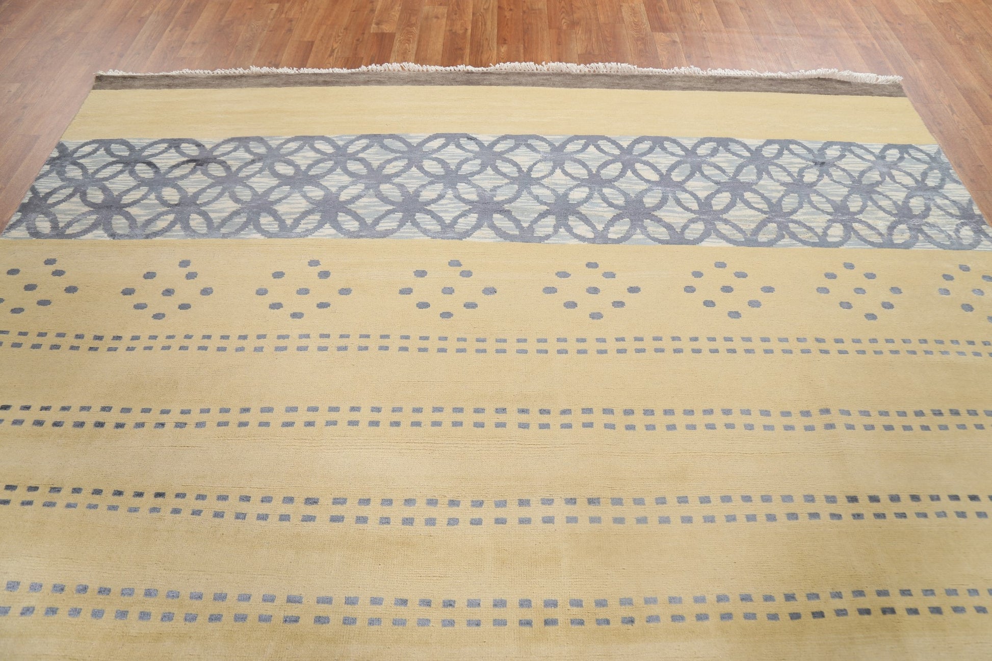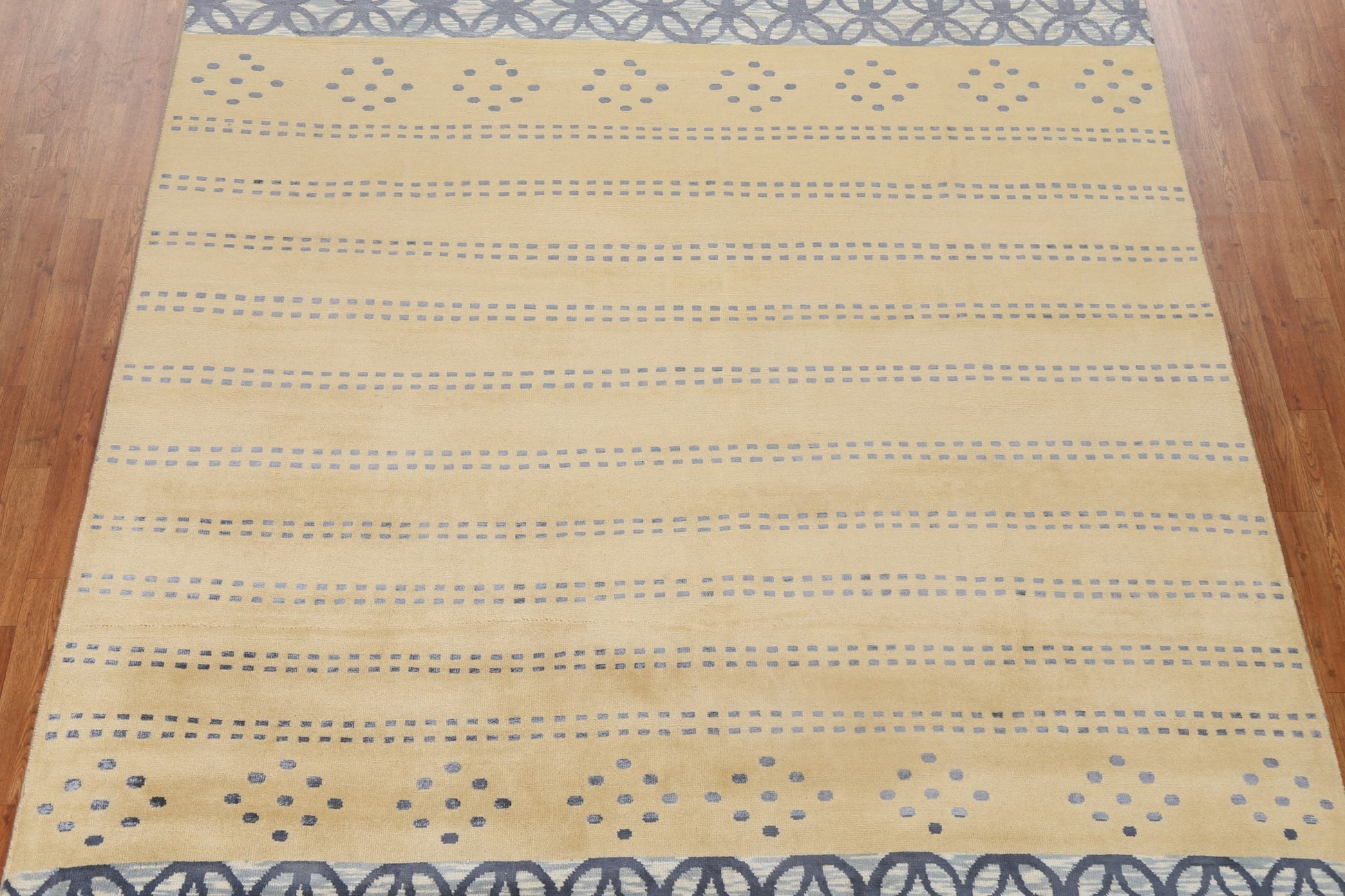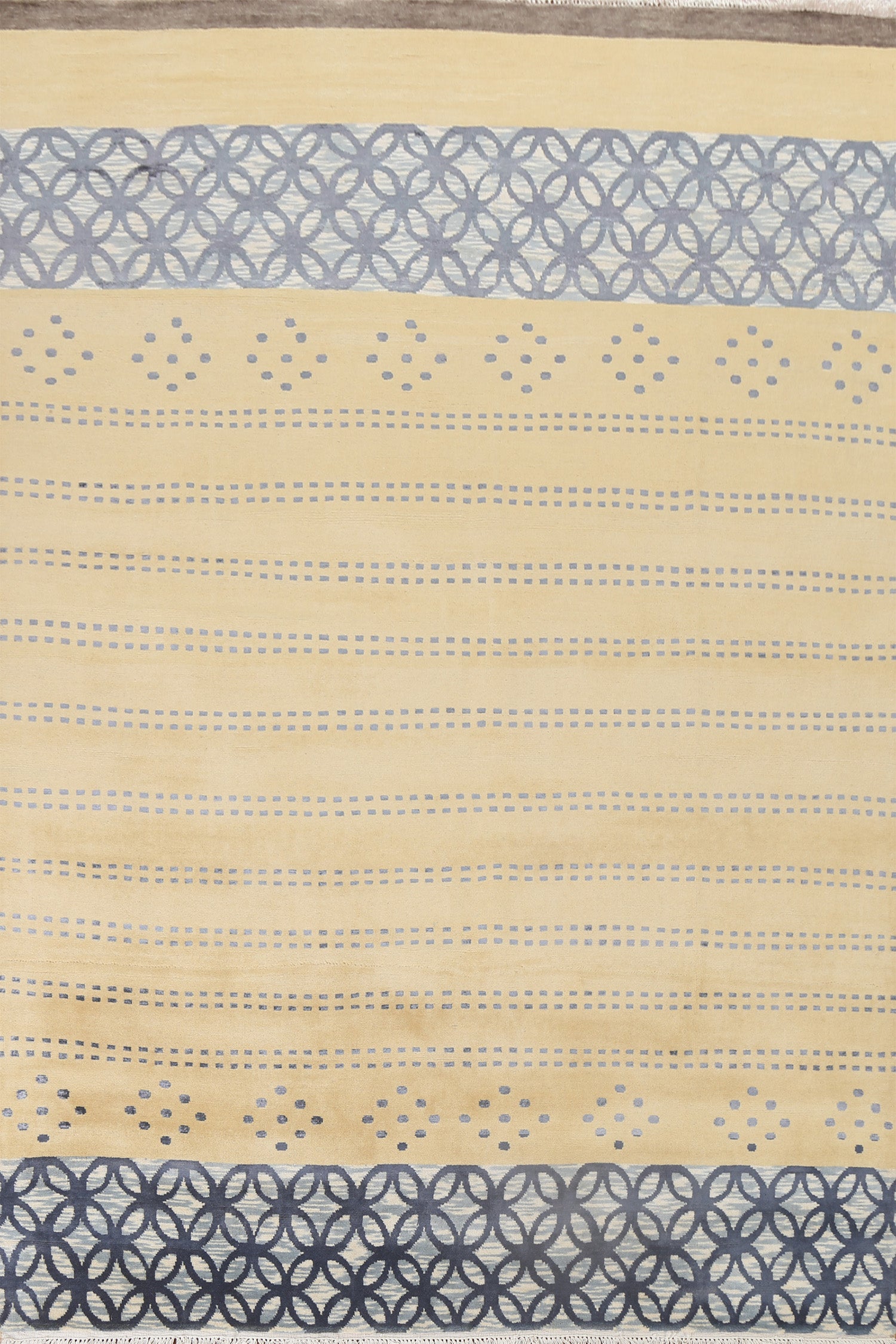 A Beautiful Genuine India Abstract rug is Hand Knotted by skillful weavers in India with 100% Wool Material. This rug is in New, First Quality condition. dimensions are 10' 4'' X 7' 10'' in foot and 315 X 239 in centimeter. the primary color is Yellow & Gold.