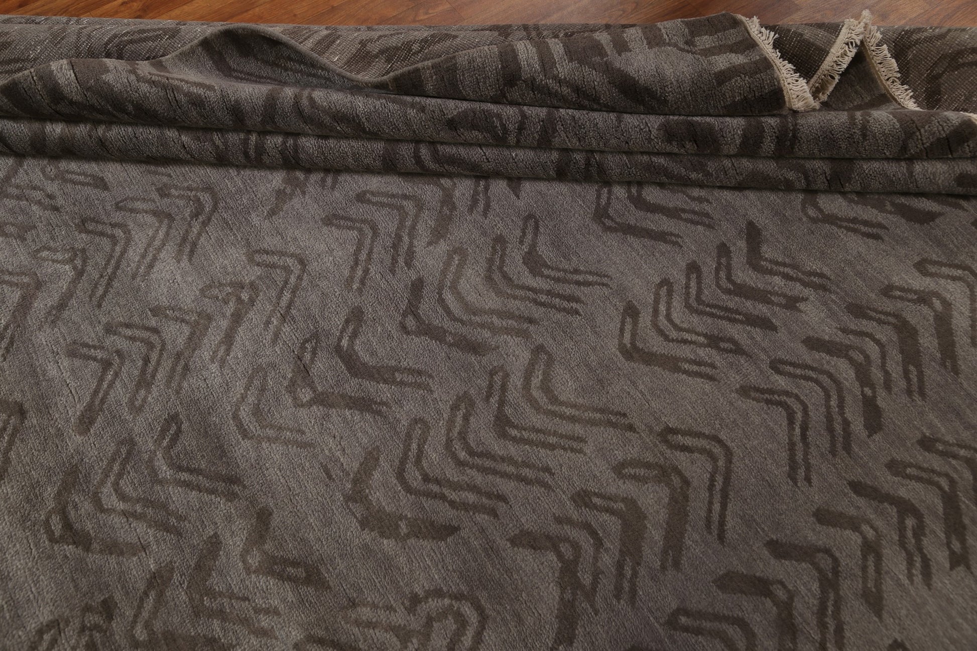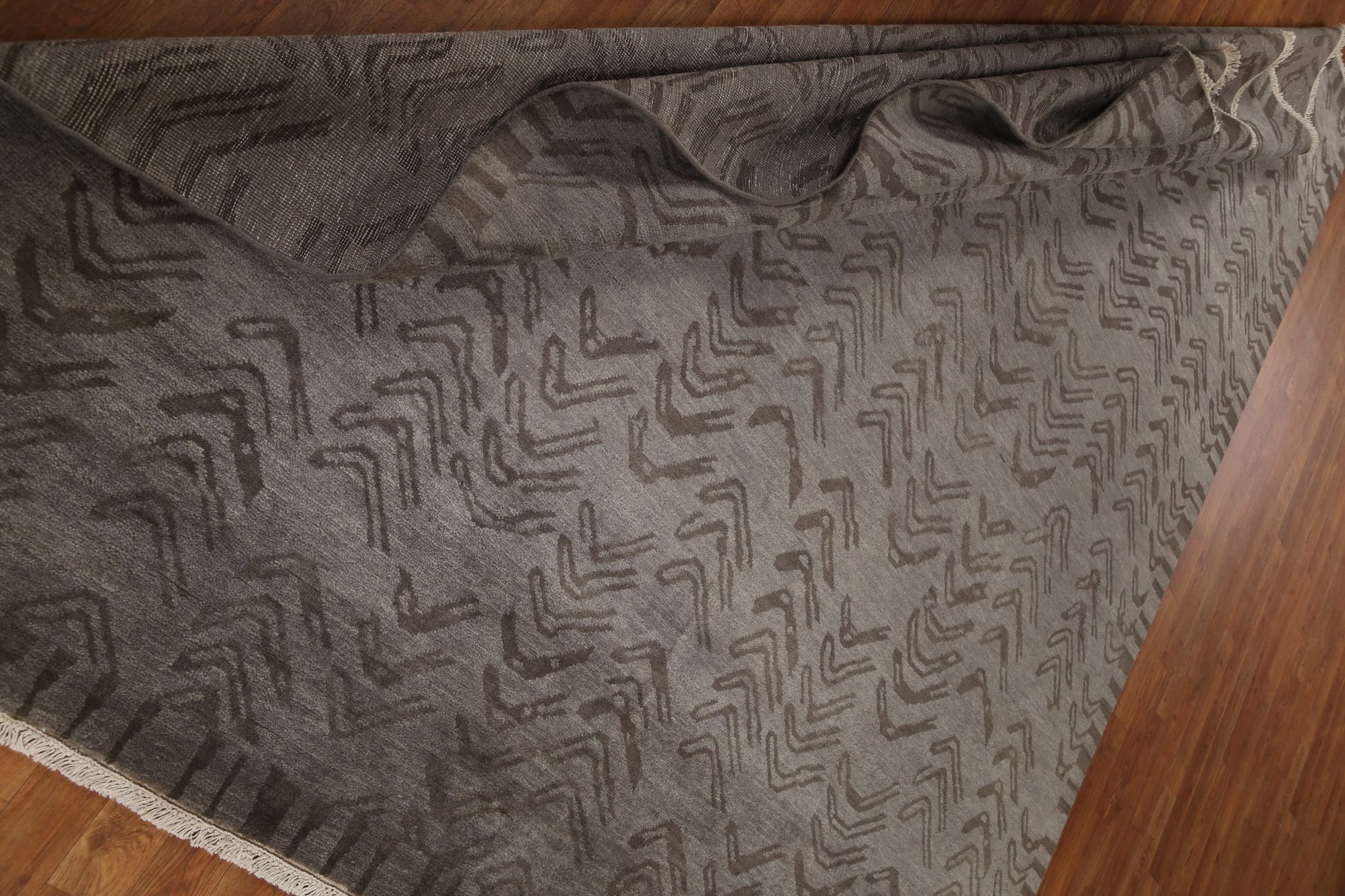 A Beautiful Genuine India Abstract rug is Hand Knotted by skillful weavers in India with 100% Wool Material. This rug is in New, First Quality condition. dimensions are 10' 0'' X 8' 0'' in foot and 305 X 244 in centimeter. the primary color is Brown.