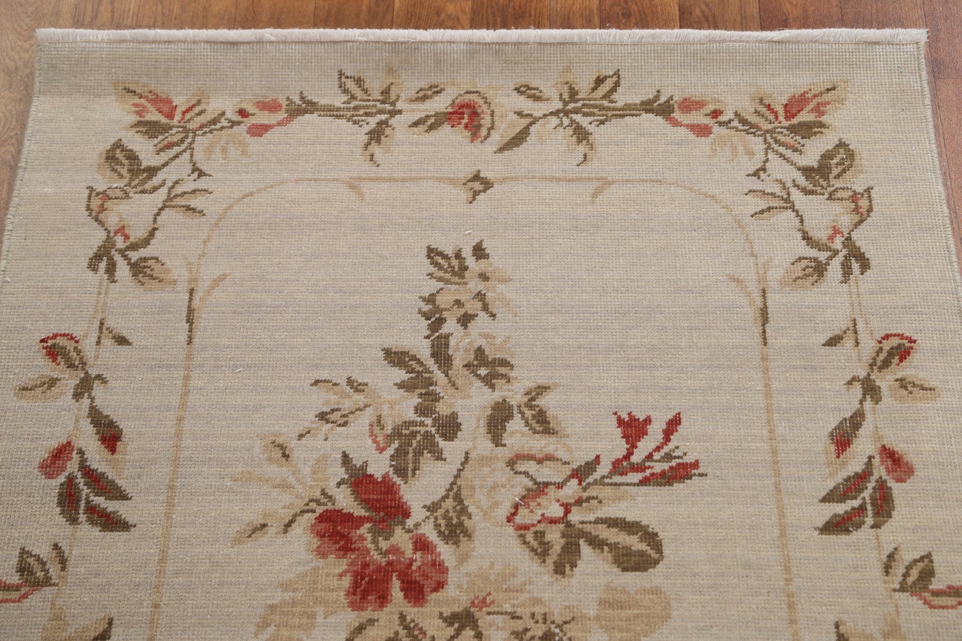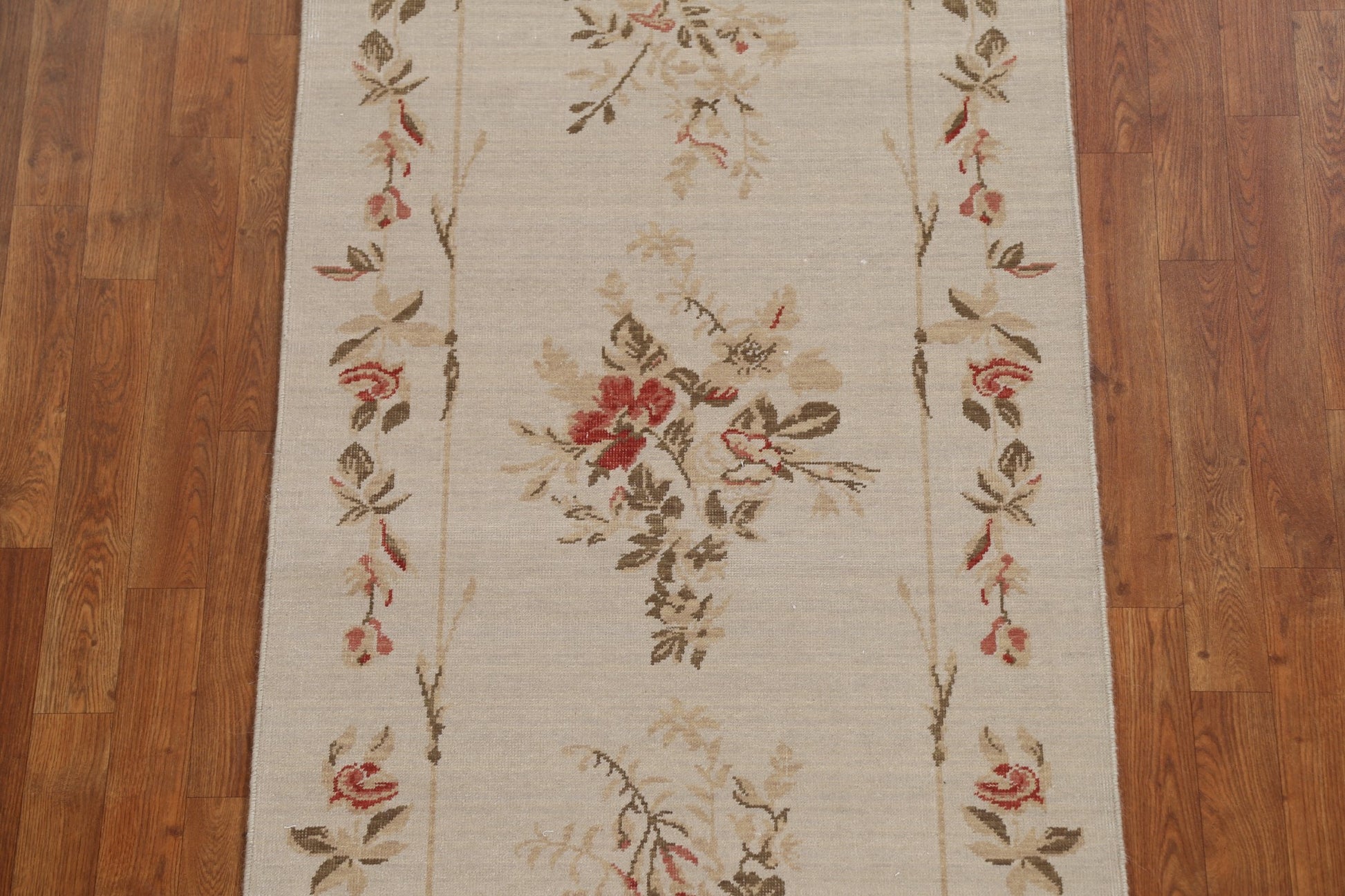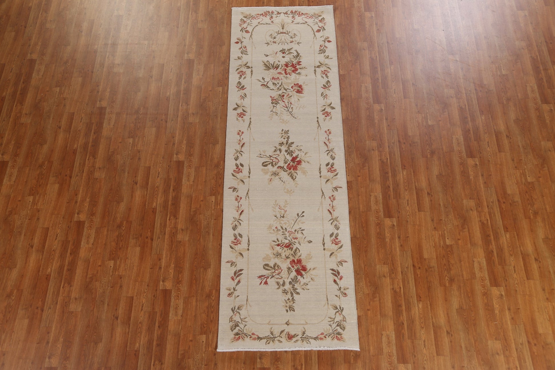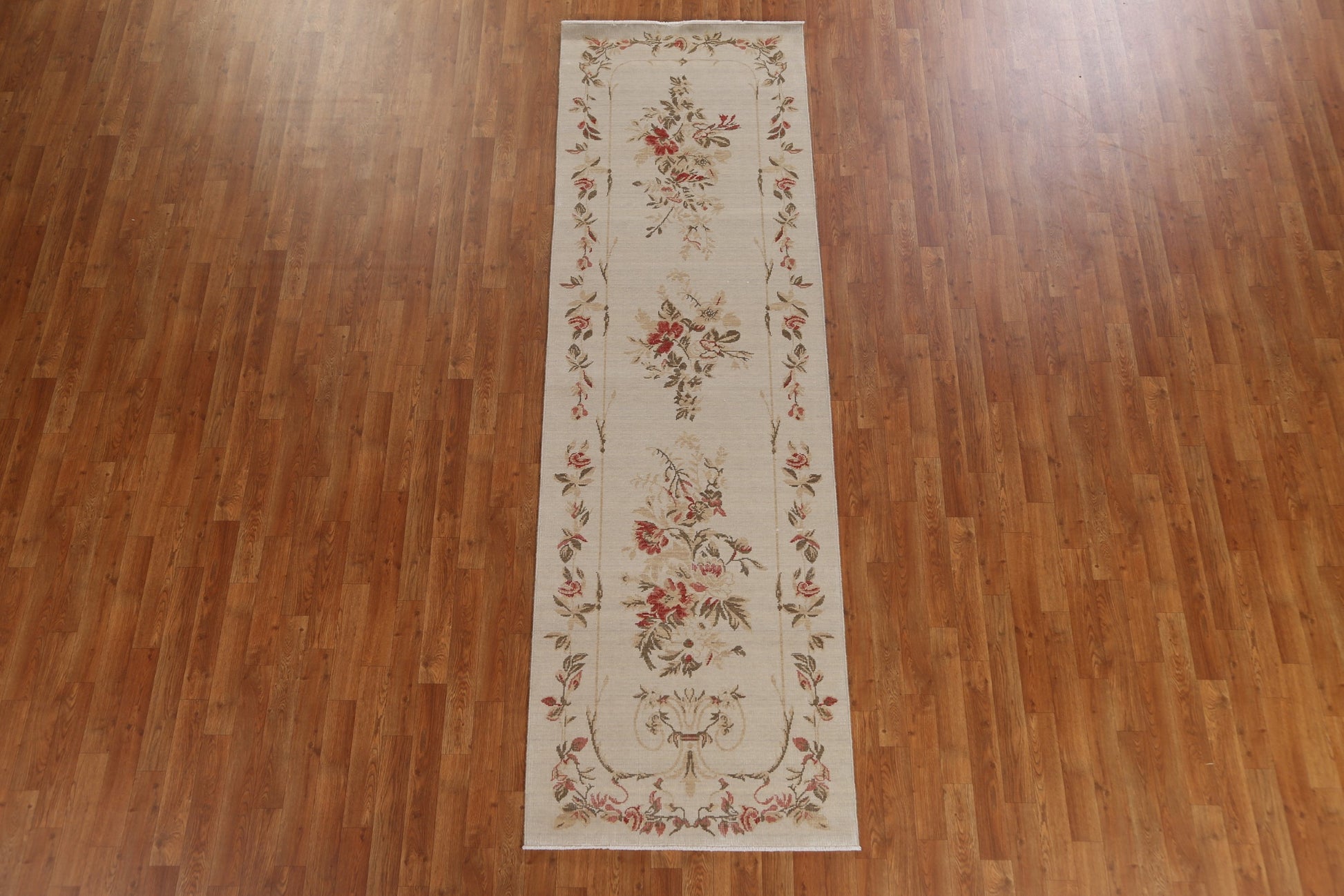 Hand-Knotted Wool Aubusson Turkish Runner Rug 3x10