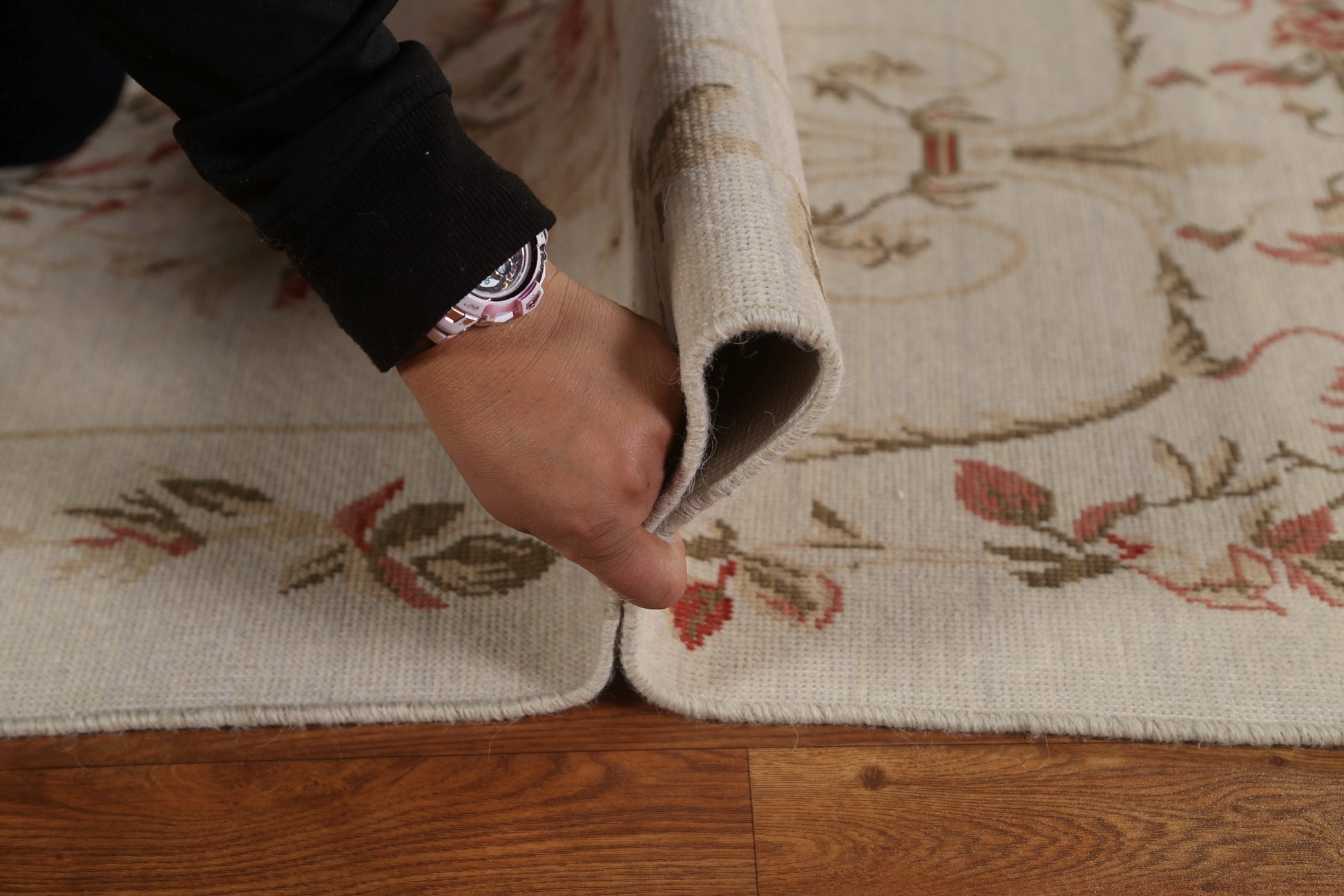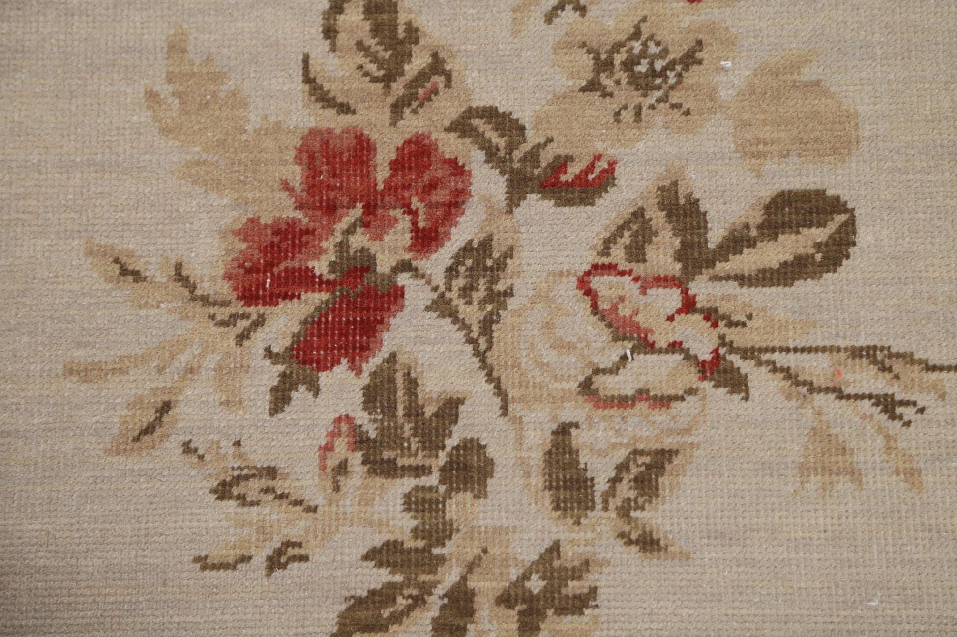 A Beautiful Genuine Turkey Aubusson rug is Hand Knotted by skillful weavers in Turkey with 100% Wool Material. This rug is in New, First Quality condition. dimensions are 9' 9'' X 2' 11'' in foot and 297 X 89 in centimeter. the primary color is Beige & Ivories.