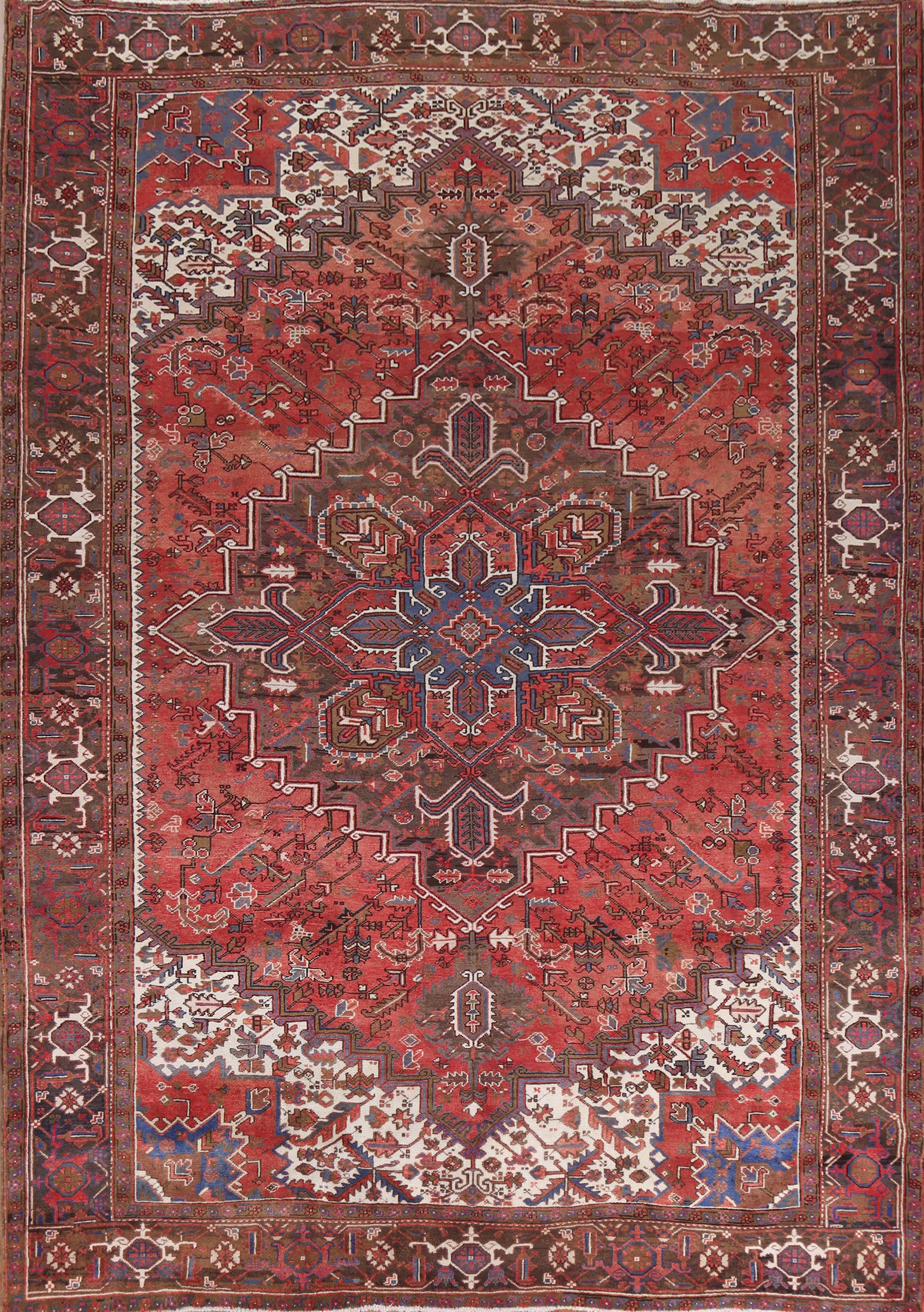 Hand-Knotted Wool Heriz Persian Area Rug 10x12
