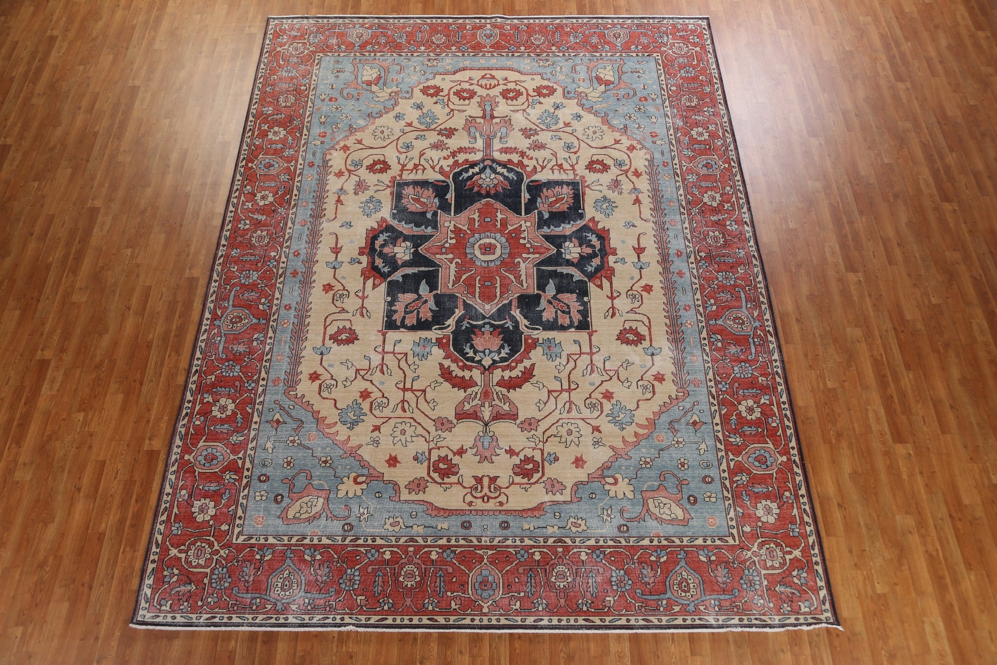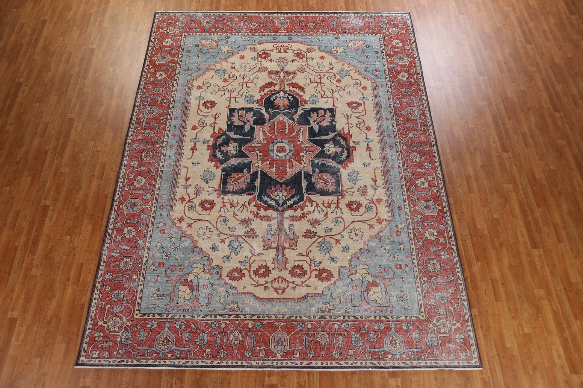Hand-Knotted Wool Heriz Serapi Oriental Area Rug 10x13