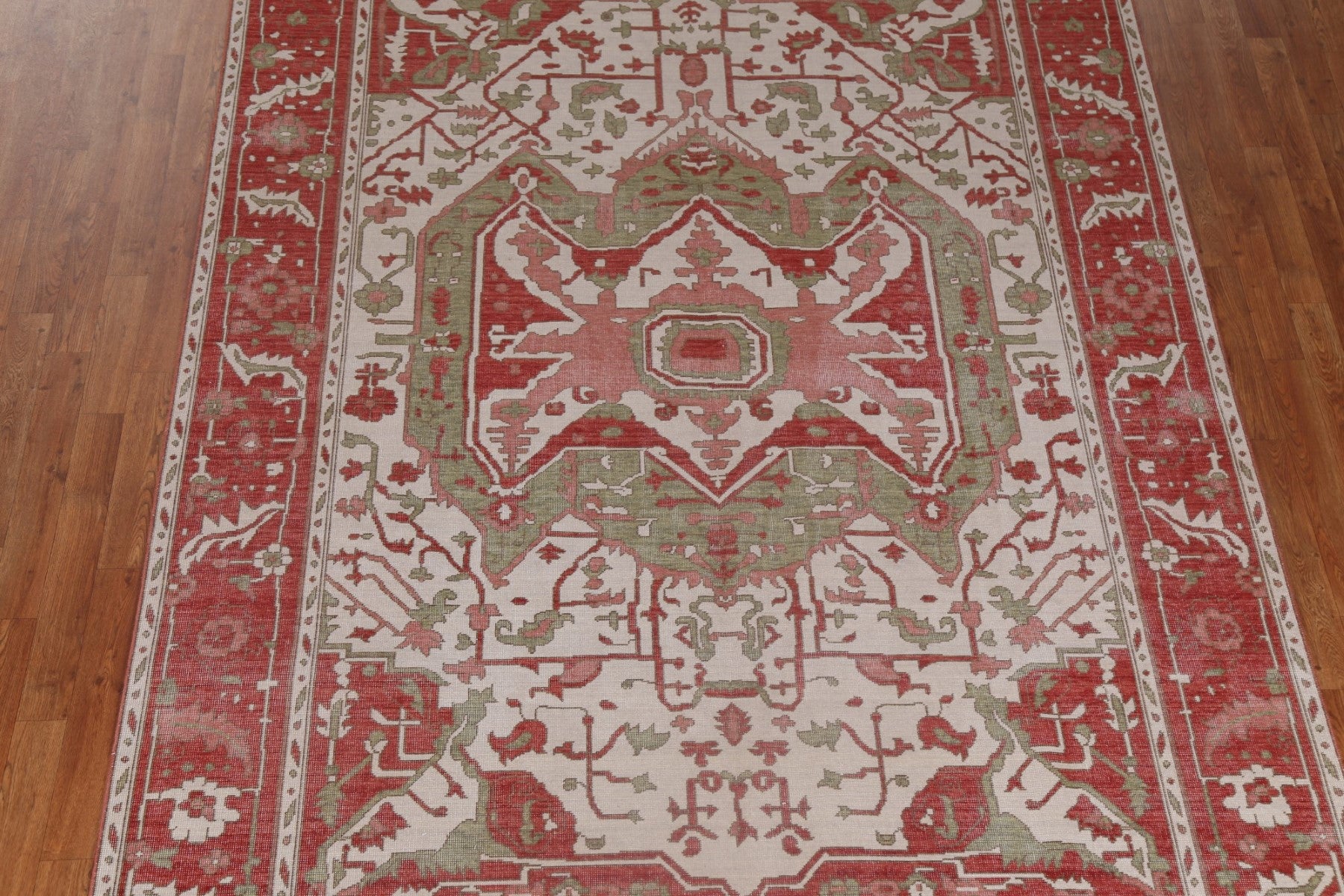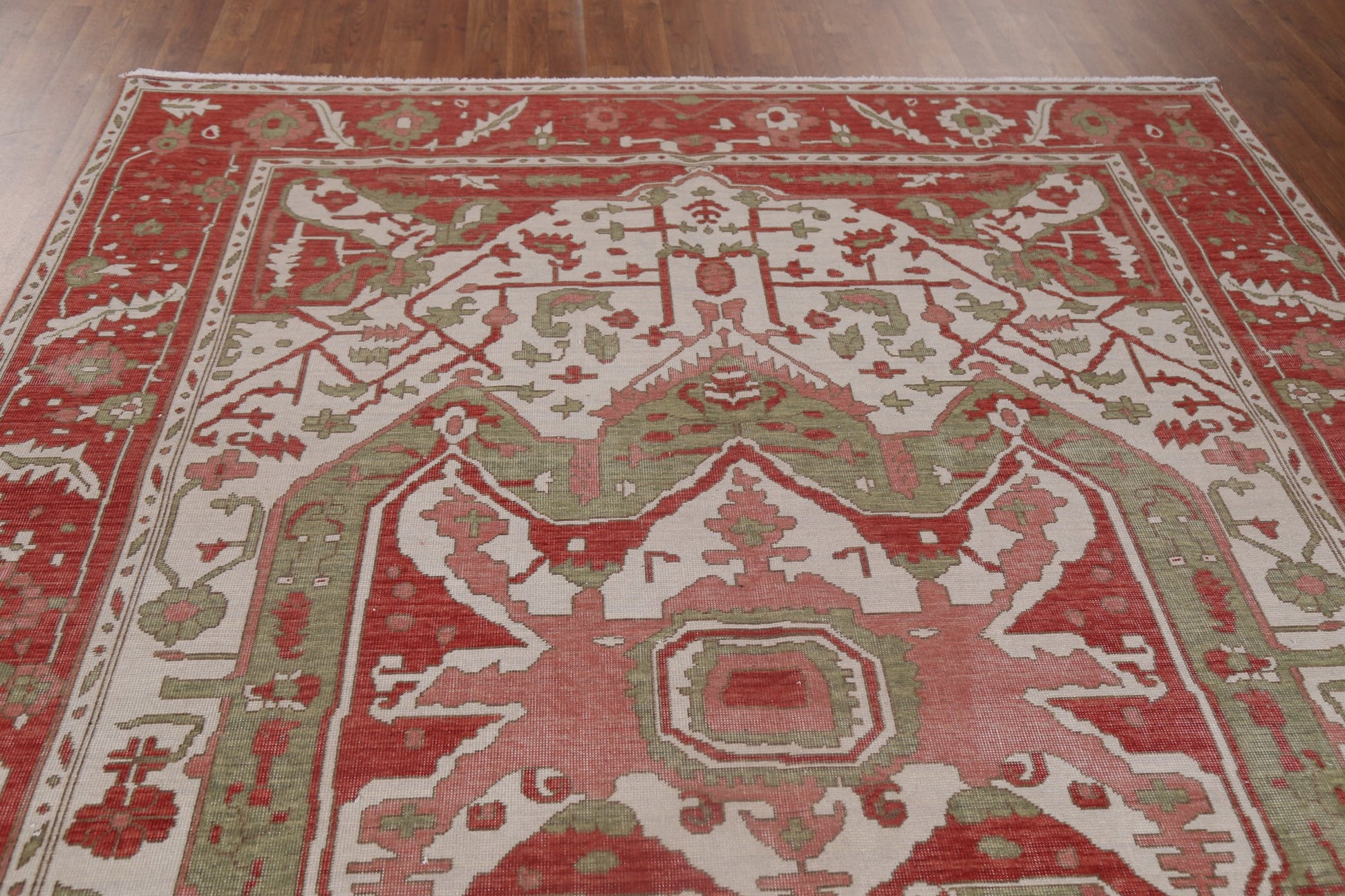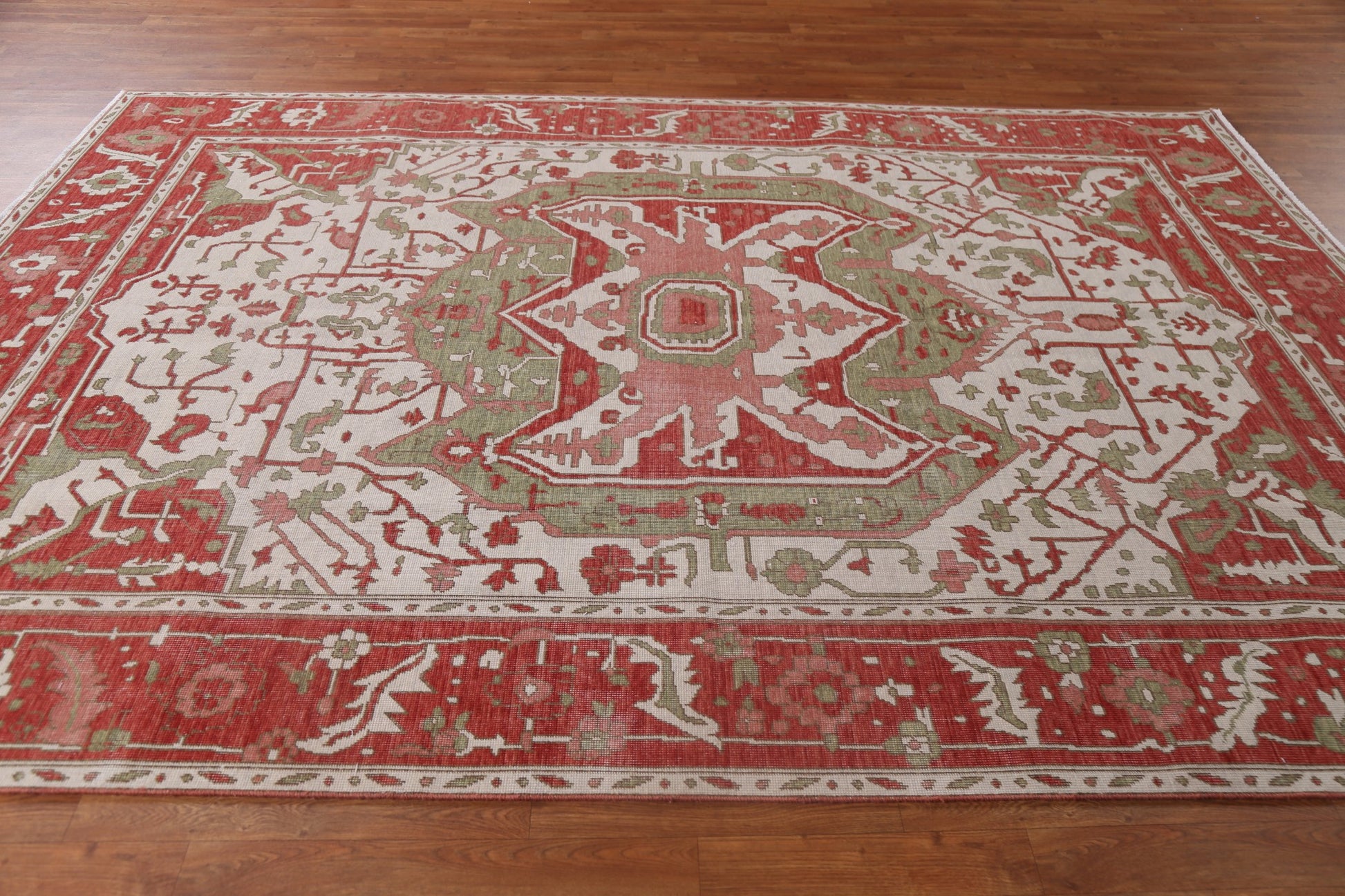 A Beautiful Genuine Turkey Heriz (serapi) rug is Hand Knotted by skillful weavers in Turkey with 100% Wool Material. This rug is in New, First Quality condition. dimensions are 9' 9'' X 7' 0'' in foot and 297 X 213 in centimeter. the primary color is Beige & Ivories.