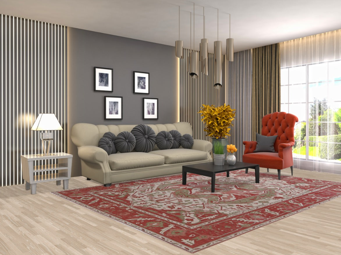 Hand-Knotted Wool Heriz Serapi Turkish Rug 7x10