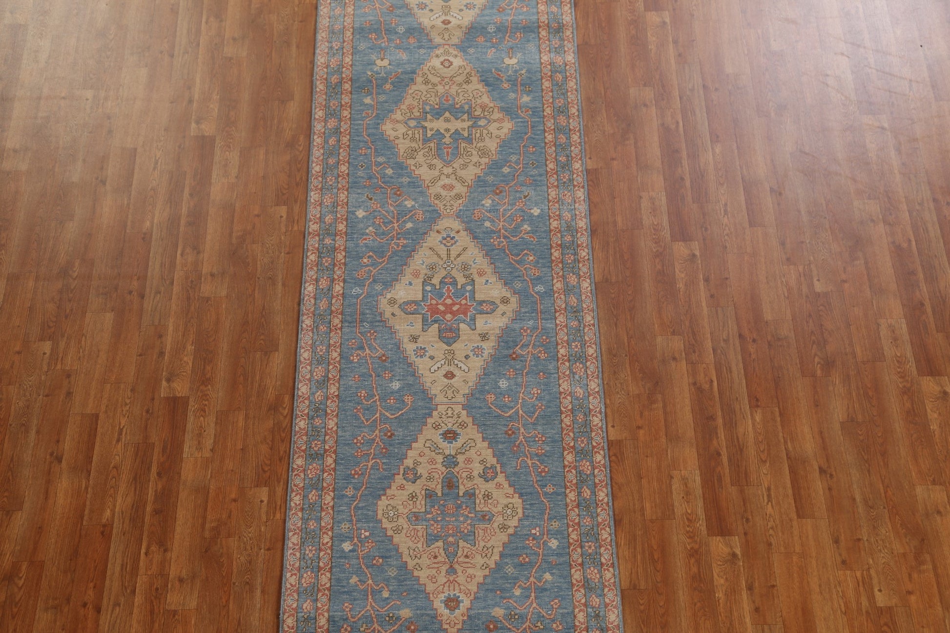 Hand-Knotted Wool Heriz Serapi Turkish Runner Rug 3x12