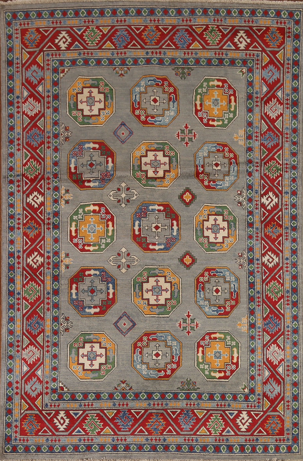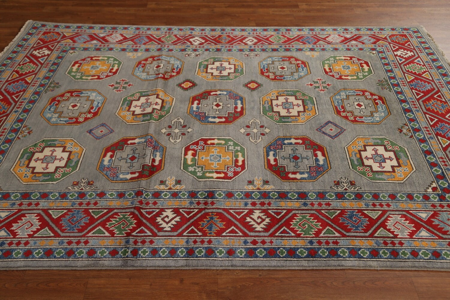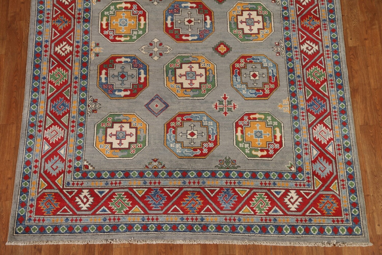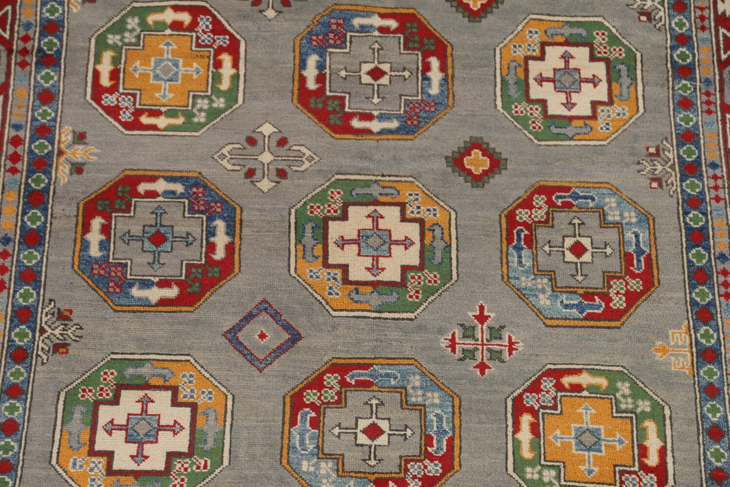 Hand-Knotted Wool Kazak Geometric Area Rug 6x8
