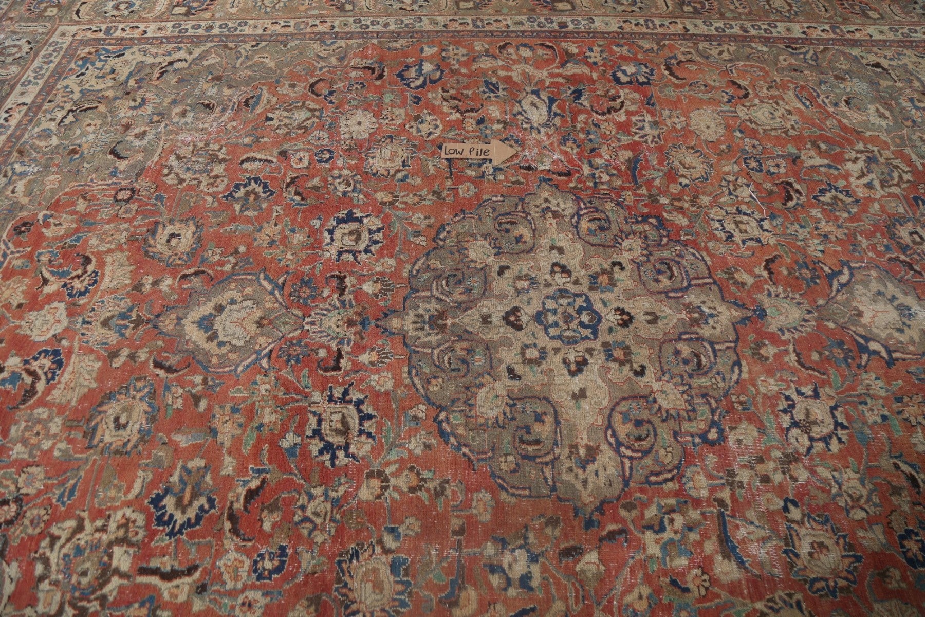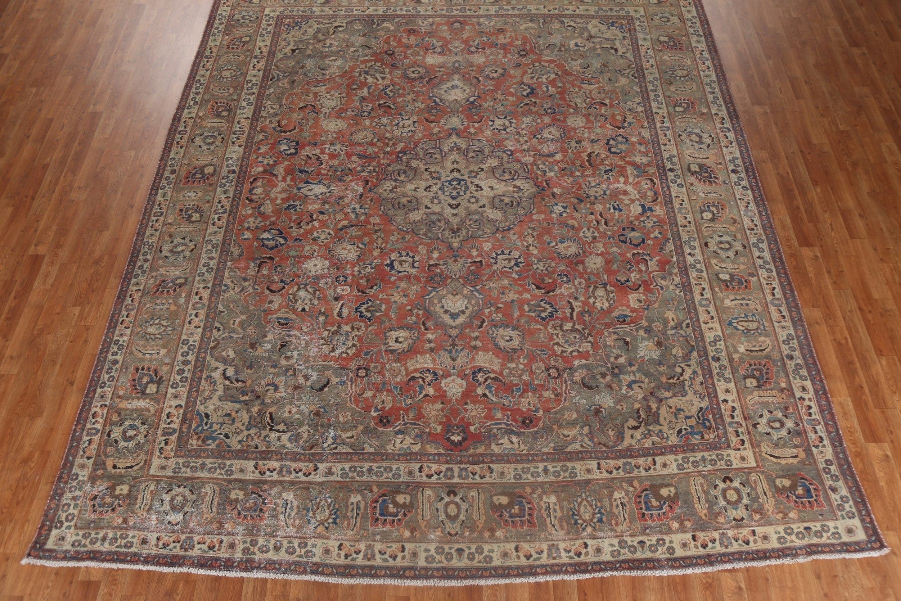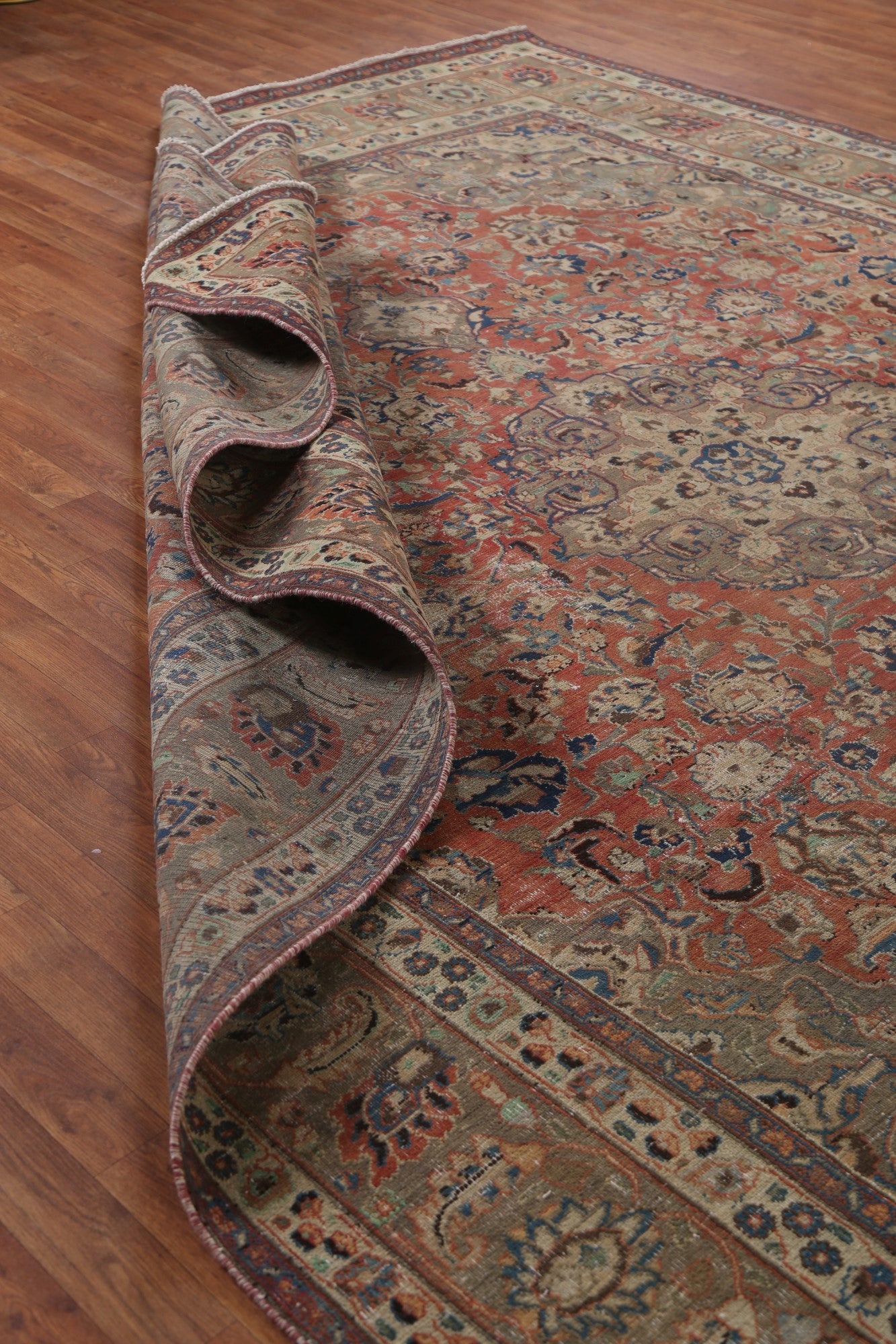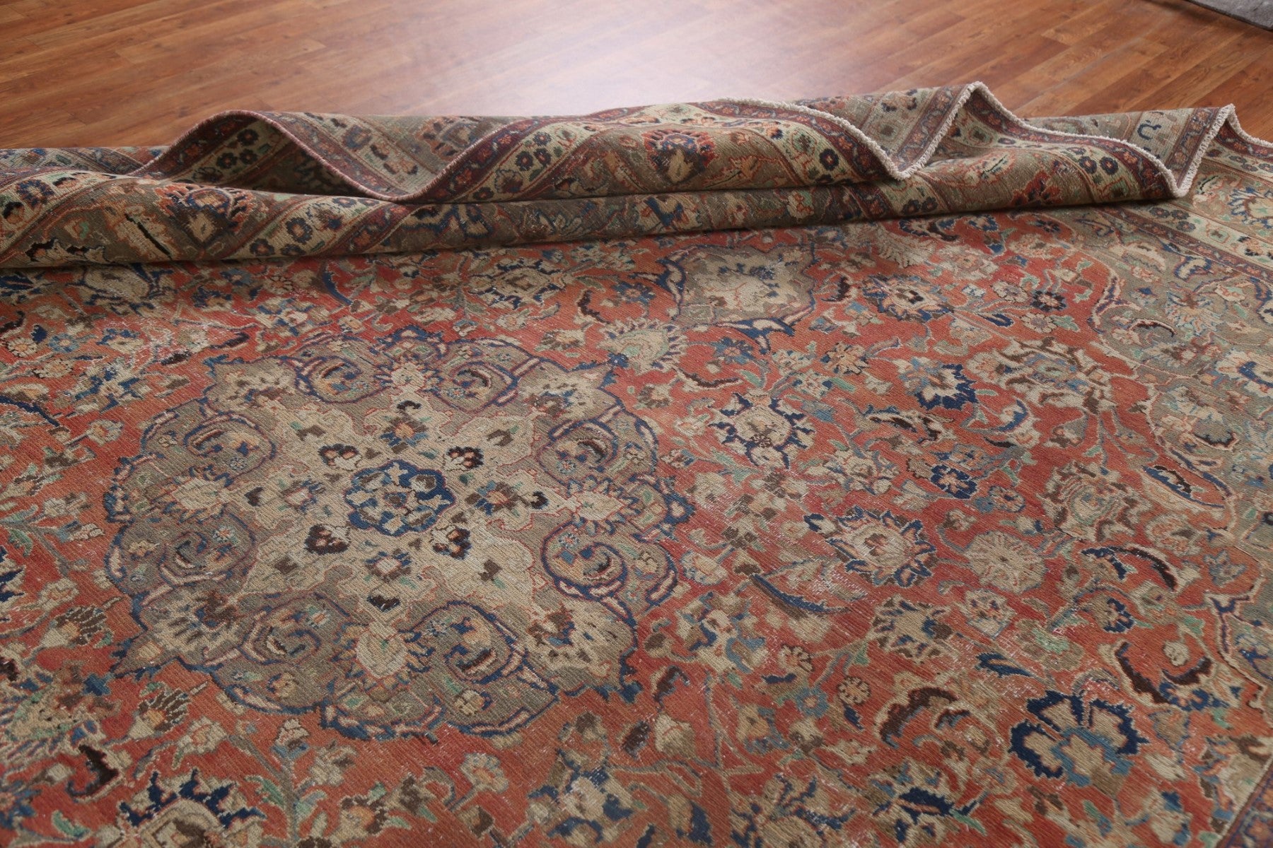 A Beautiful Genuine Persia ( Persia ) Mashad rug is Hand Knotted by skillful weavers in Persia ( Persia ) with 100% Wool Material. This rug is in Very Good ( Low Pile ) condition. dimensions are 12' 6'' X 9' 11'' in foot and 381 X 302 in centimeter. the primary color is Red.