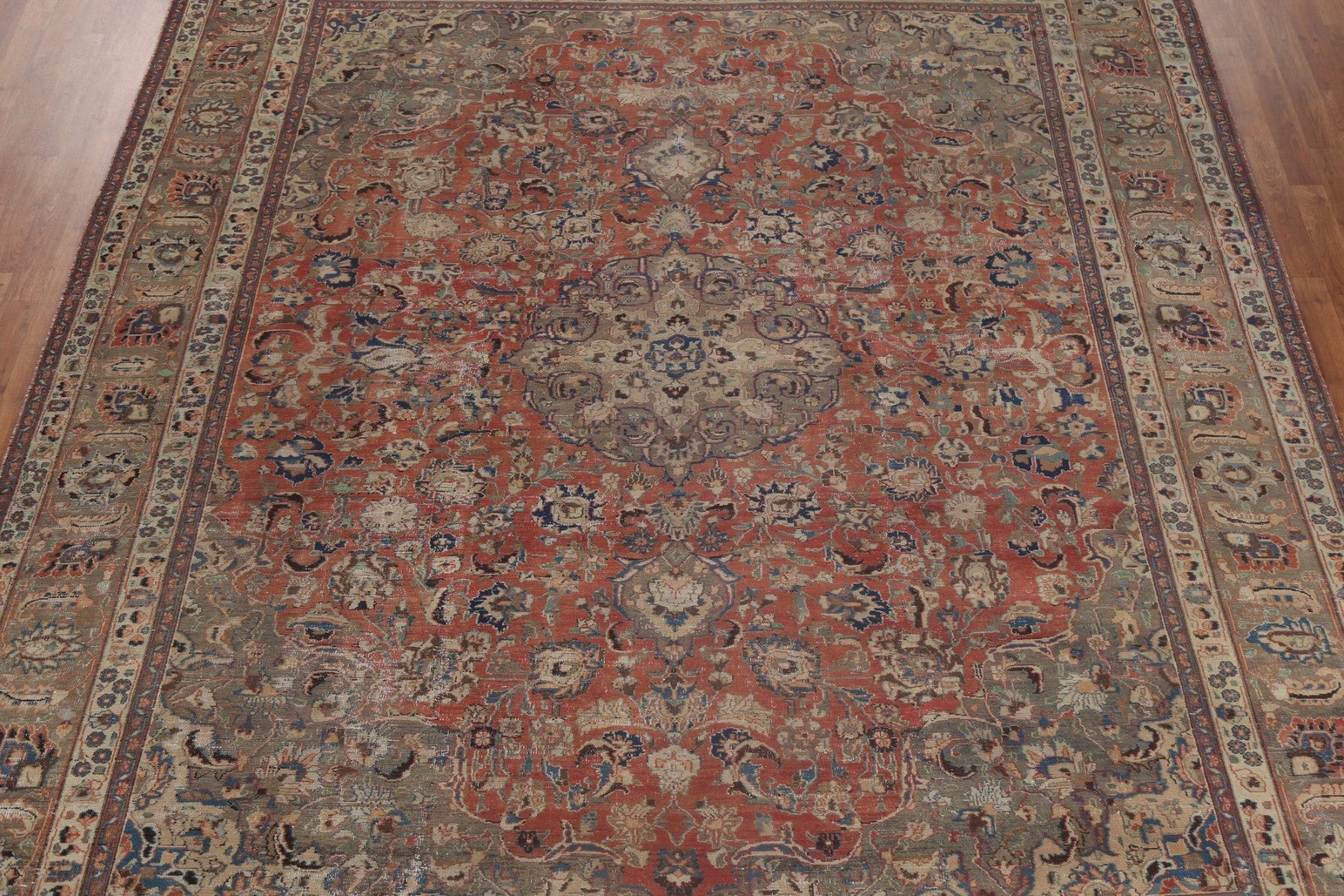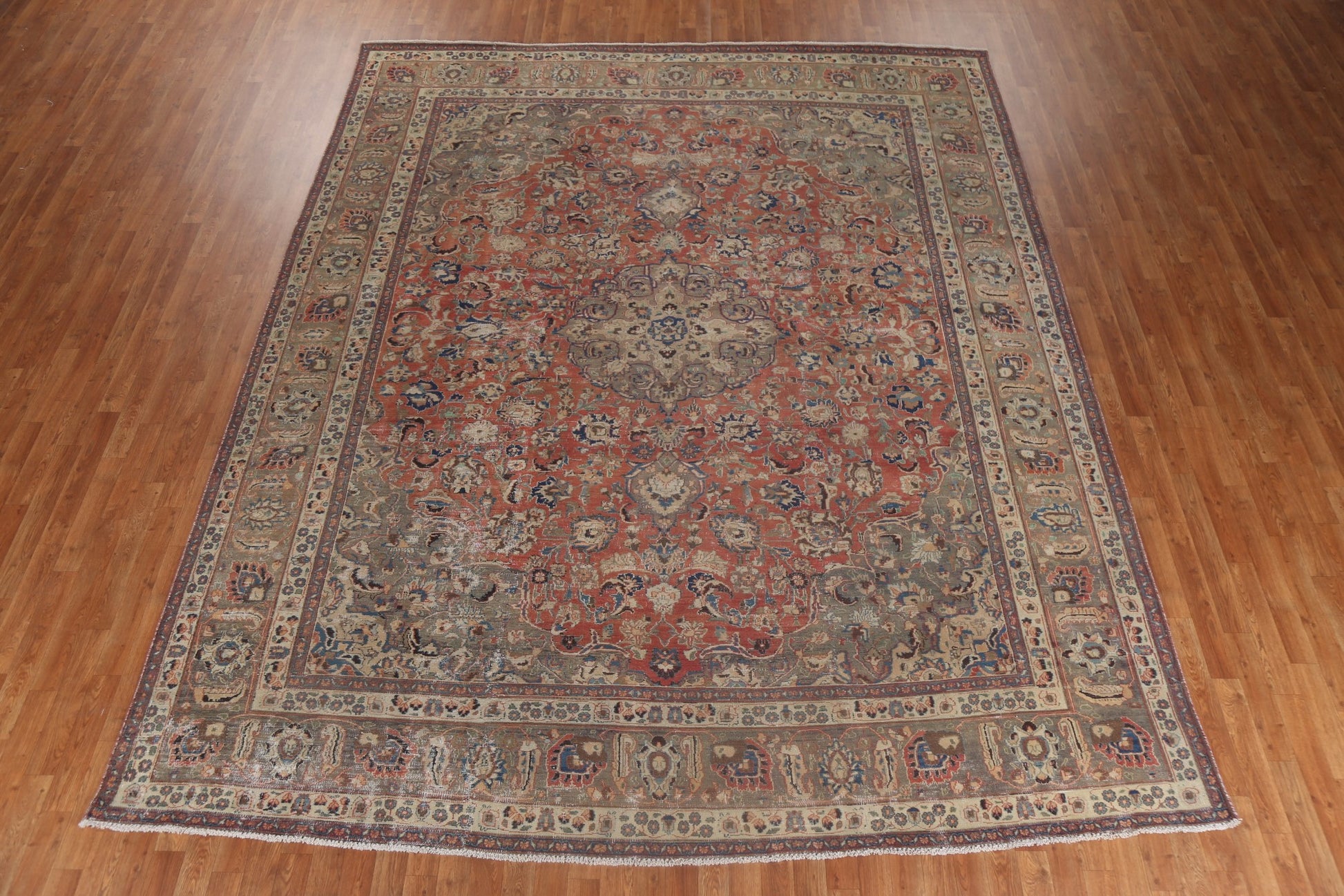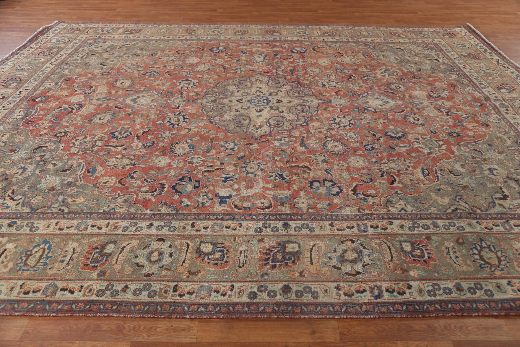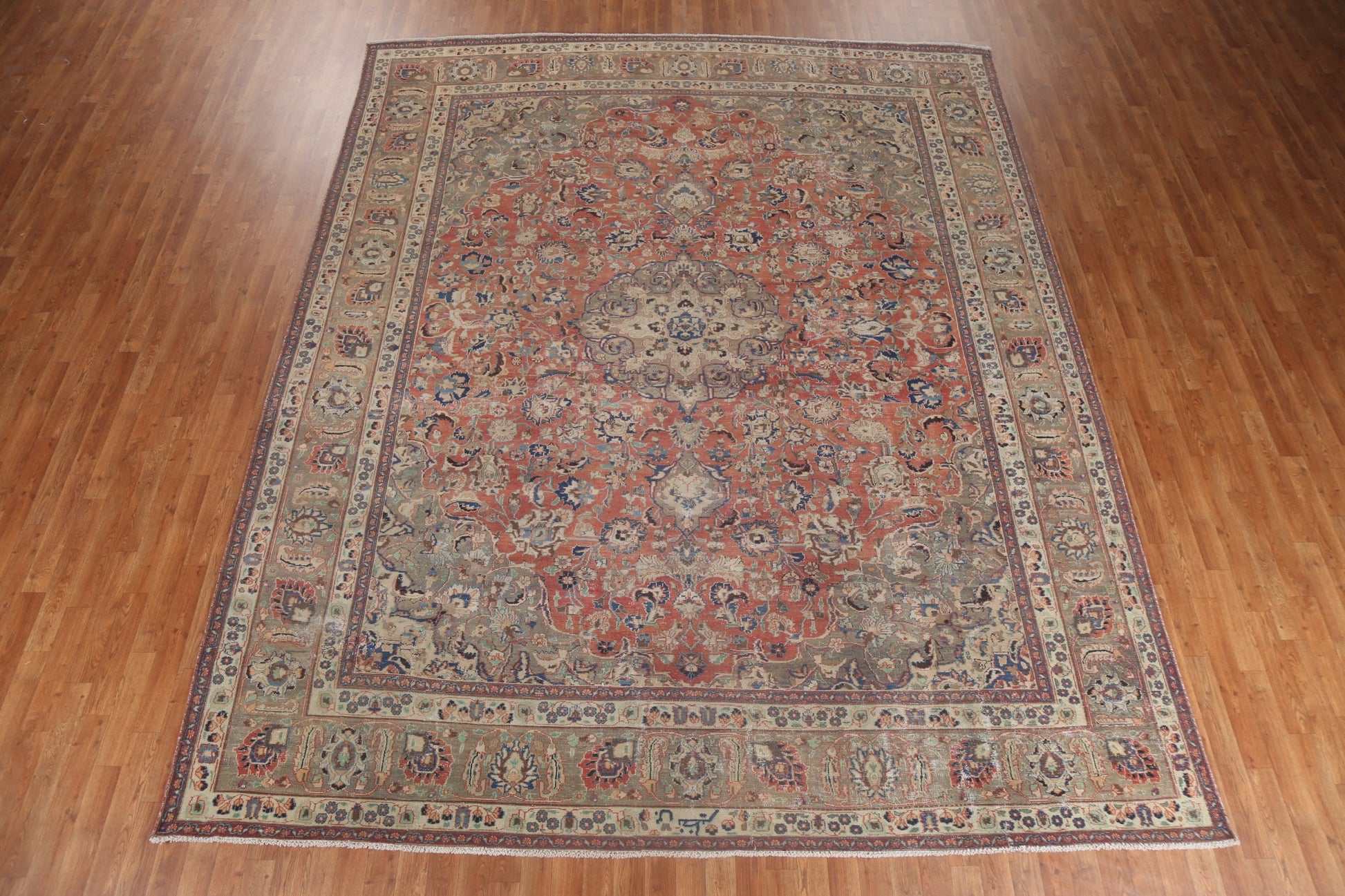 A Beautiful Genuine Persia ( Persia ) Mashad rug is Hand Knotted by skillful weavers in Persia ( Persia ) with 100% Wool Material. This rug is in Very Good ( Low Pile ) condition. dimensions are 12' 6'' X 9' 11'' in foot and 381 X 302 in centimeter. the primary color is Red.