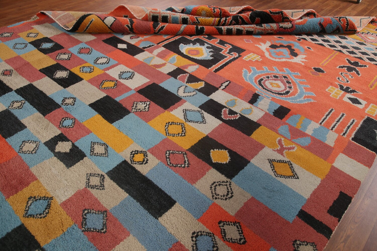 A Beautiful Genuine India Moroccan rug is Hand Knotted by skillful weavers in India with 100% Wool Material. This rug is in New, First Quality condition. dimensions are 12' 0'' X 9' 5'' in foot and 366 X 287 in centimeter. the primary color is Multi-Colored.