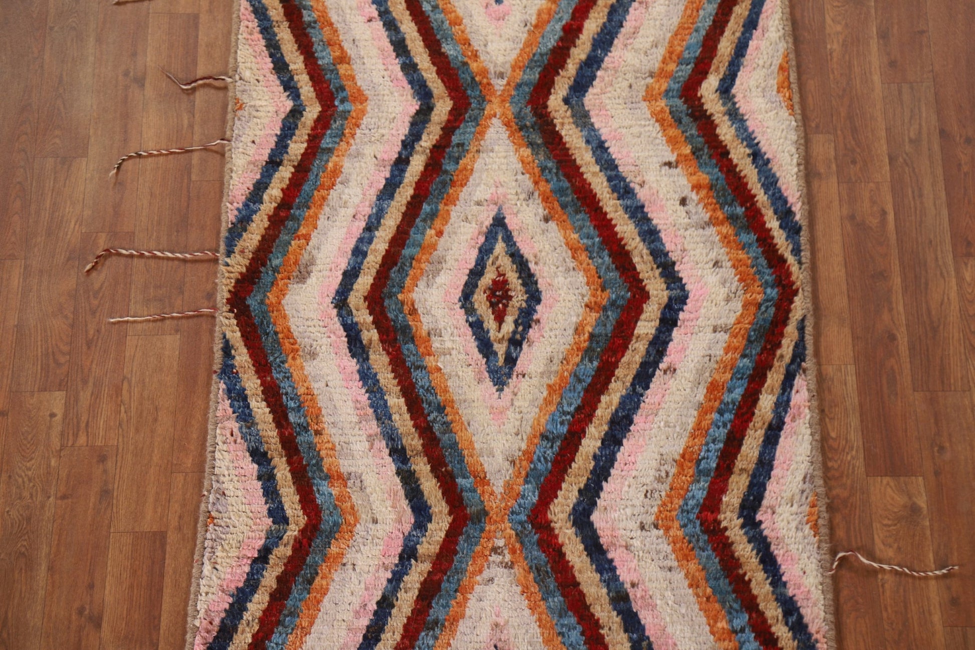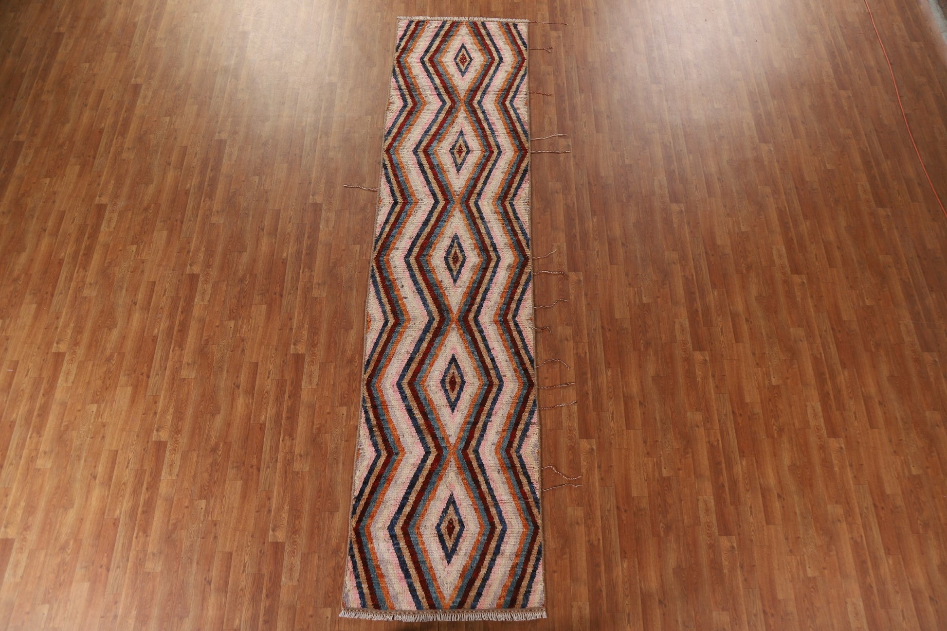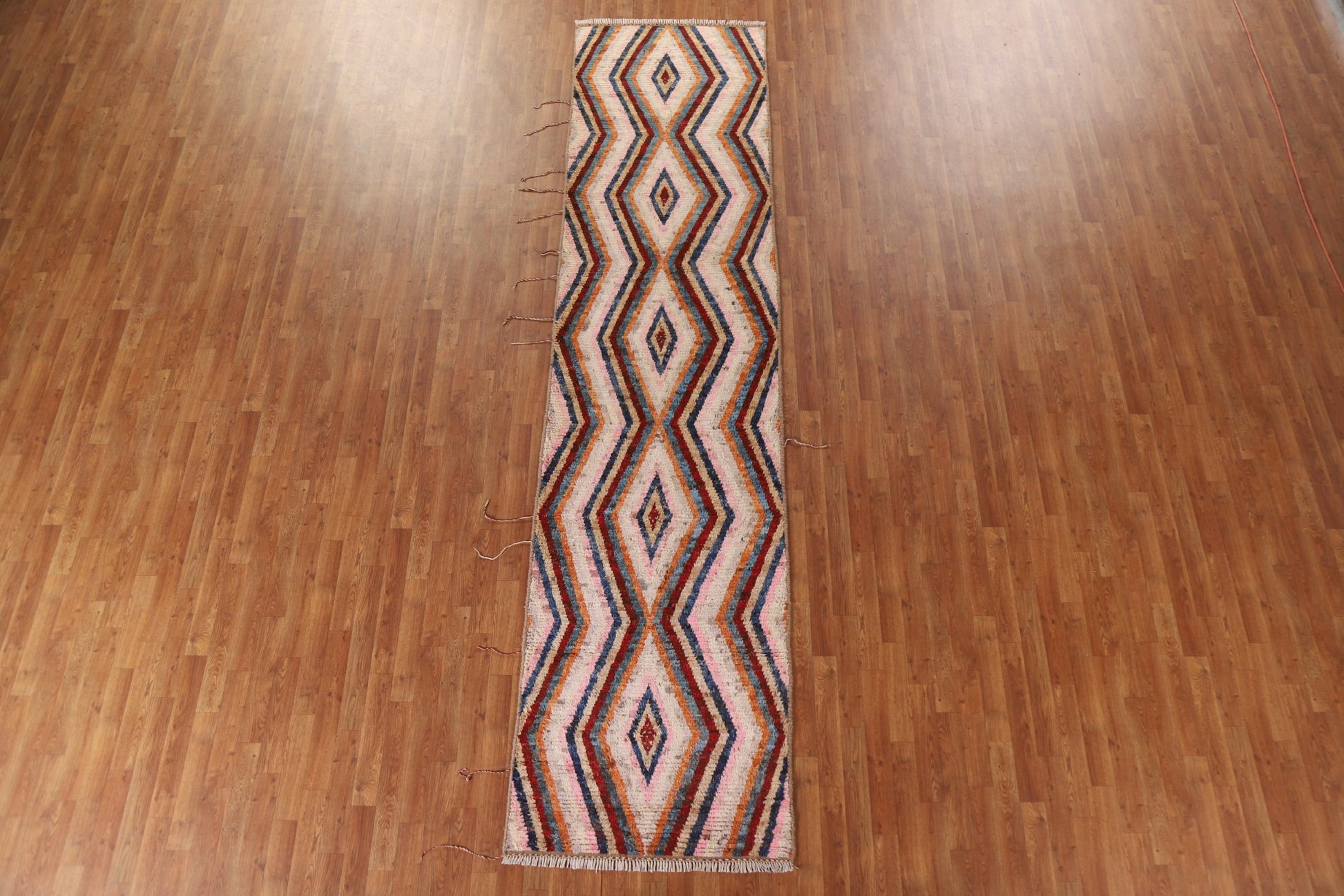 Hand-Knotted Wool Moroccan Runner Rug 3x13