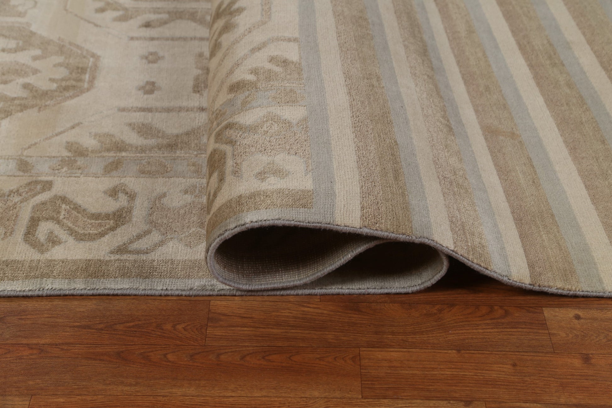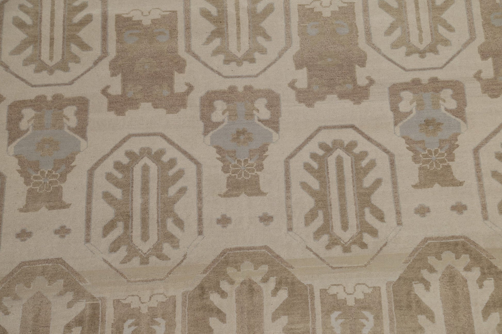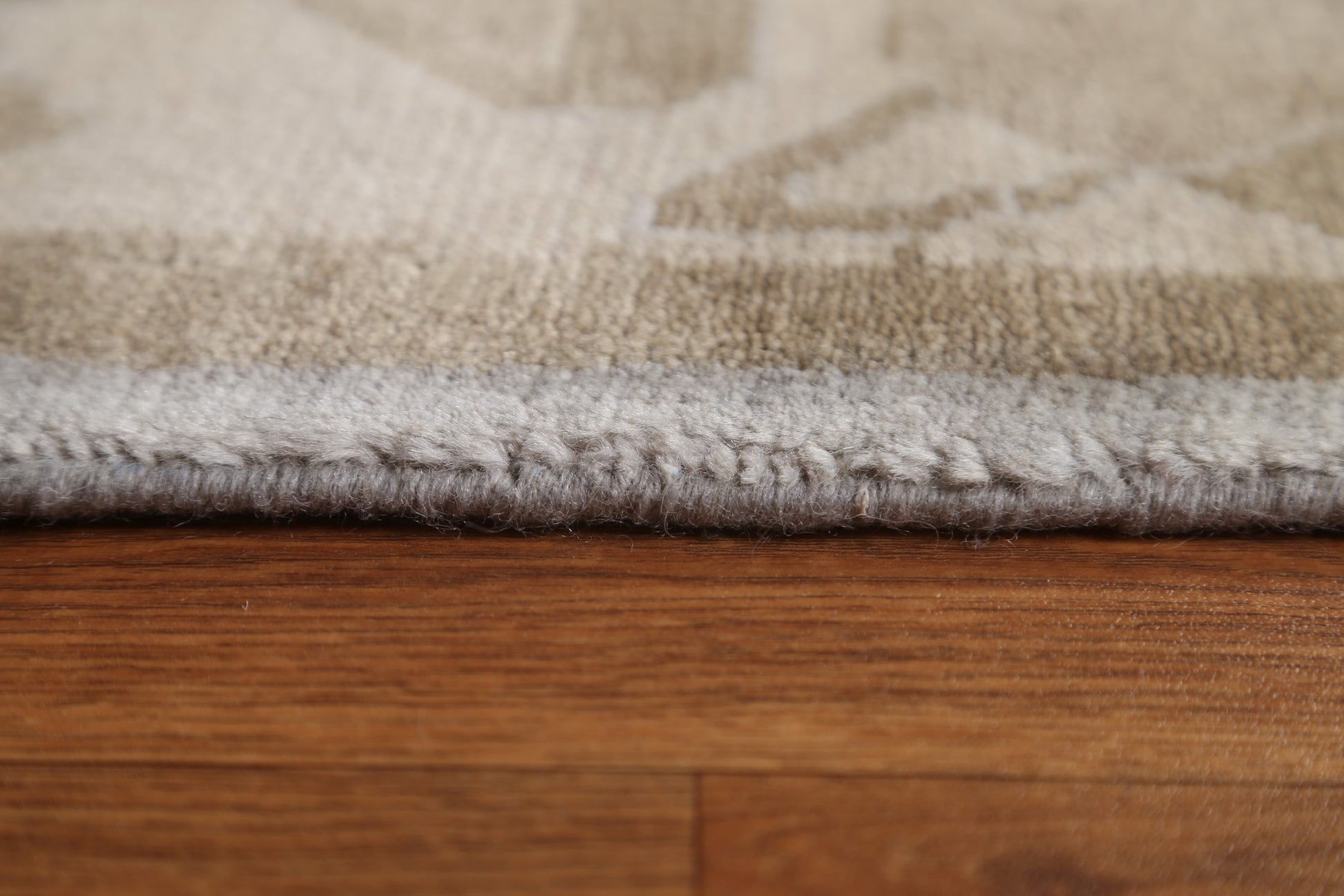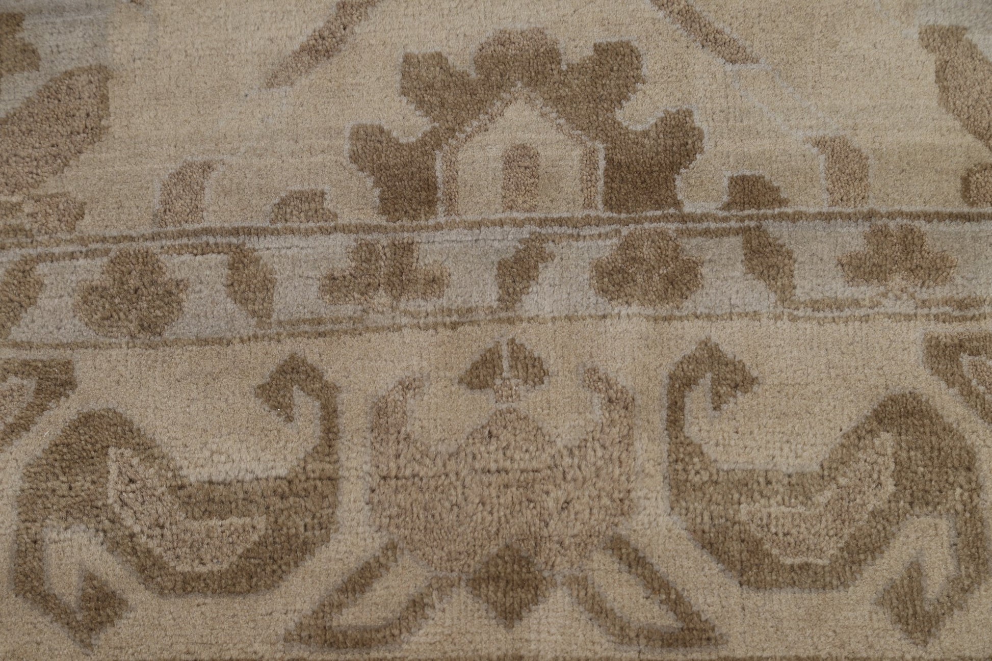 A Beautiful Genuine India Oushak rug is Hand Knotted by skillful weavers in India with 100% Wool Material. This rug is in New, First Quality condition. dimensions are 10' 3'' X 7' 9'' in foot and 312 X 236 in centimeter. the primary color is Beige & Ivories.