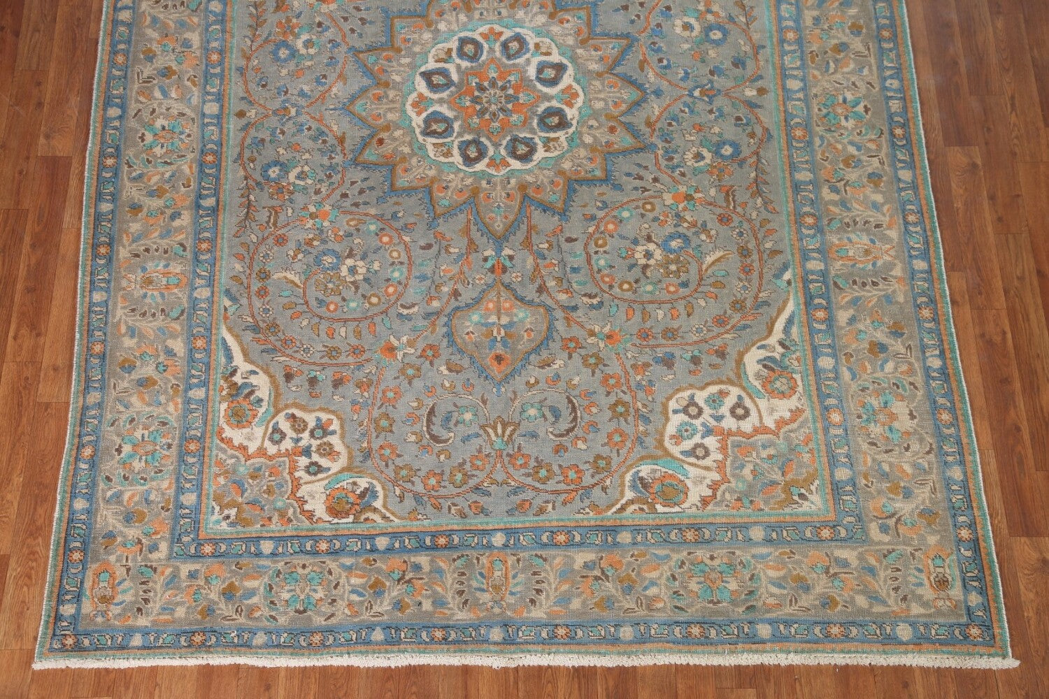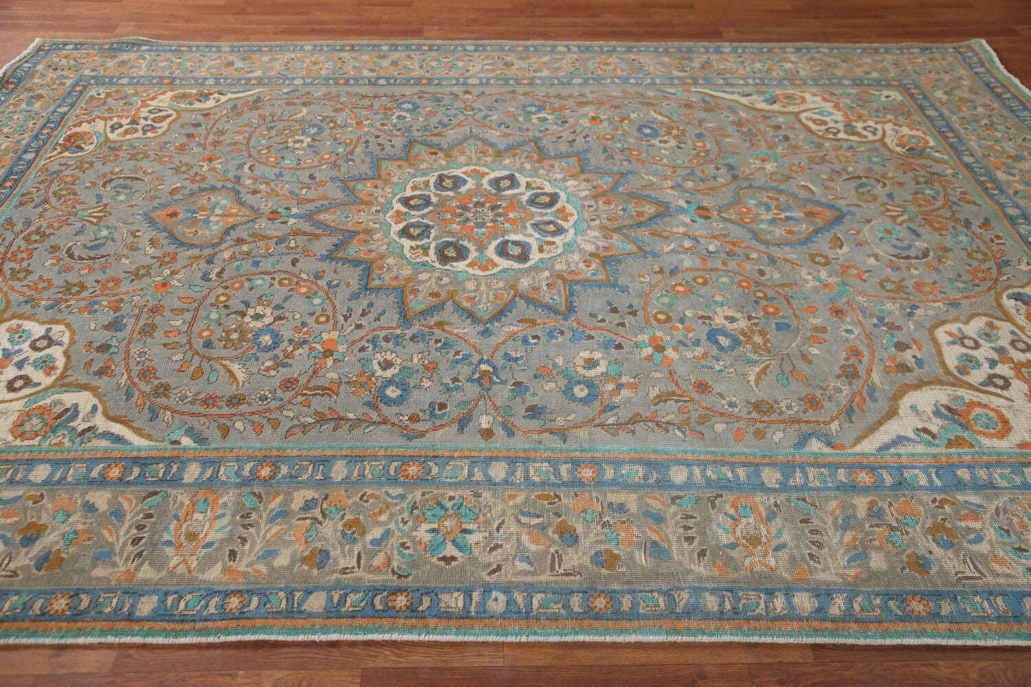 A Beautiful Genuine Persia ( Persia ) Tabriz rug is Hand Knotted by skillful weavers in Persia ( Persia ) with 100% Wool Material. This rug is in Very Good (Evenly Low Pile) condition. dimensions are 9' 11'' X 6' 10'' in foot and 302 X 208 in centimeter. the primary color is Greys & Charcoal.