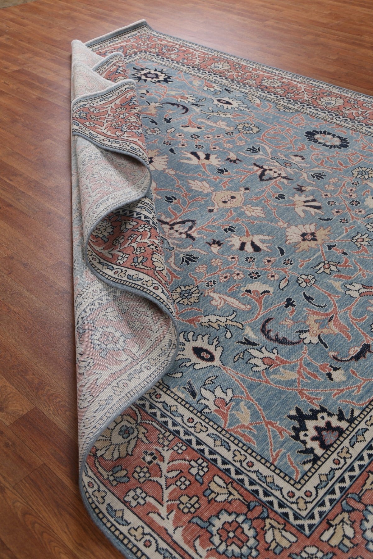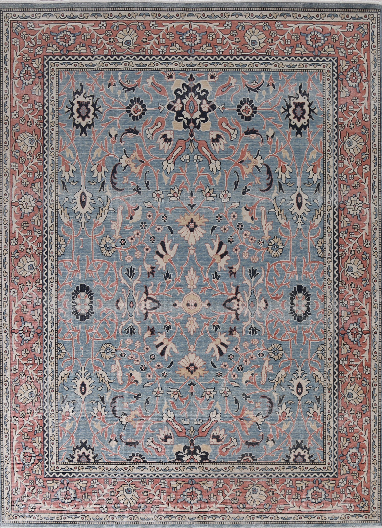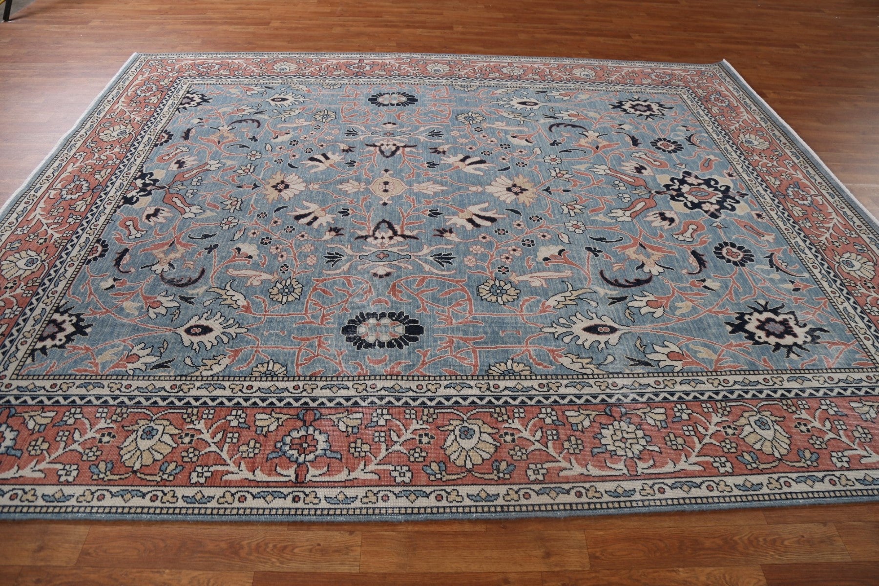 A Beautiful Genuine Turkey Ziegler rug is Hand Knotted by skillful weavers in Turkey with 100% Wool Material. This rug is in New, First Quality condition. dimensions are 9' 9'' X 7' 10'' in foot and 297 X 239 in centimeter. the primary color is Navy Blue & Blues.