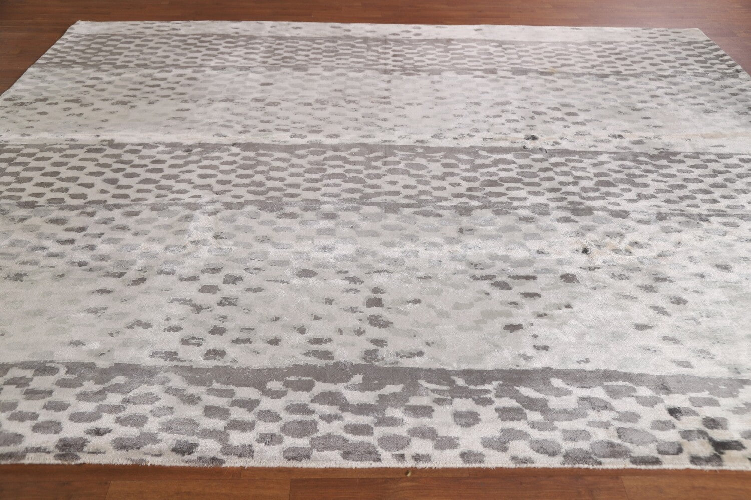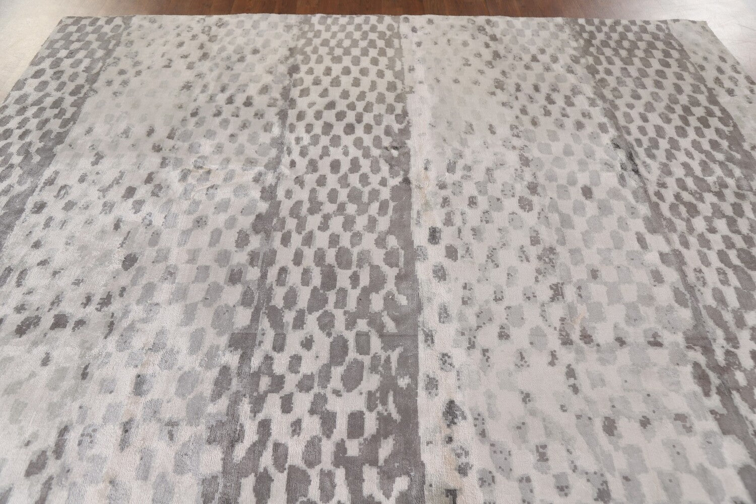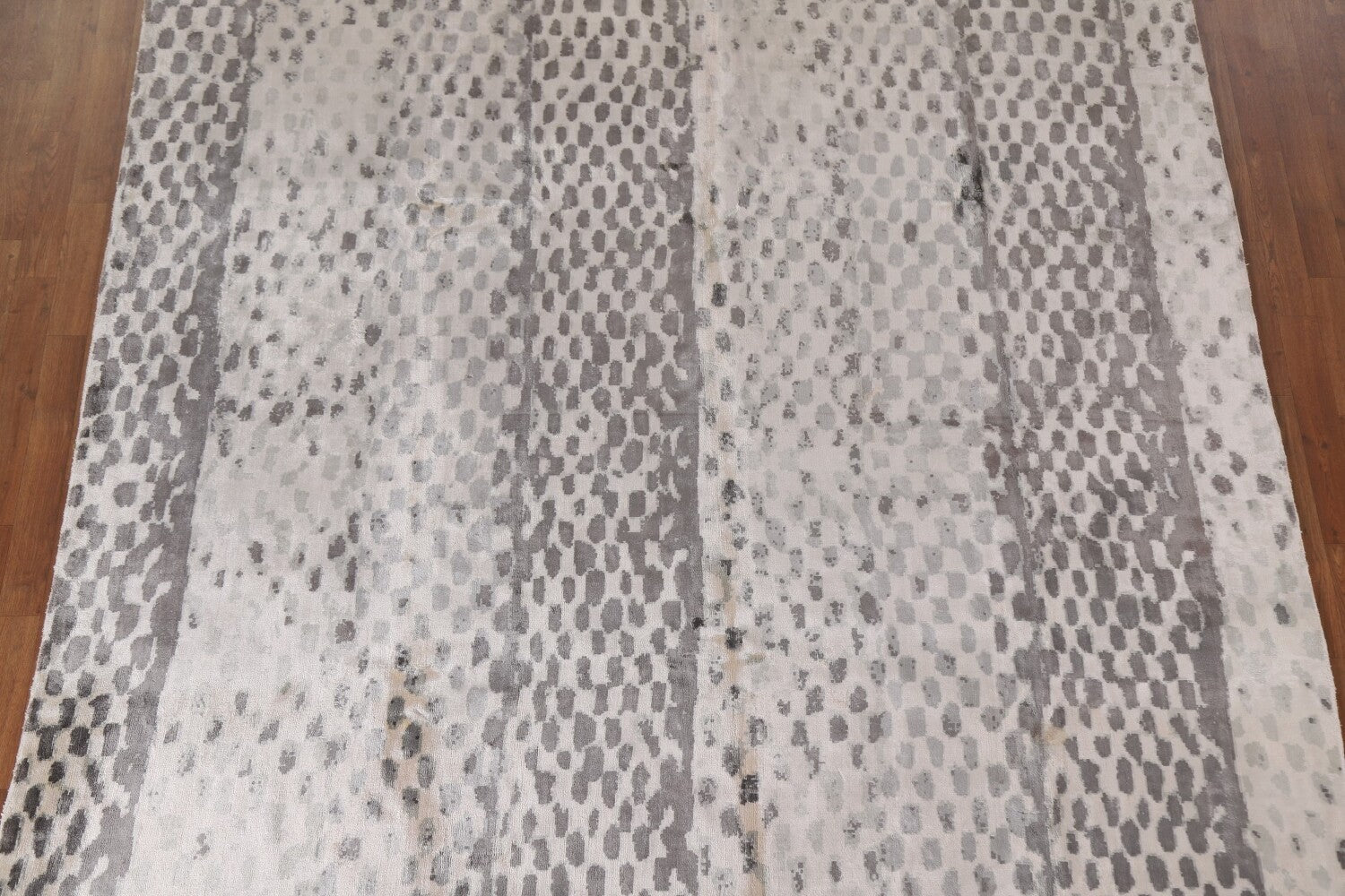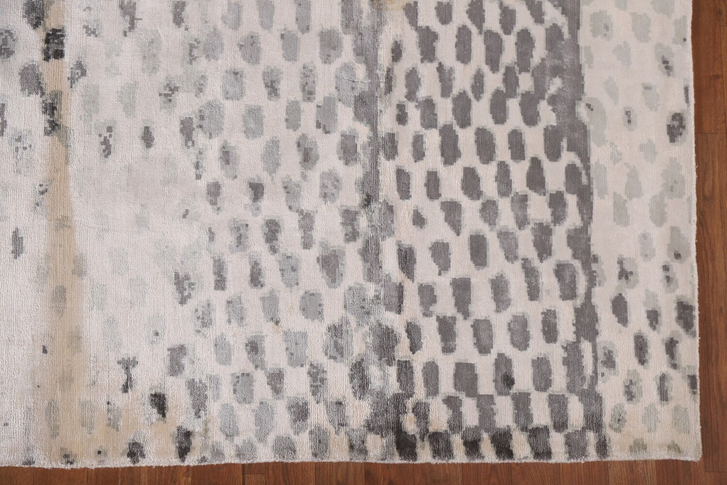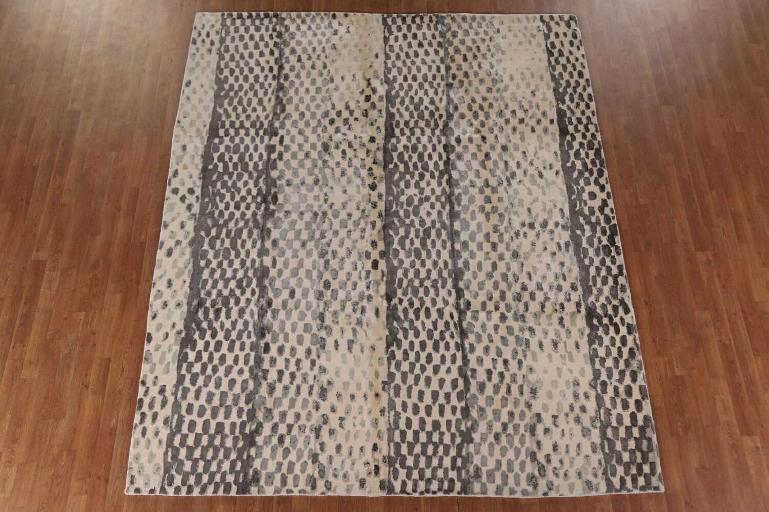 A Beautiful Genuine India Abstract rug is Hand Tufted by skillful weavers in India with 100% Wool Material. This rug is in New, First Quality condition. dimensions are 9' 10'' X 8' 2'' in foot and 300 X 249 in centimeter. the primary color is Beige & Ivories.