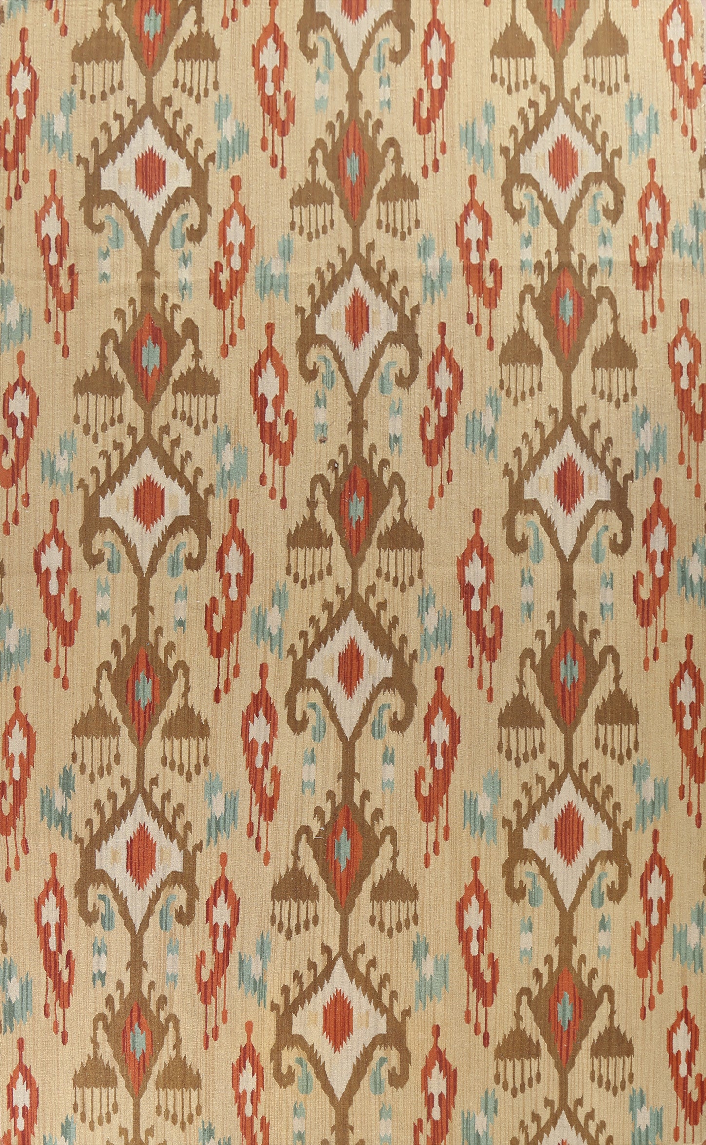 A Beautiful Genuine India IKats rug is Hand Woven by skillful weavers in India with 100% Wool Material. This rug is in New, First Quality condition. dimensions are 13' 4'' X 8' 11'' in foot and 406 X 272 in centimeter. the primary color is Beige & Ivories.